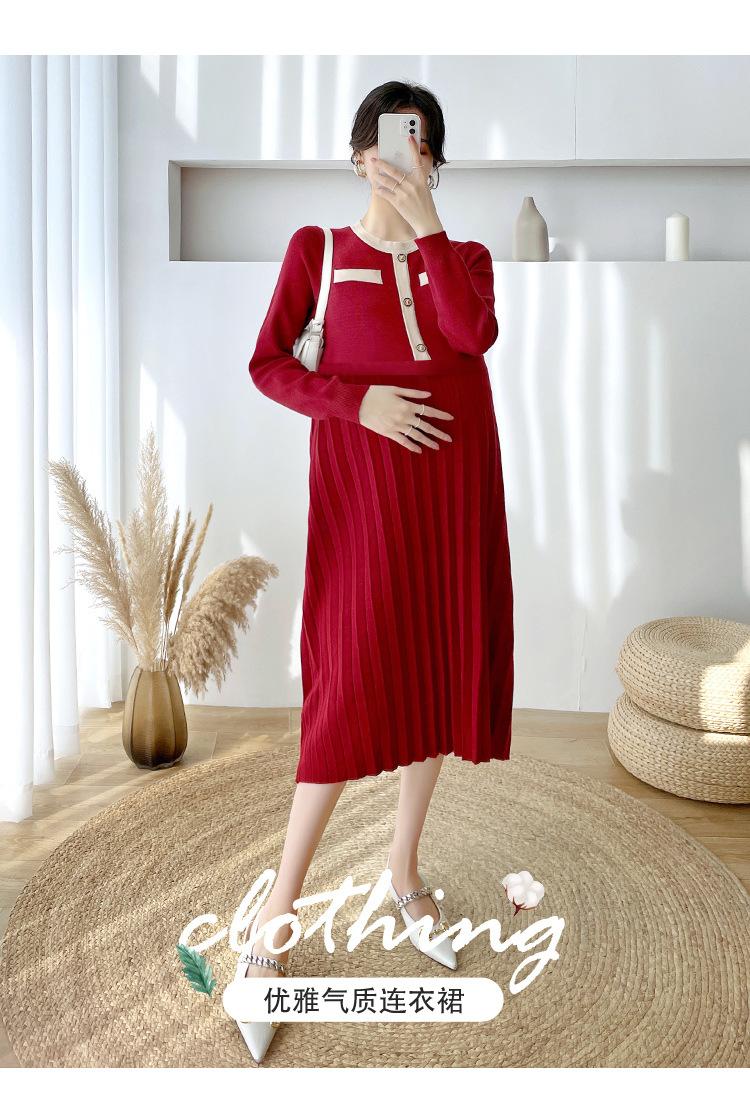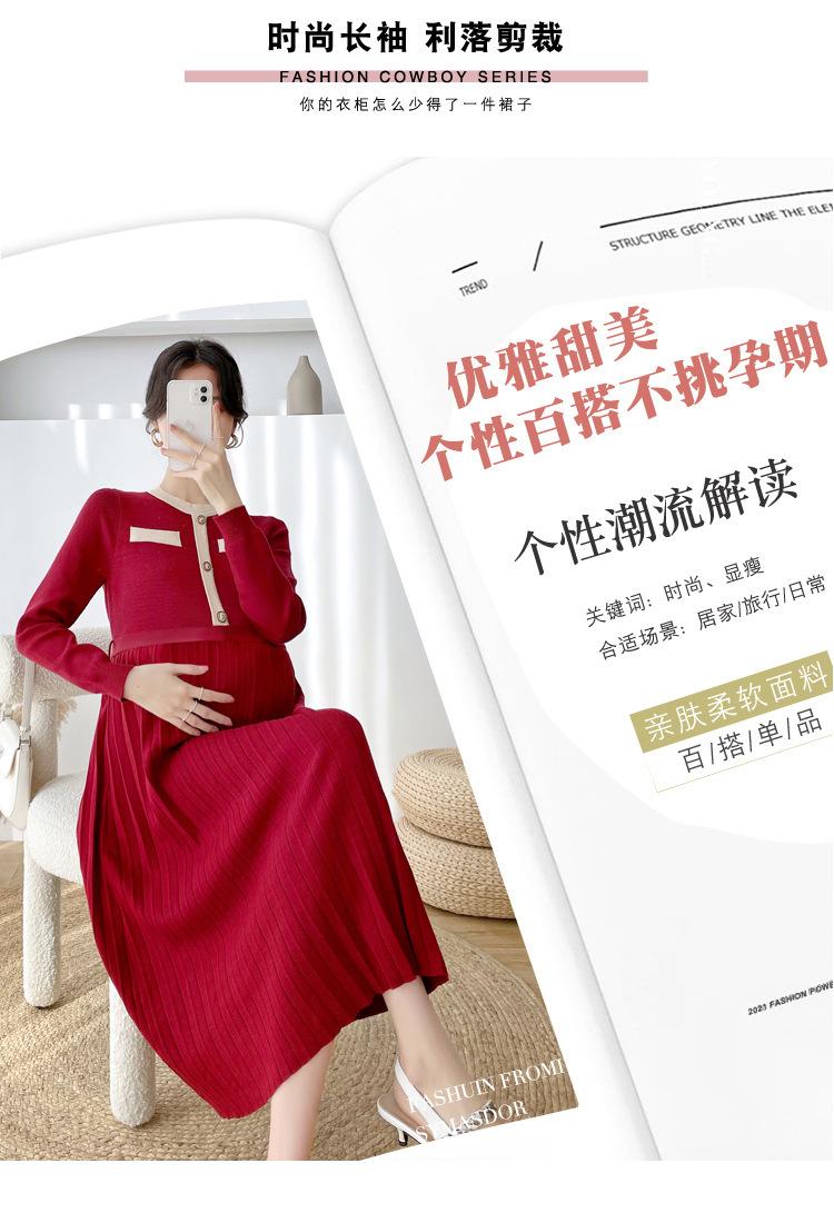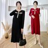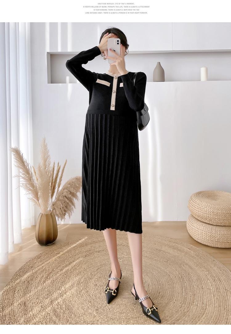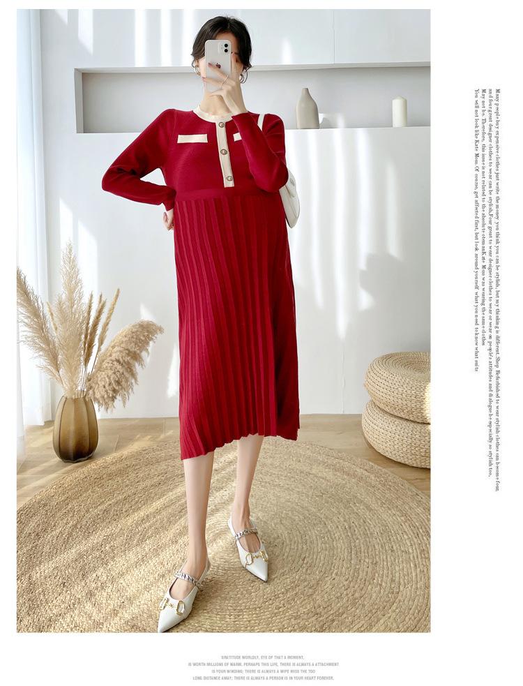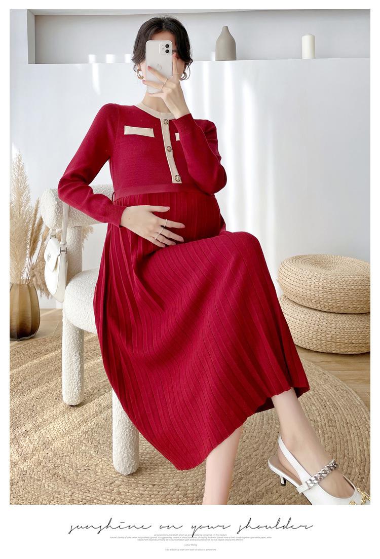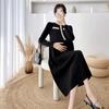 Ropa de mujer embarazada otoño e invierno nueva moda holgada marea mamá estilo occidental suéter largo de punto camisa base vestido de mujer embarazada