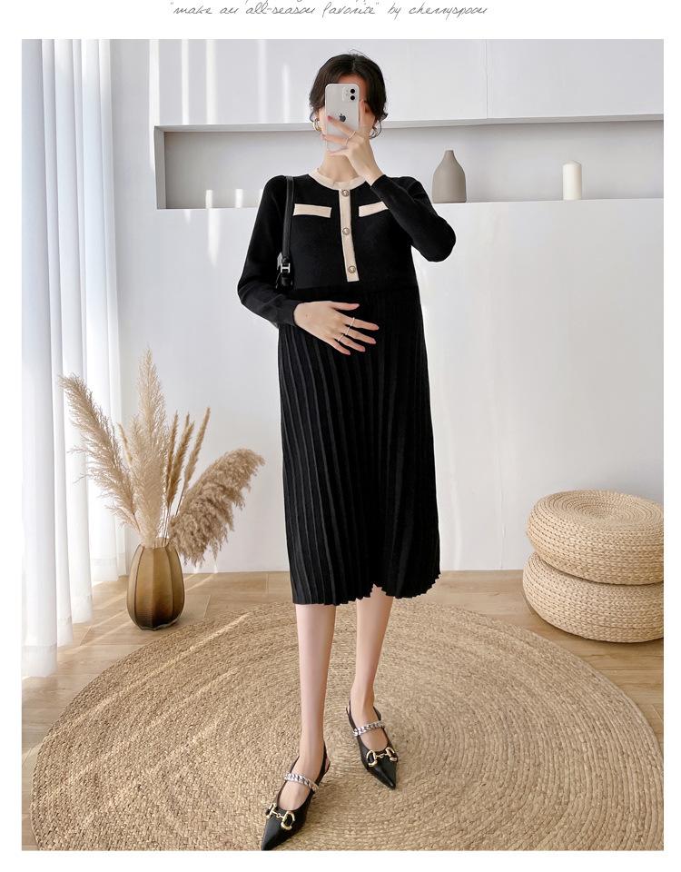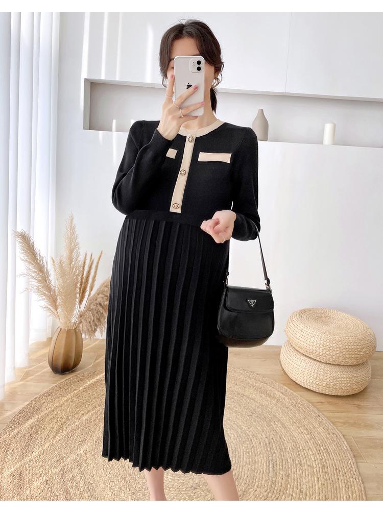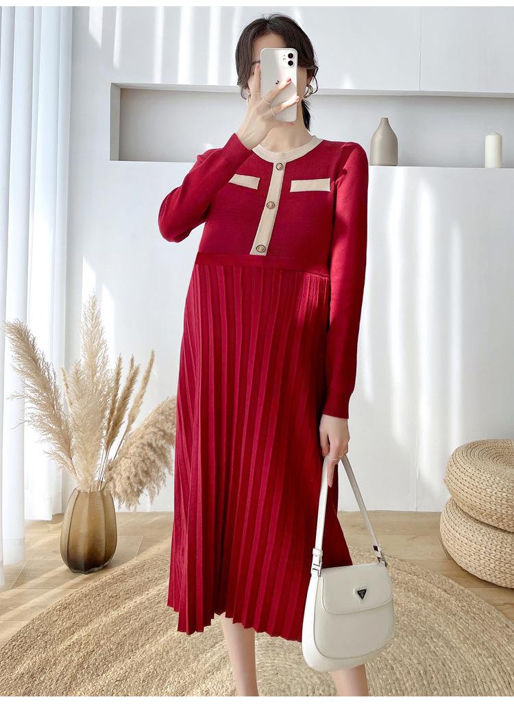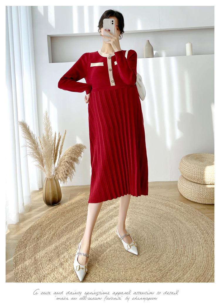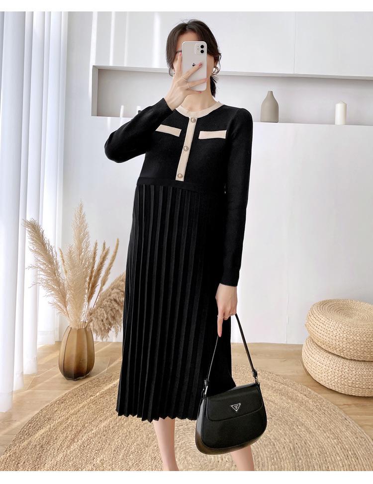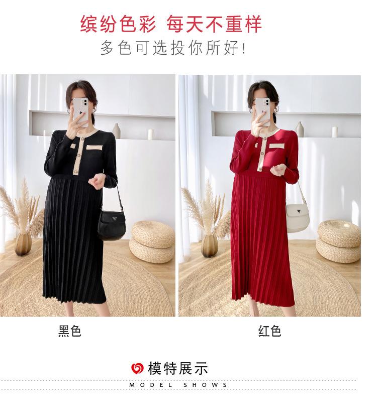 Ropa de mujer embarazada otoño e invierno nueva moda holgada marea mamá estilo occidental suéter largo de punto camisa base vestido de mujer embarazada