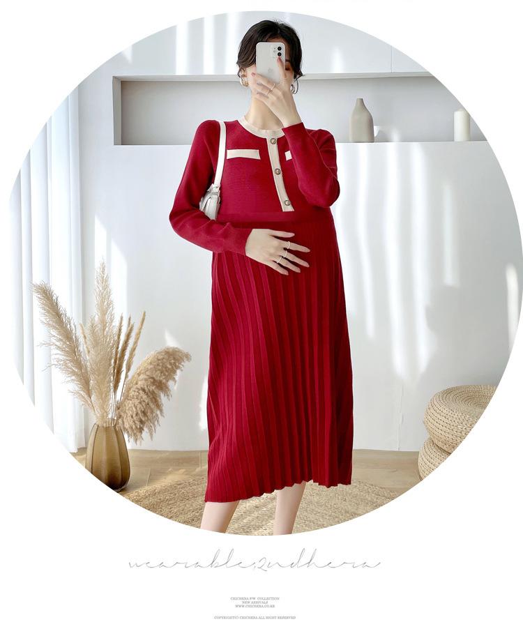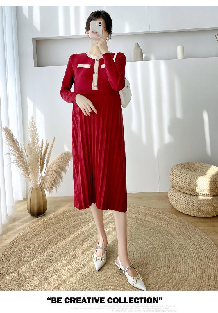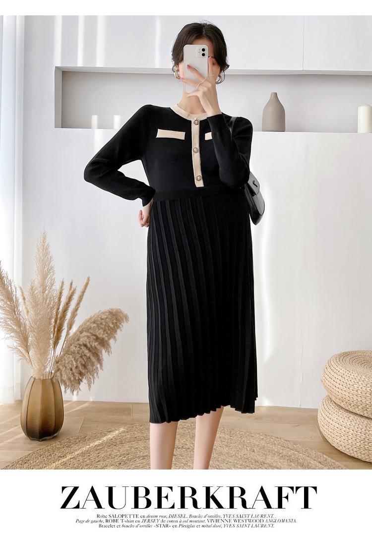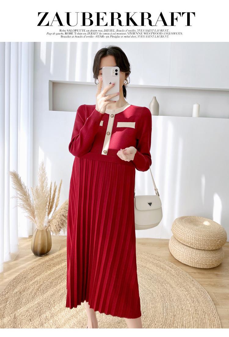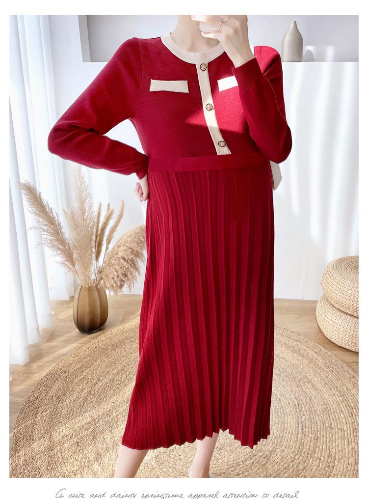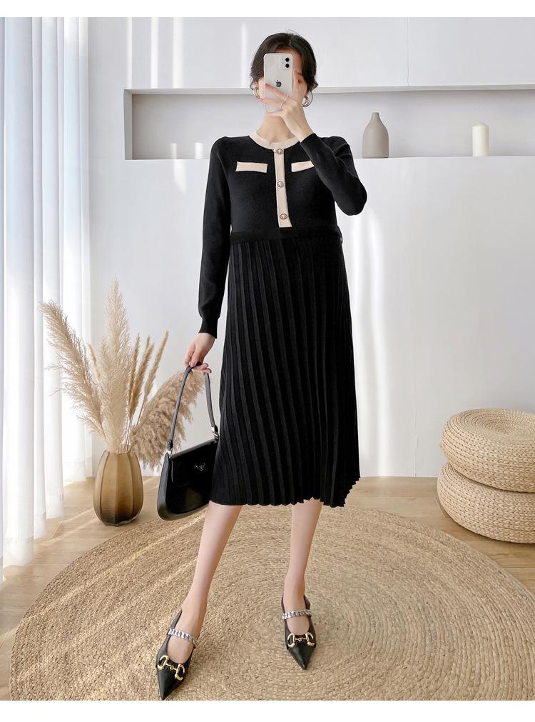 Ropa de mujer embarazada otoño e invierno nueva moda holgada marea mamá estilo occidental suéter largo de punto camisa base vestido de mujer embarazada