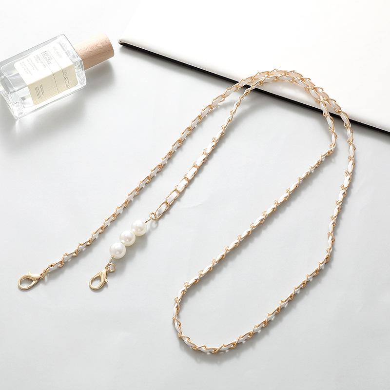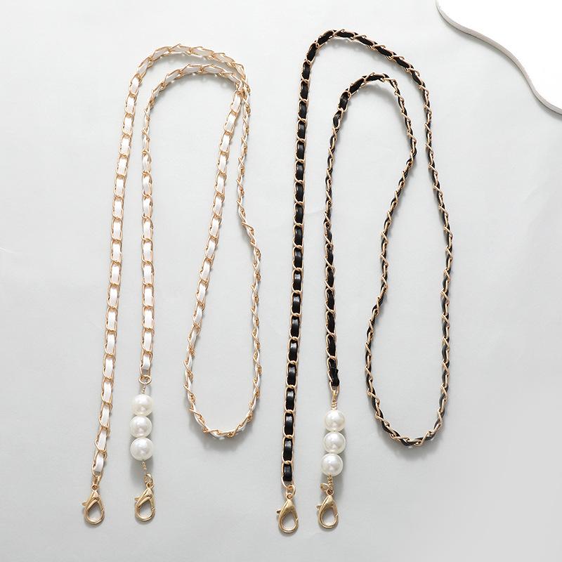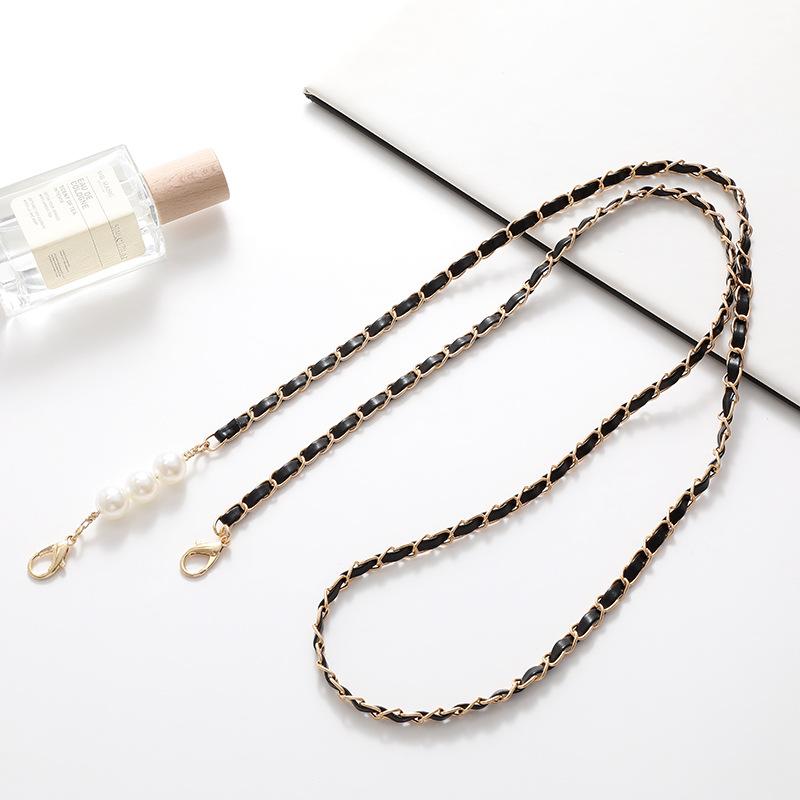 Nuevo estilo de cuero con perlas, bandolera para teléfono móvil, cordón estilo Chanel, bolso, correa de hombro, cadena, hebilla de langosta, colgante, cadena larga