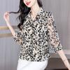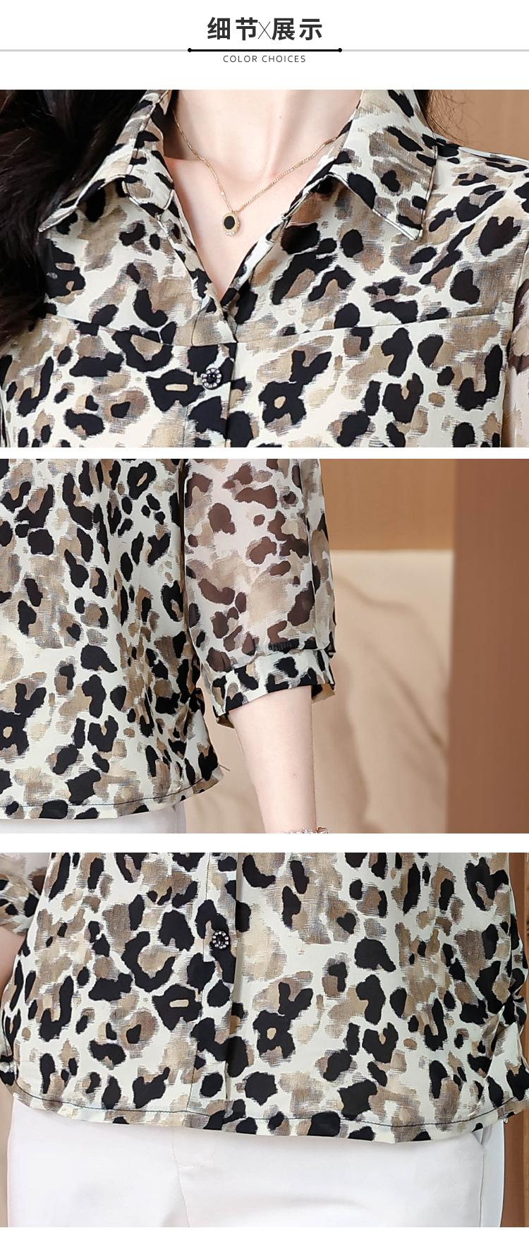 2025 Gasa Camisa Pequeña para Mujer Primavera y Verano Nueva Elegante Manga Media Top Camisa Pequeña Moda Elegante Mujeres