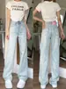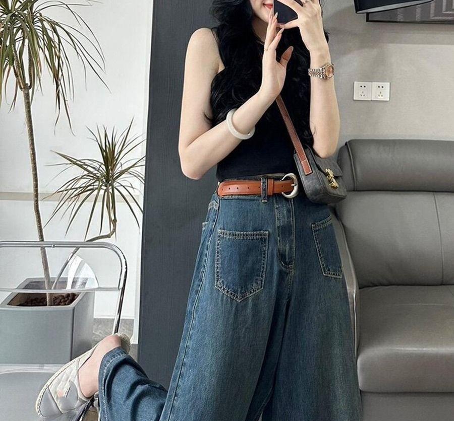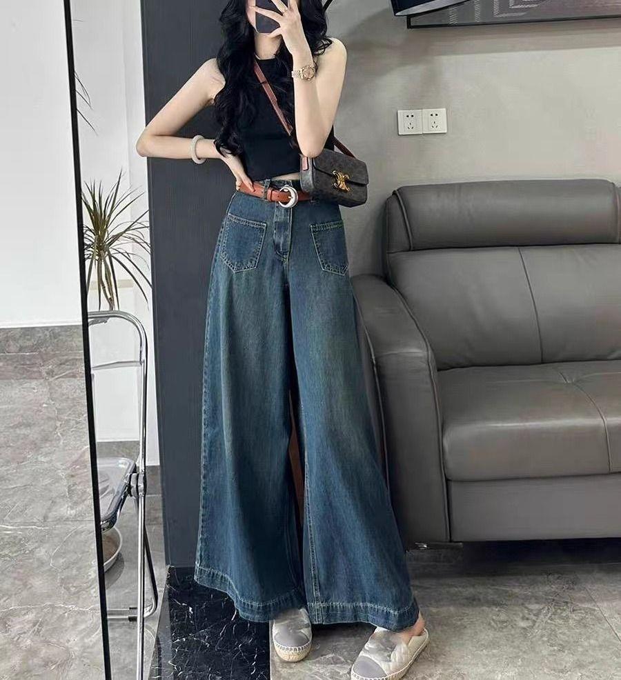Vaqueros retro pequeños de pierna ancha para mujer en otoño. Nuevo diseño de cintura alta que cubre el cuerpo y adelgaza. Pantalones acampanados grandes.