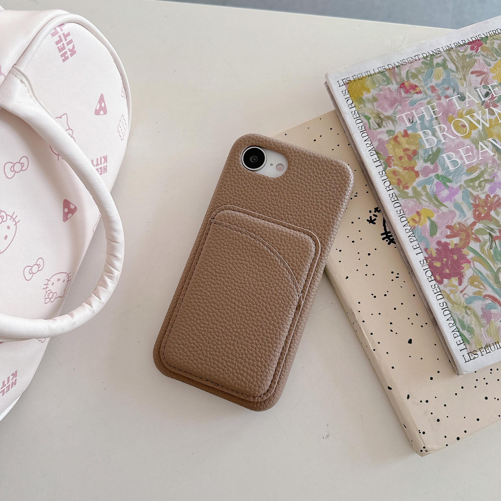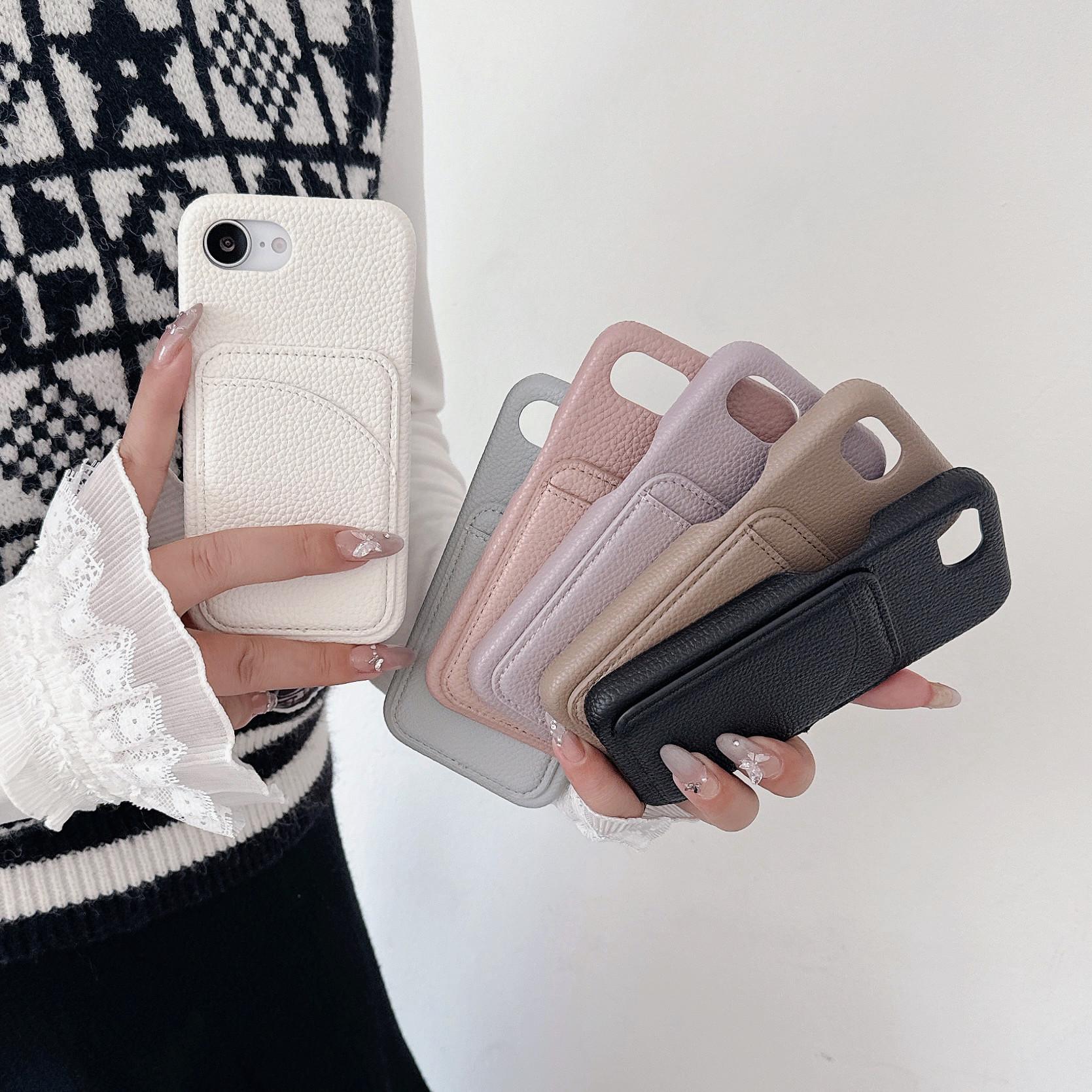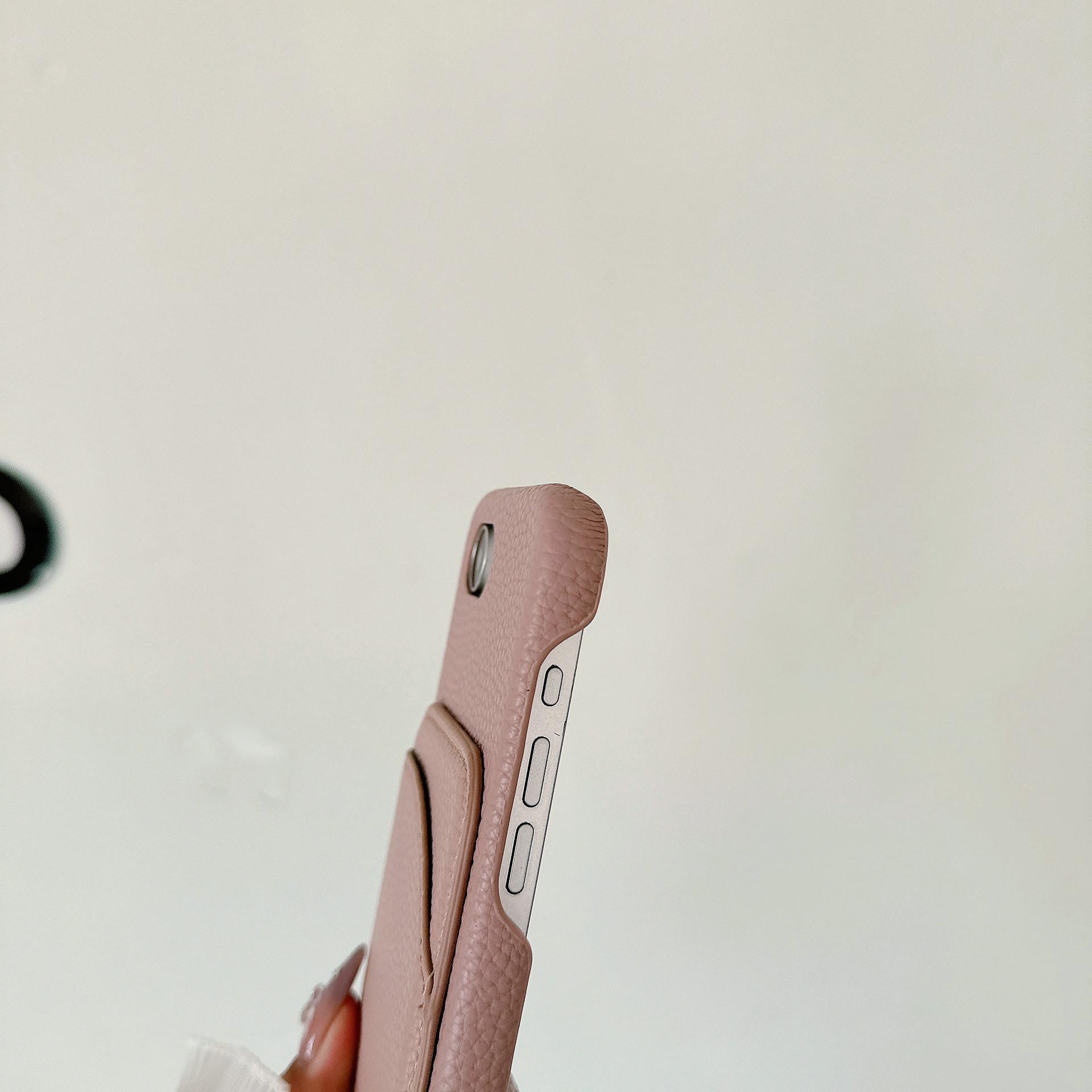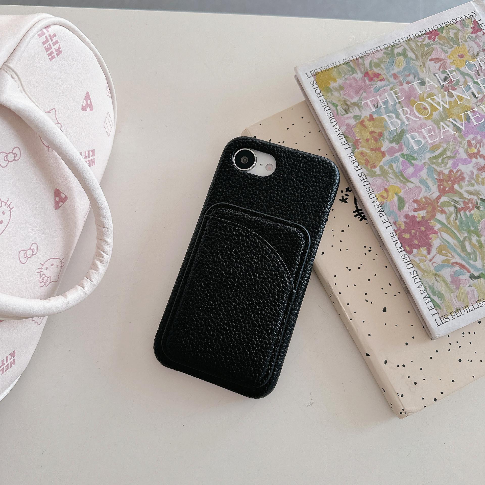 Funda de Tarjetas de Cuero con Patrón Lichi para Funda de Teléfono iphone16 15promax Funda Protectora para Transfronterizo Japón y Corea del Sur