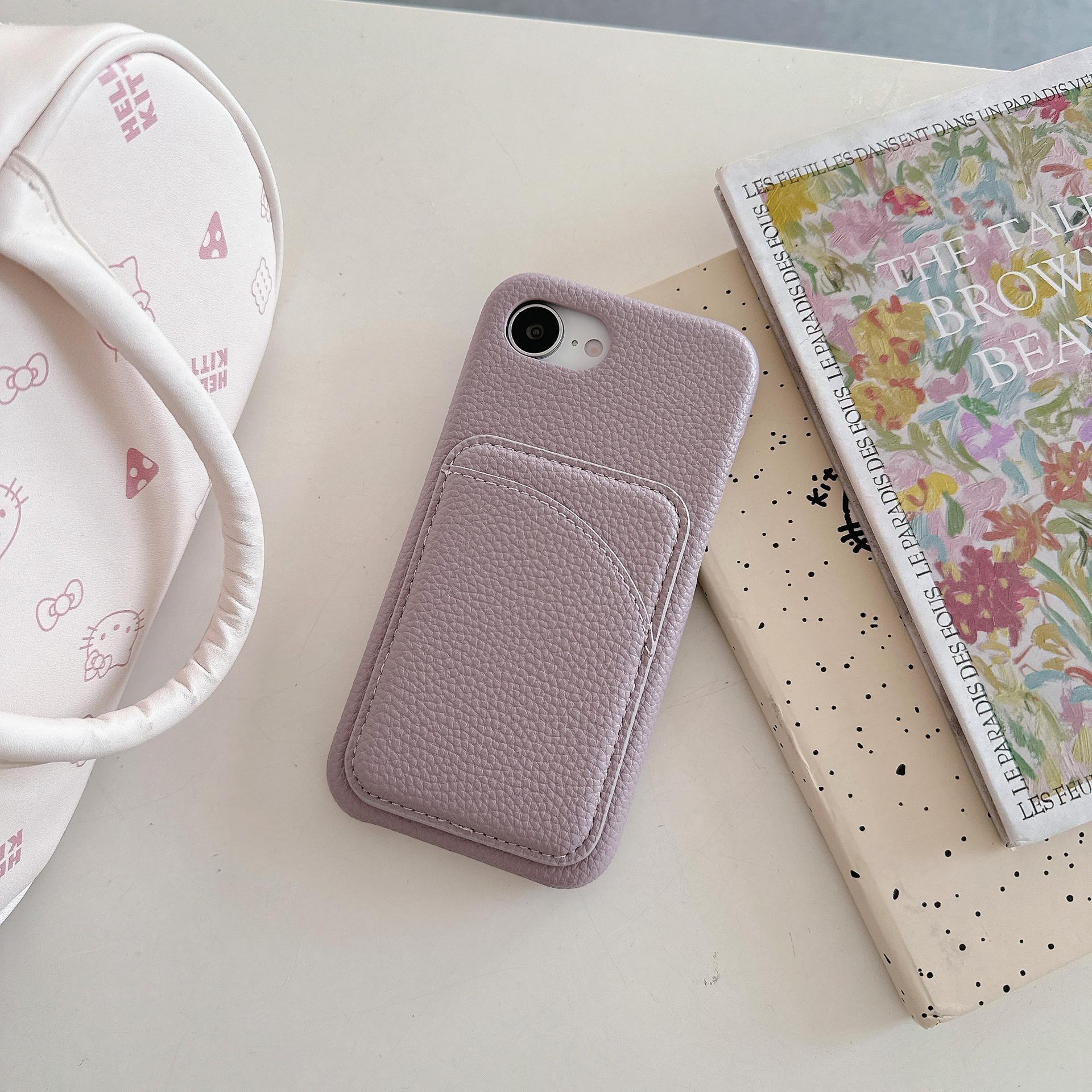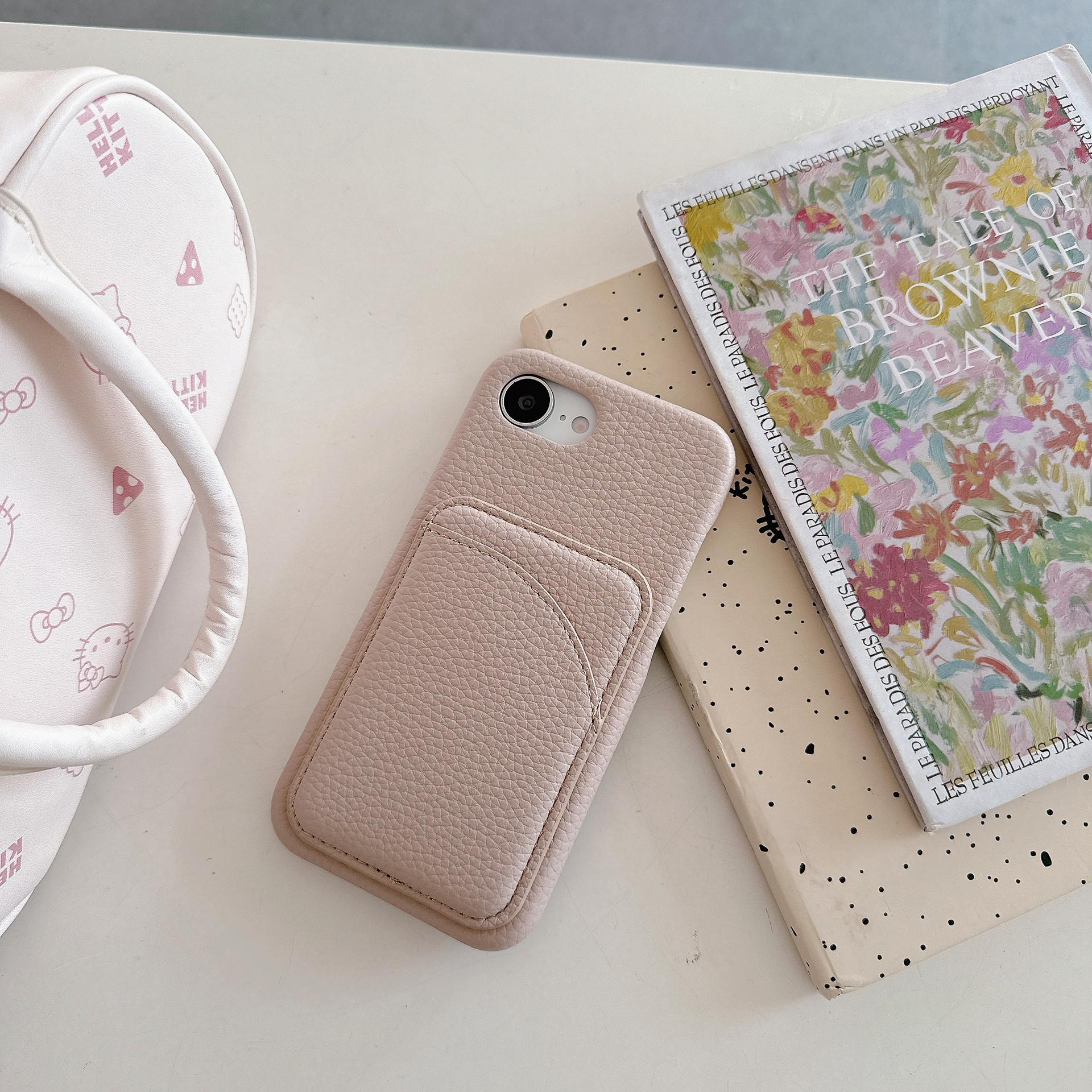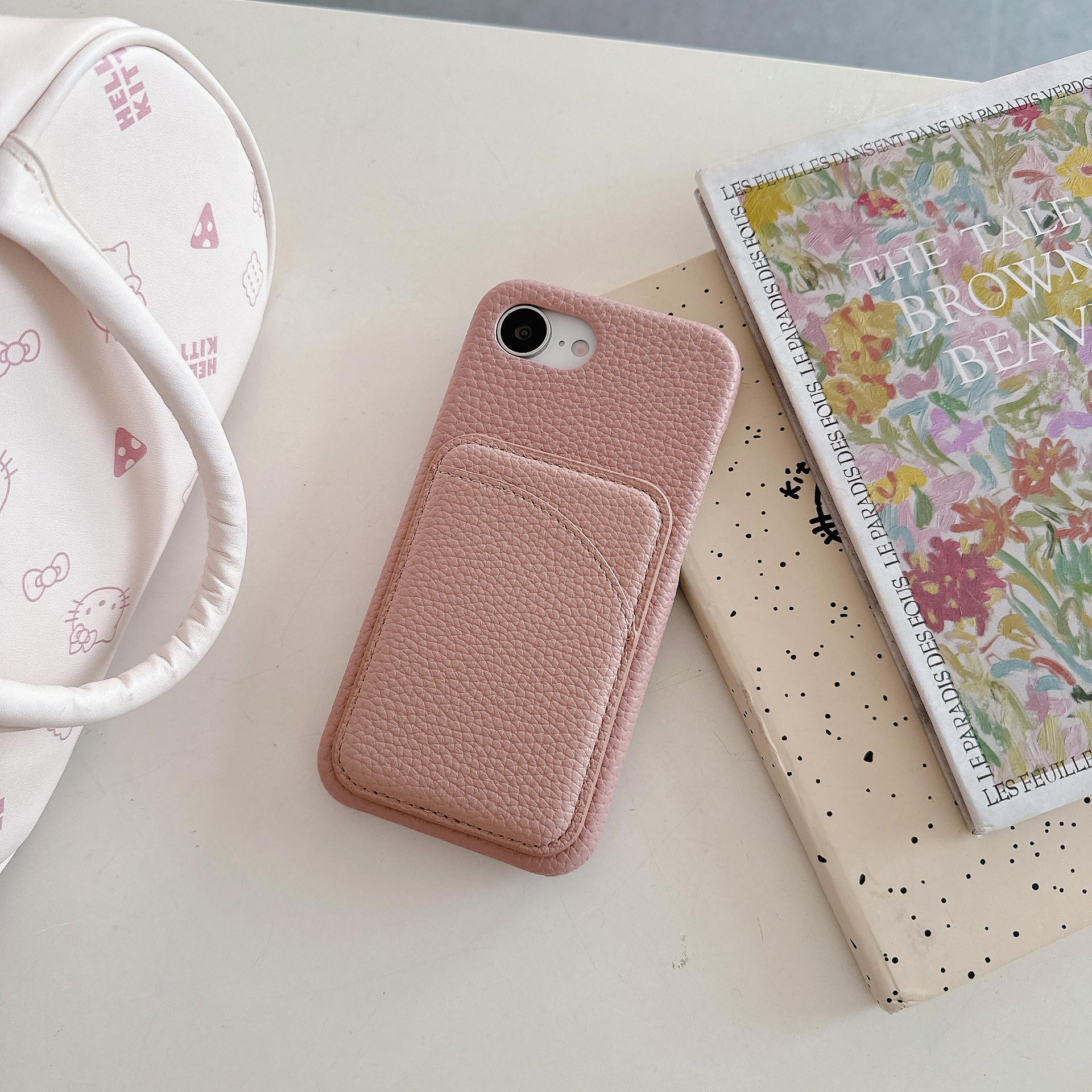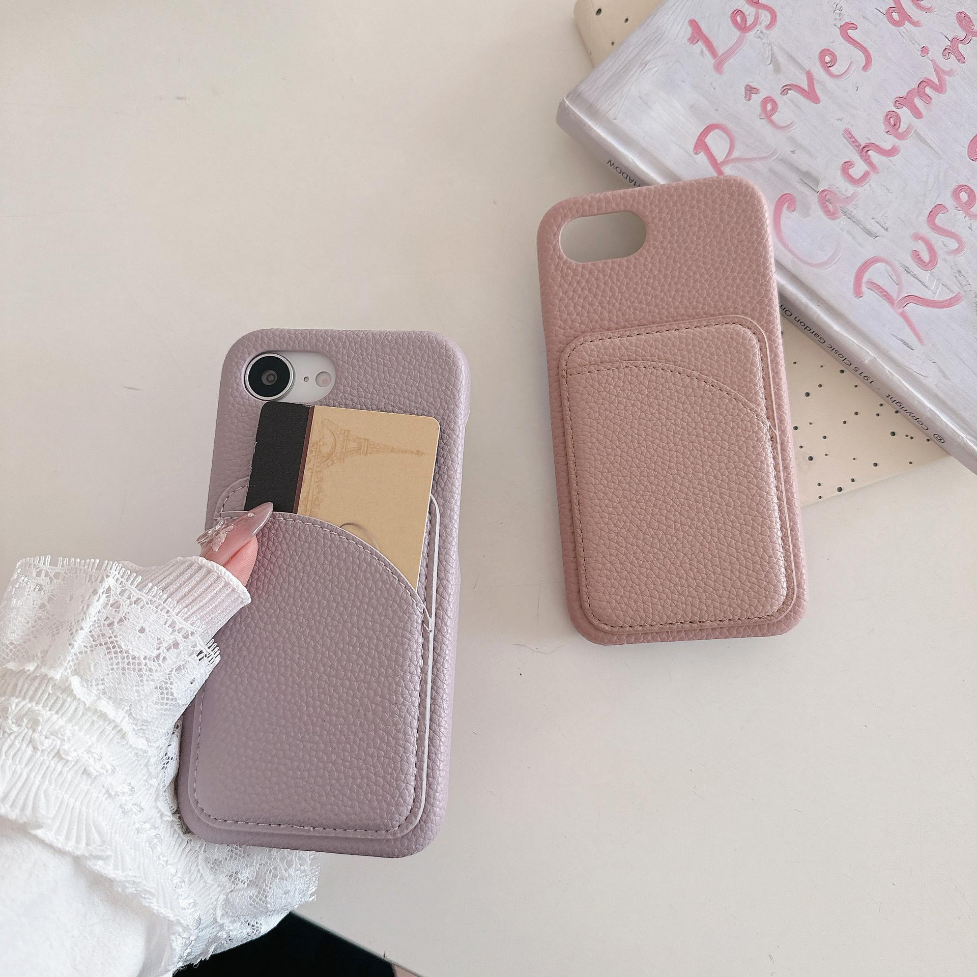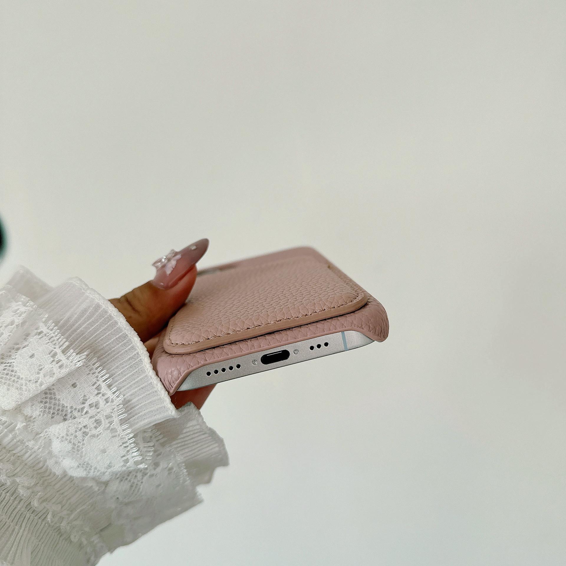 Funda de Tarjetas de Cuero con Patrón Lichi para Funda de Teléfono iphone16 15promax Funda Protectora para Transfronterizo Japón y Corea del Sur