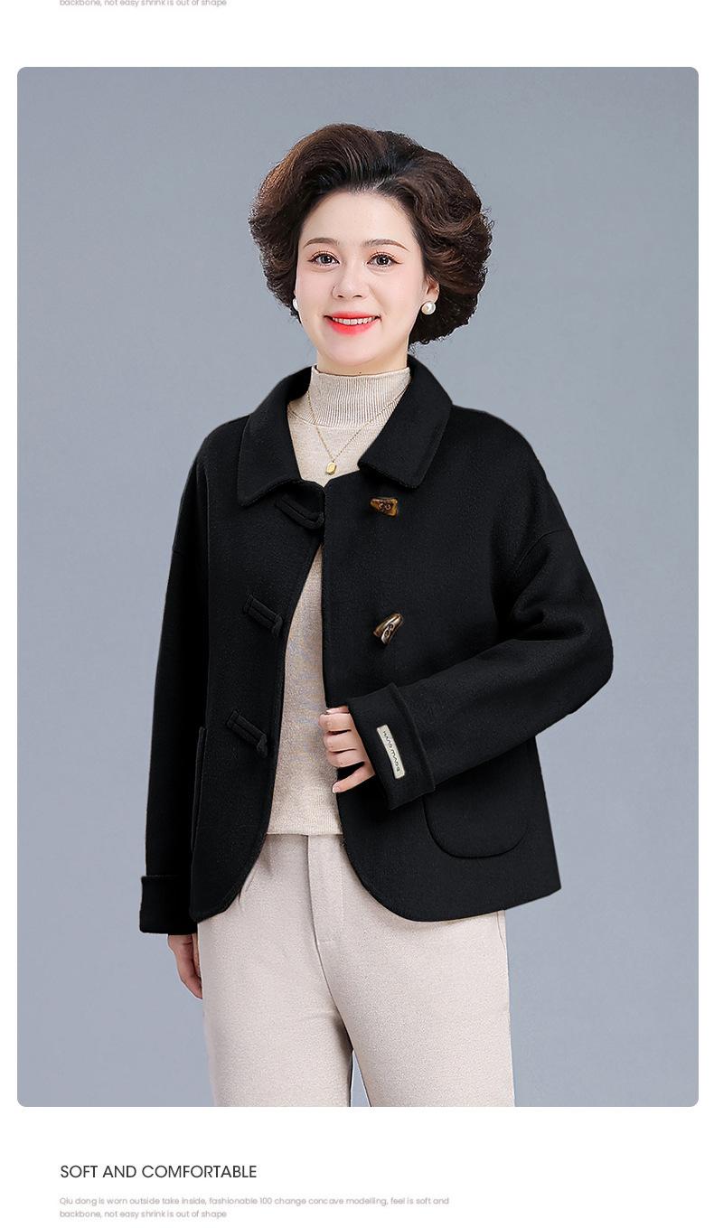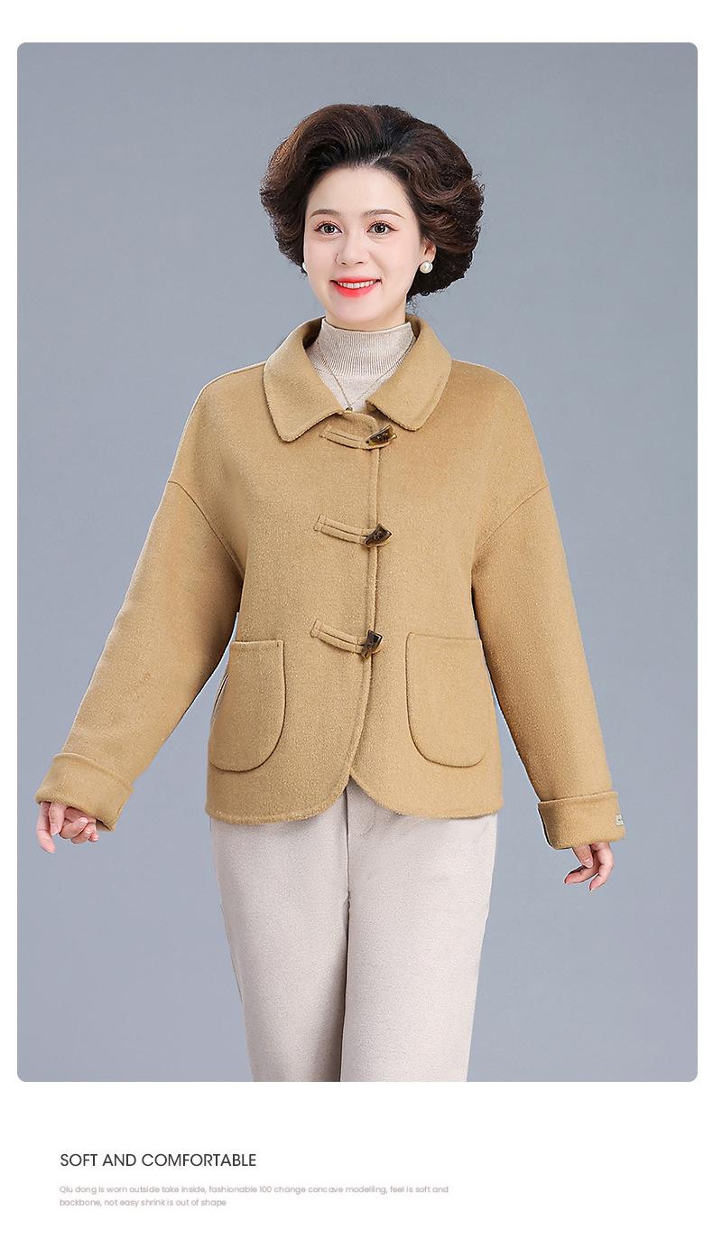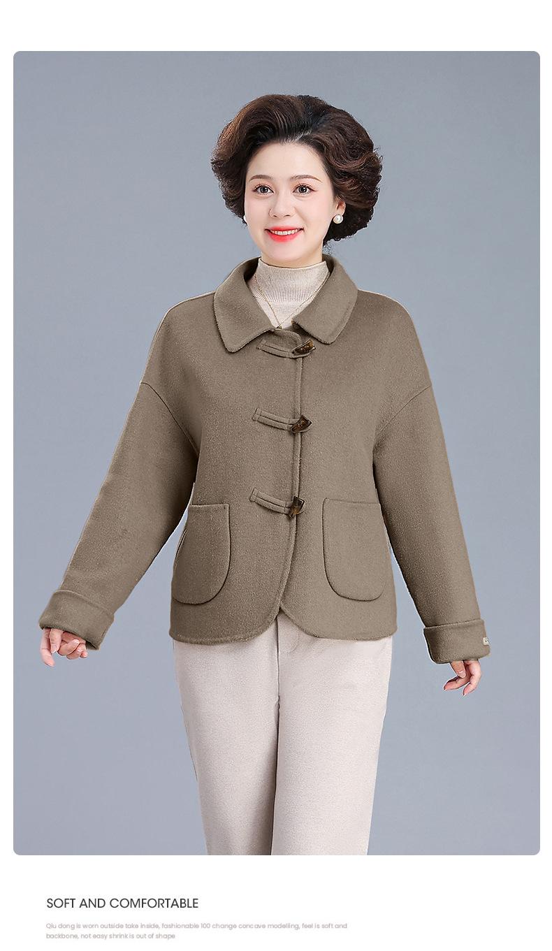 Abrigo de otoño para madre de mediana edad, abrigo de lana de doble cara, abrigo corto de lana de primavera y otoño para mujeres de mediana edad y mayores, una generación de cabello