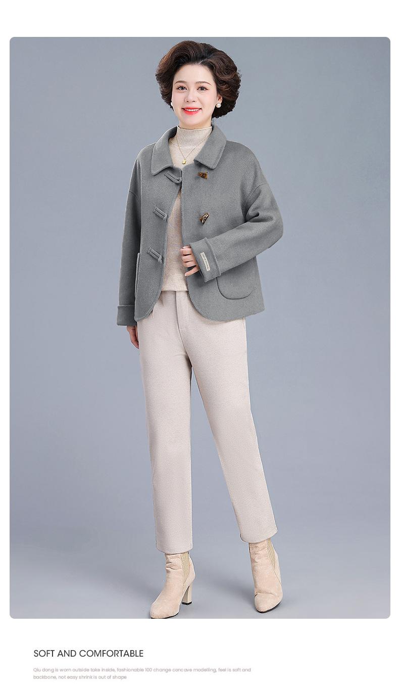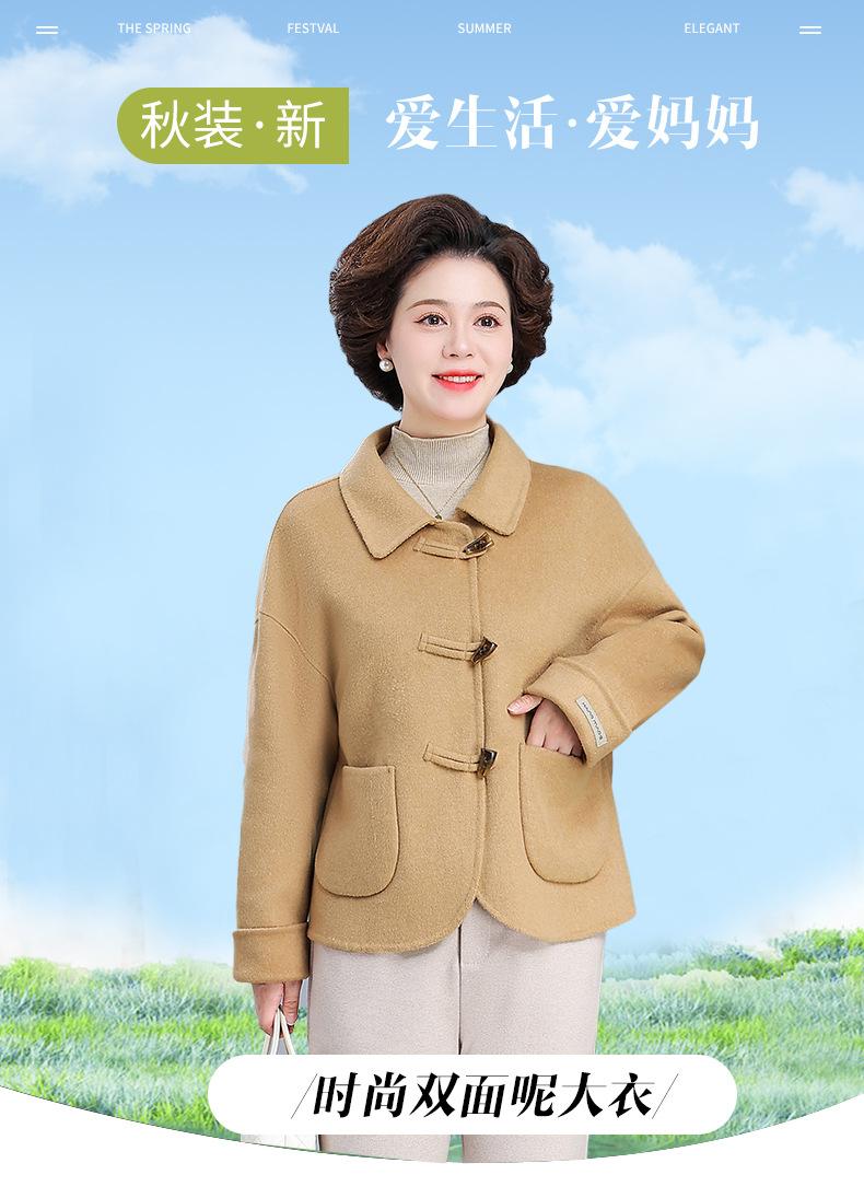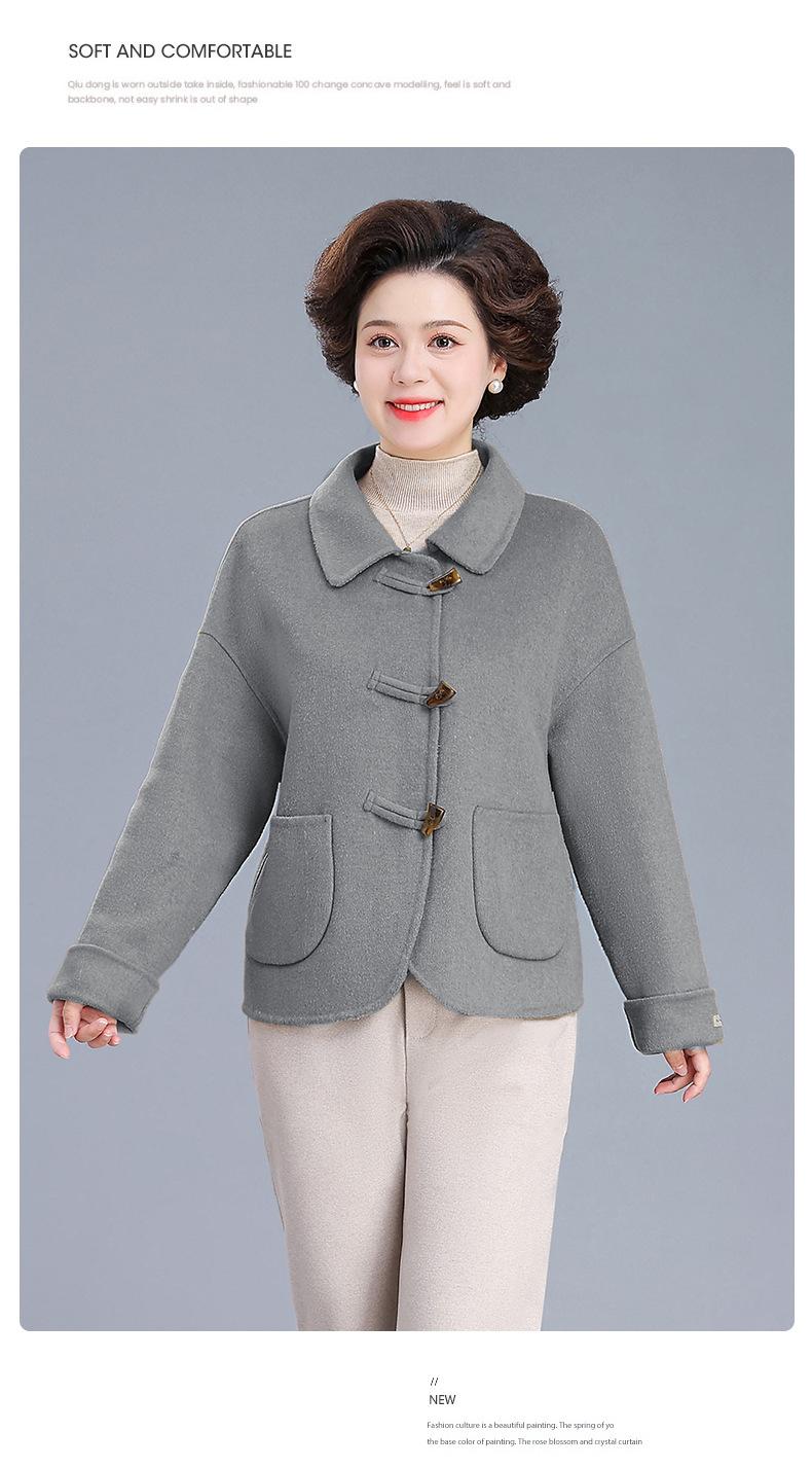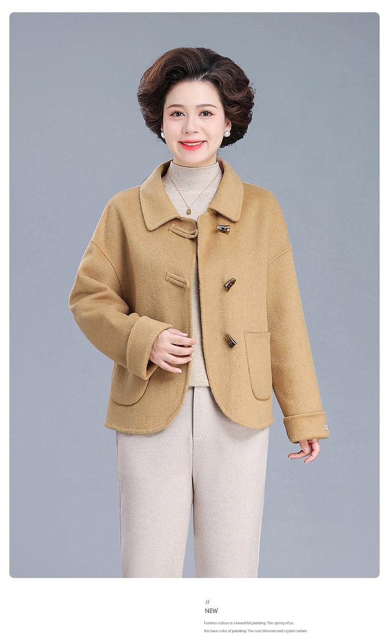 Abrigo de otoño para madre de mediana edad, abrigo de lana de doble cara, abrigo corto de lana de primavera y otoño para mujeres de mediana edad y mayores, una generación de cabello