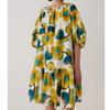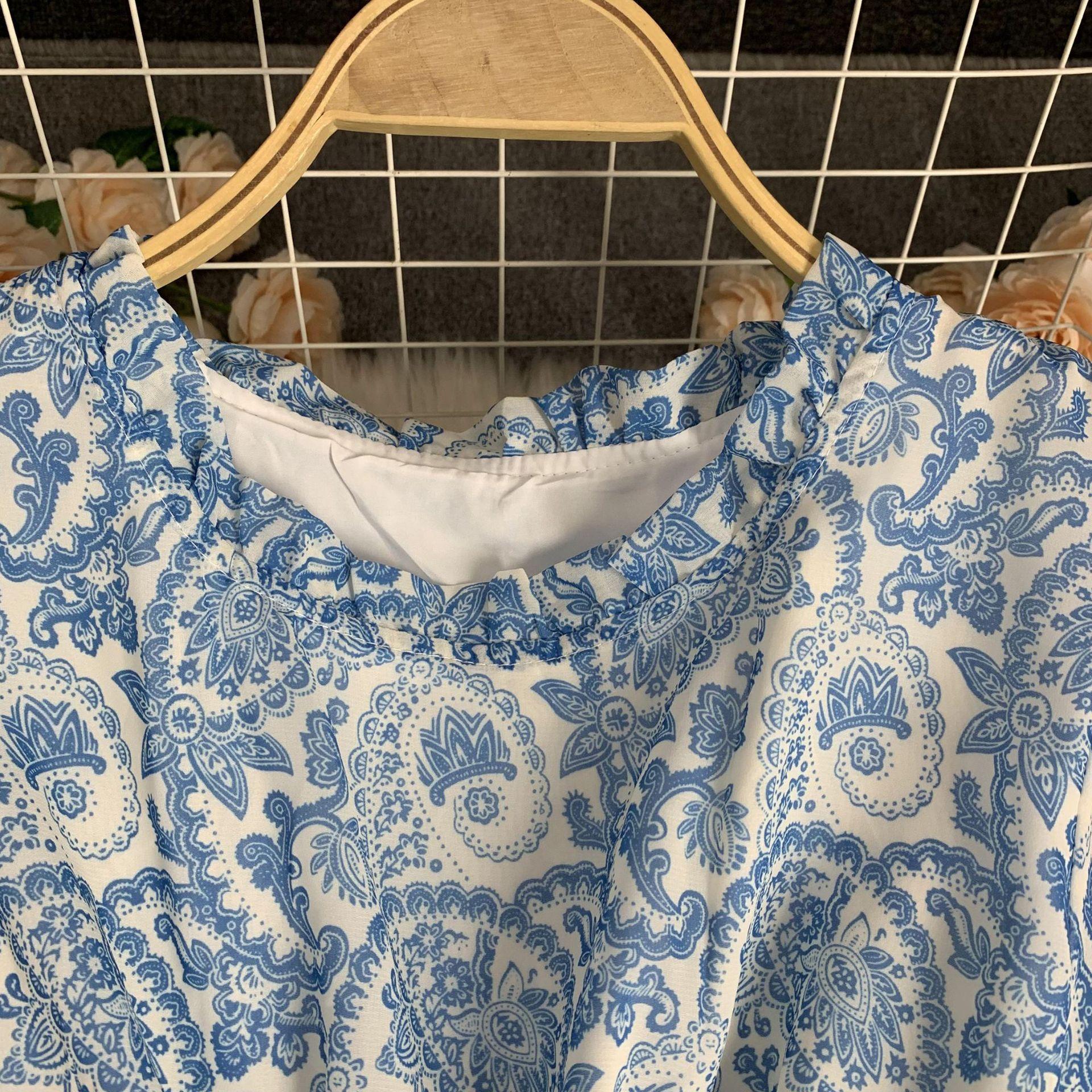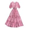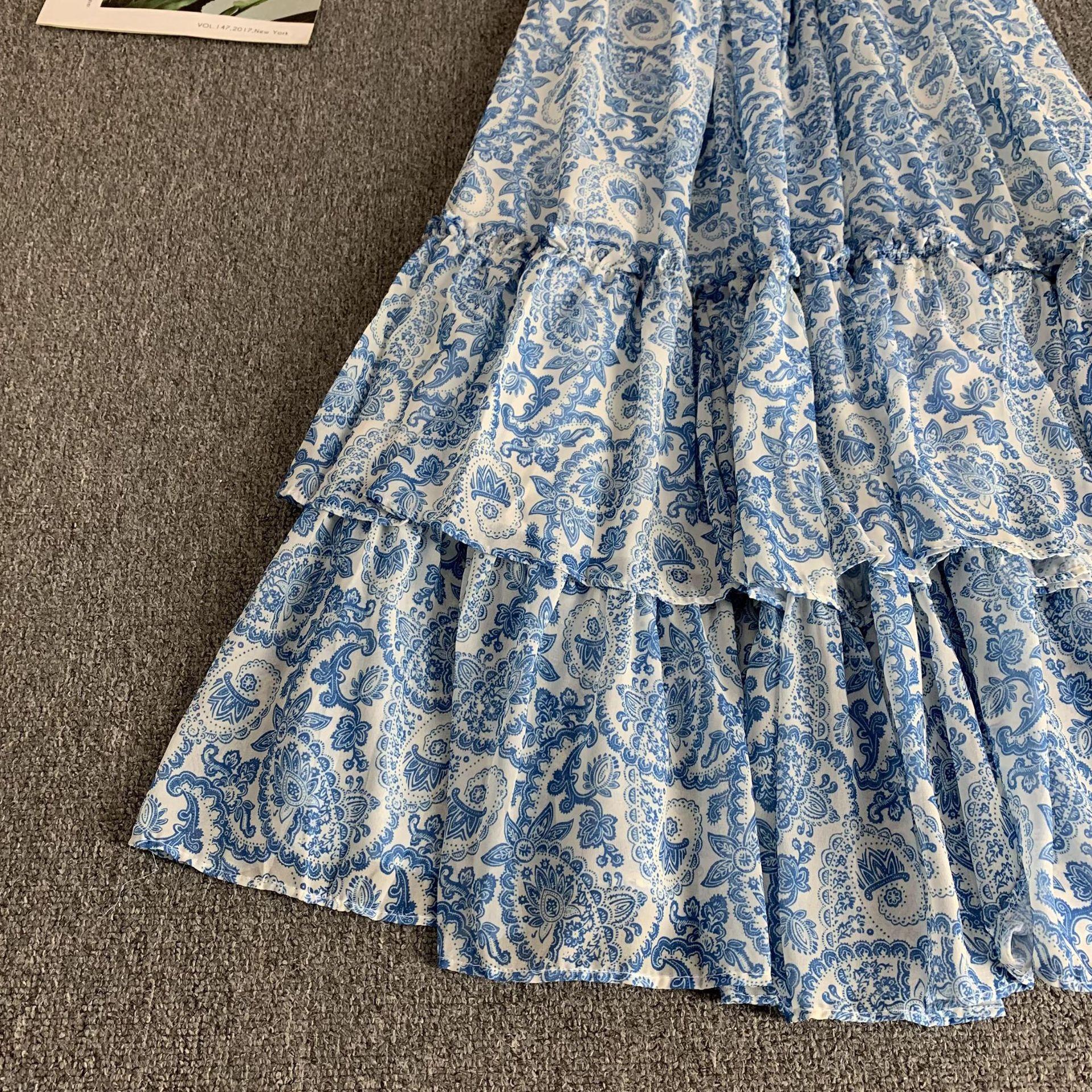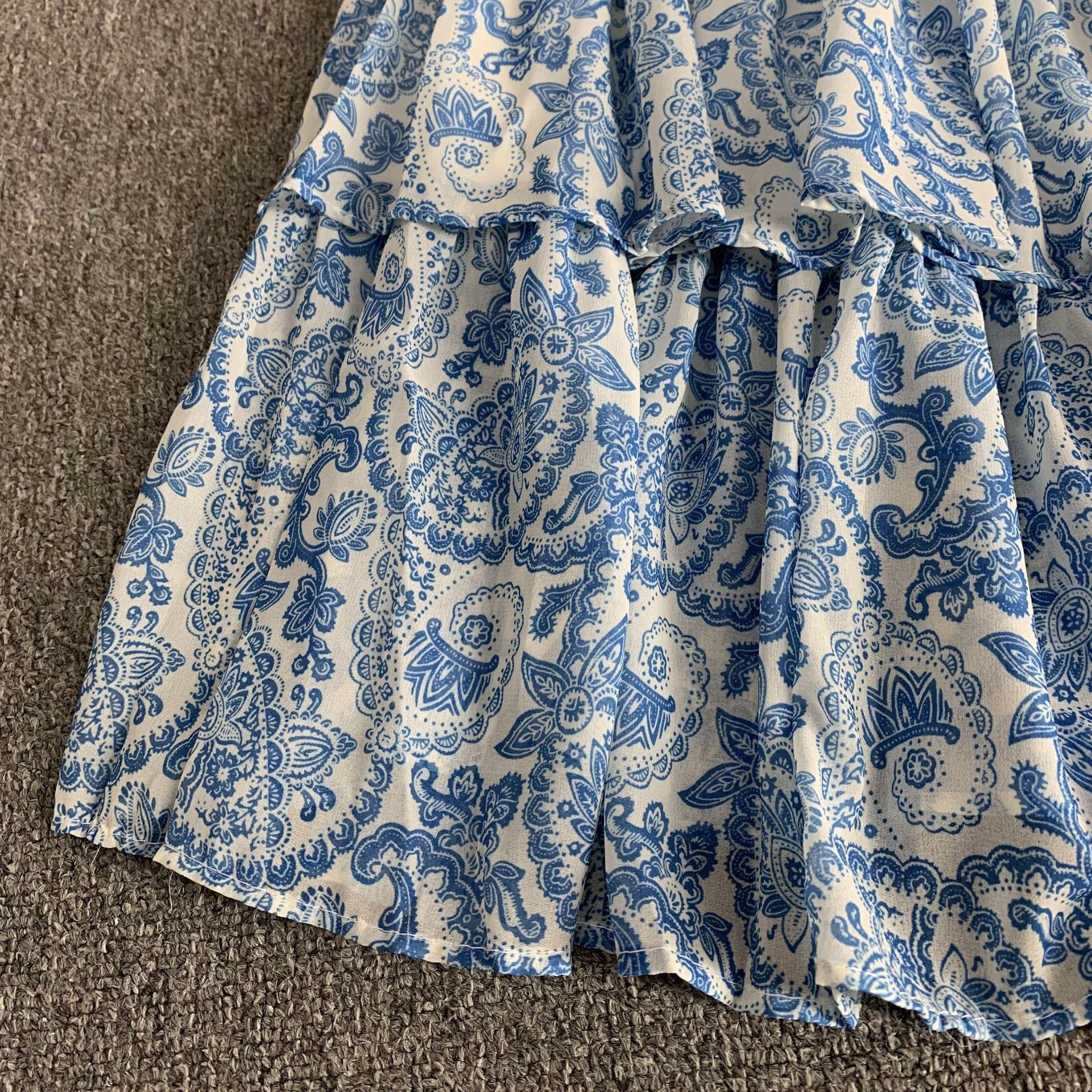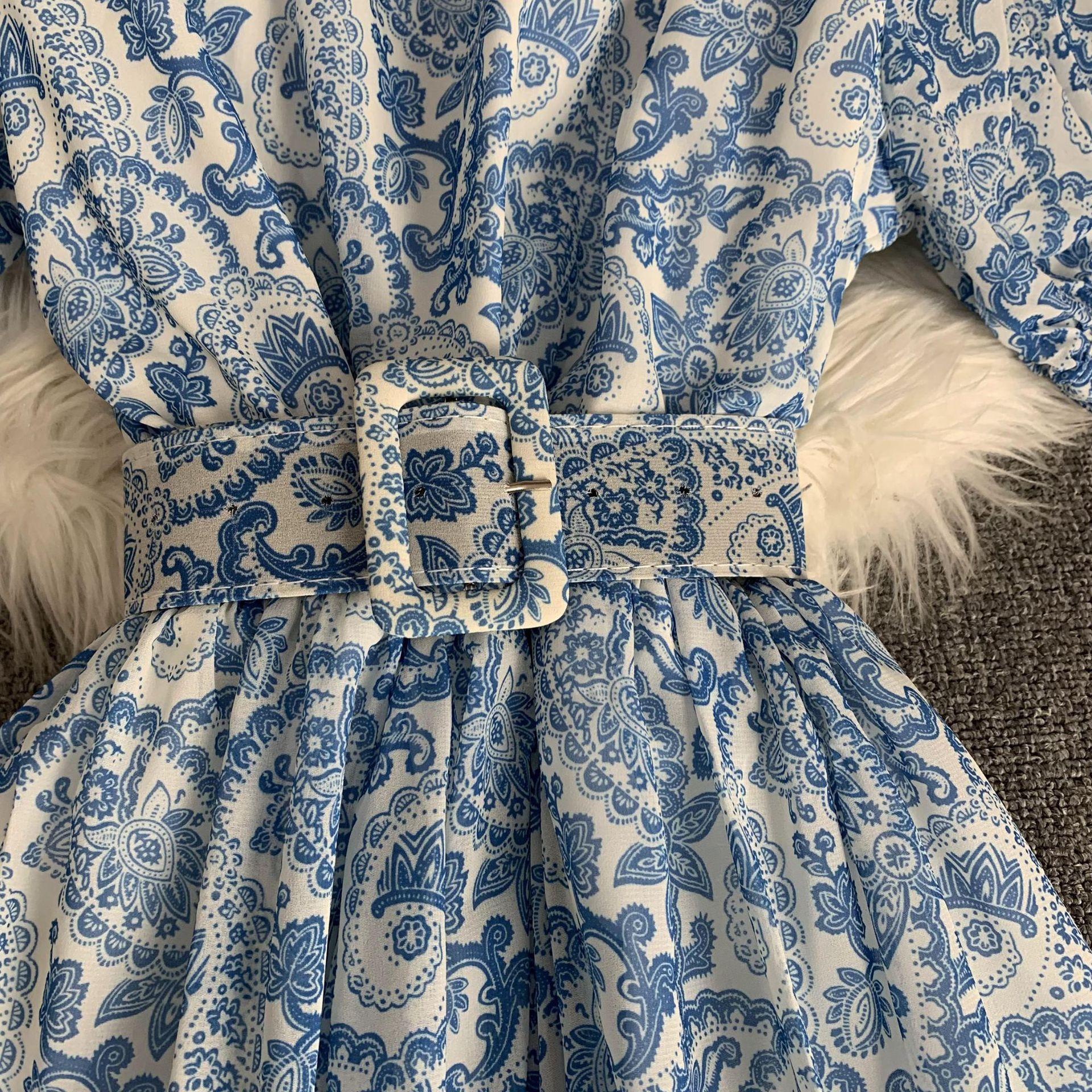 Vestido de Chifón para la Hora del Té Dulce Francés Cuello Redondo Manga Corta Abullonada Estampado para Mujer de Alta Gama Ajustado a la Cintura Adelgazante Tipo Pastel