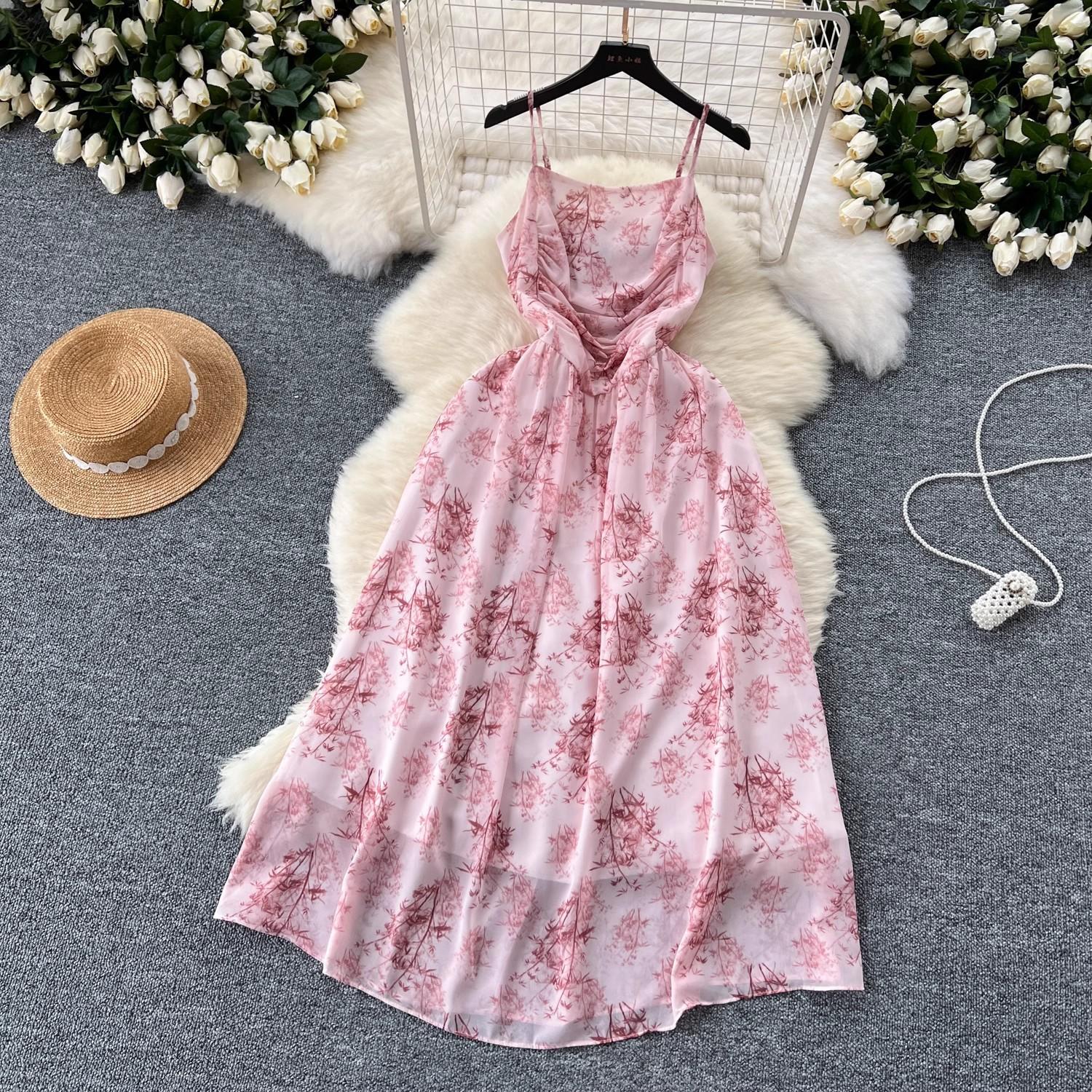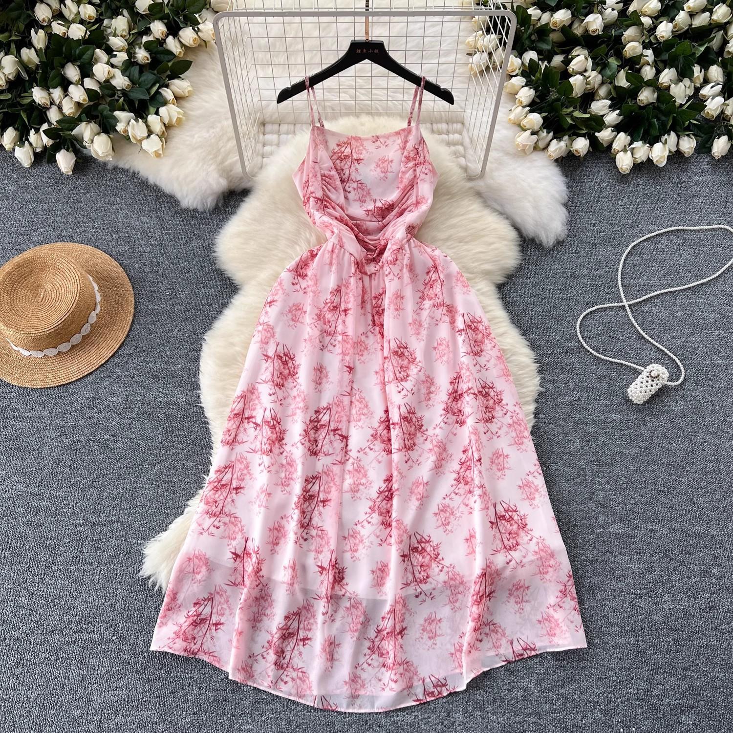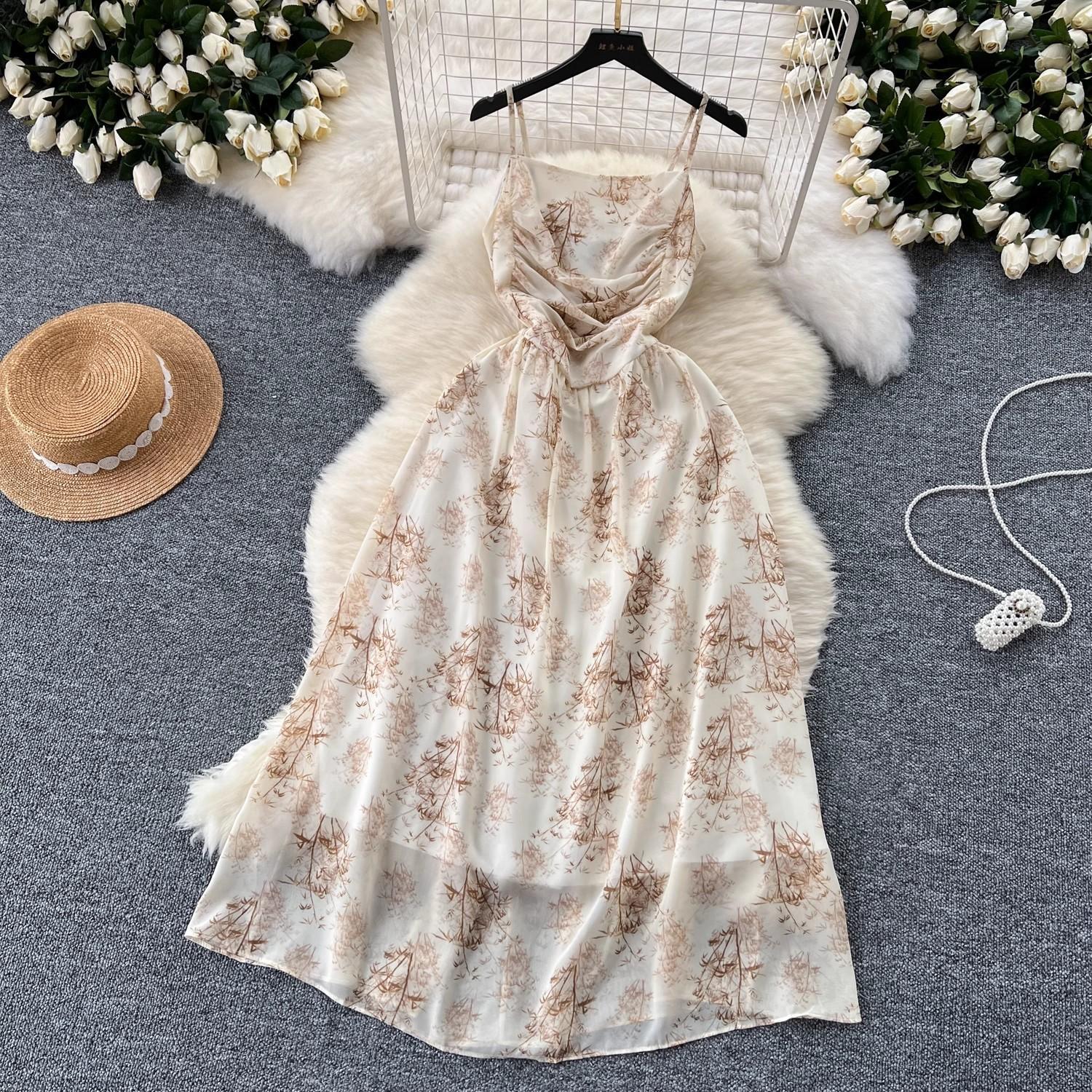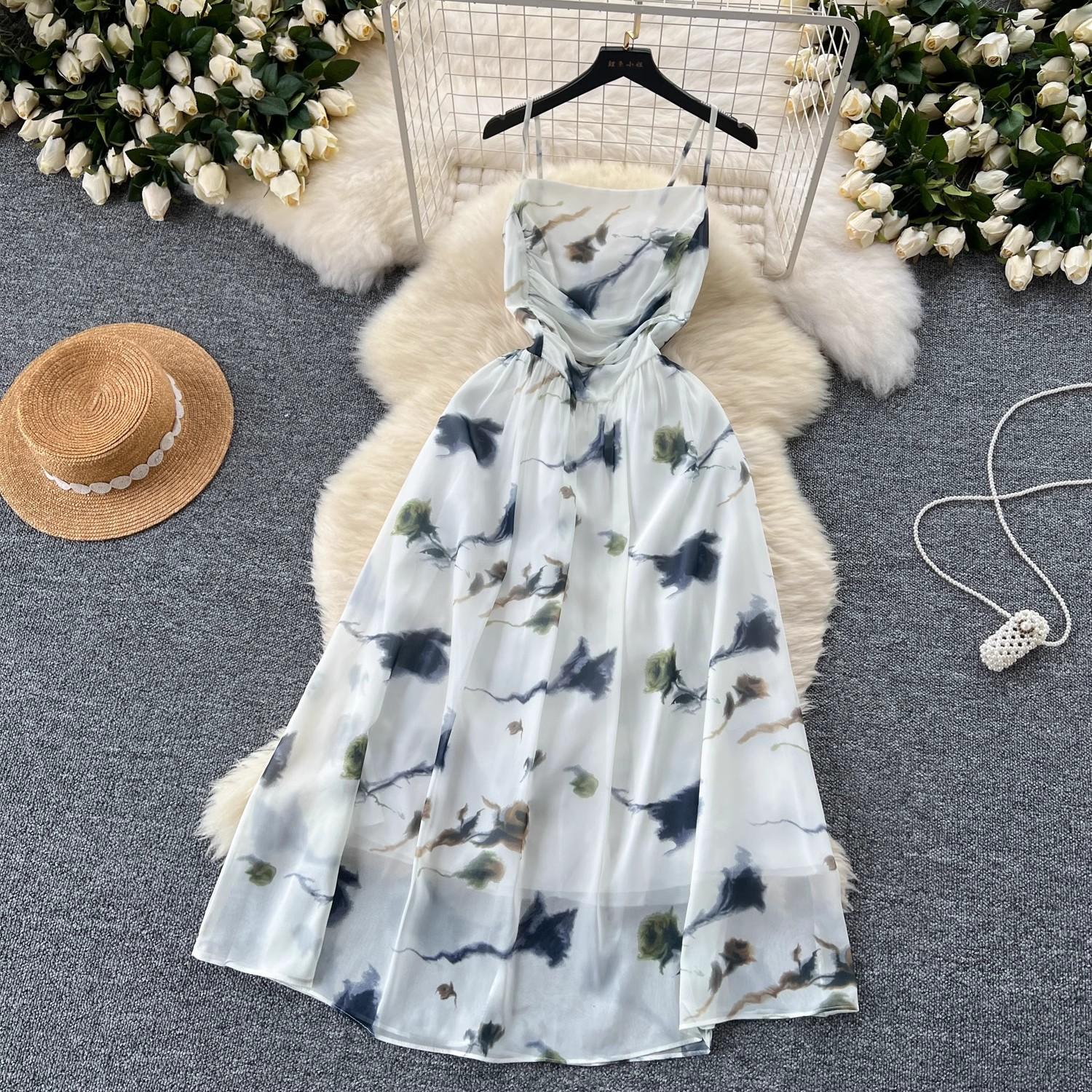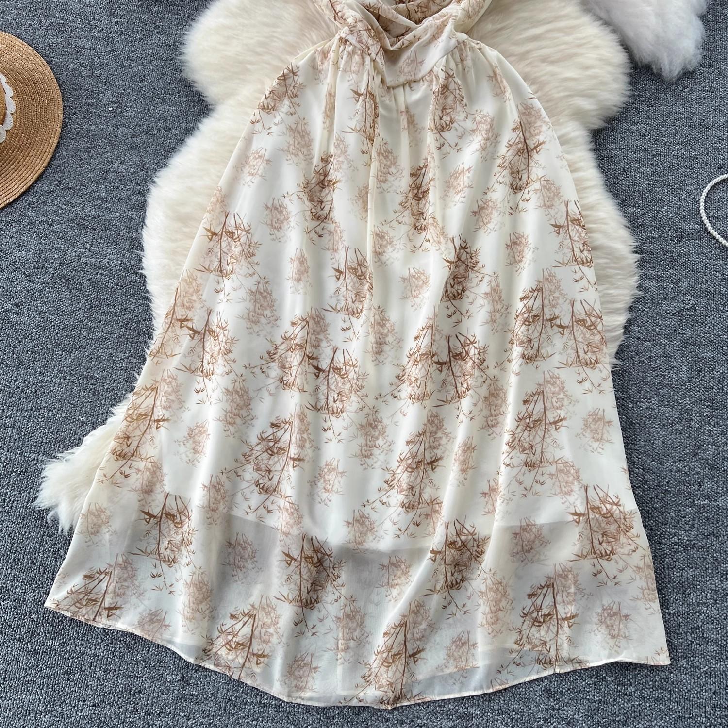 Vestido de mujer de verano sexy sin espalda cintura adelgazante elegante estampado de gasa falda vestido largo
