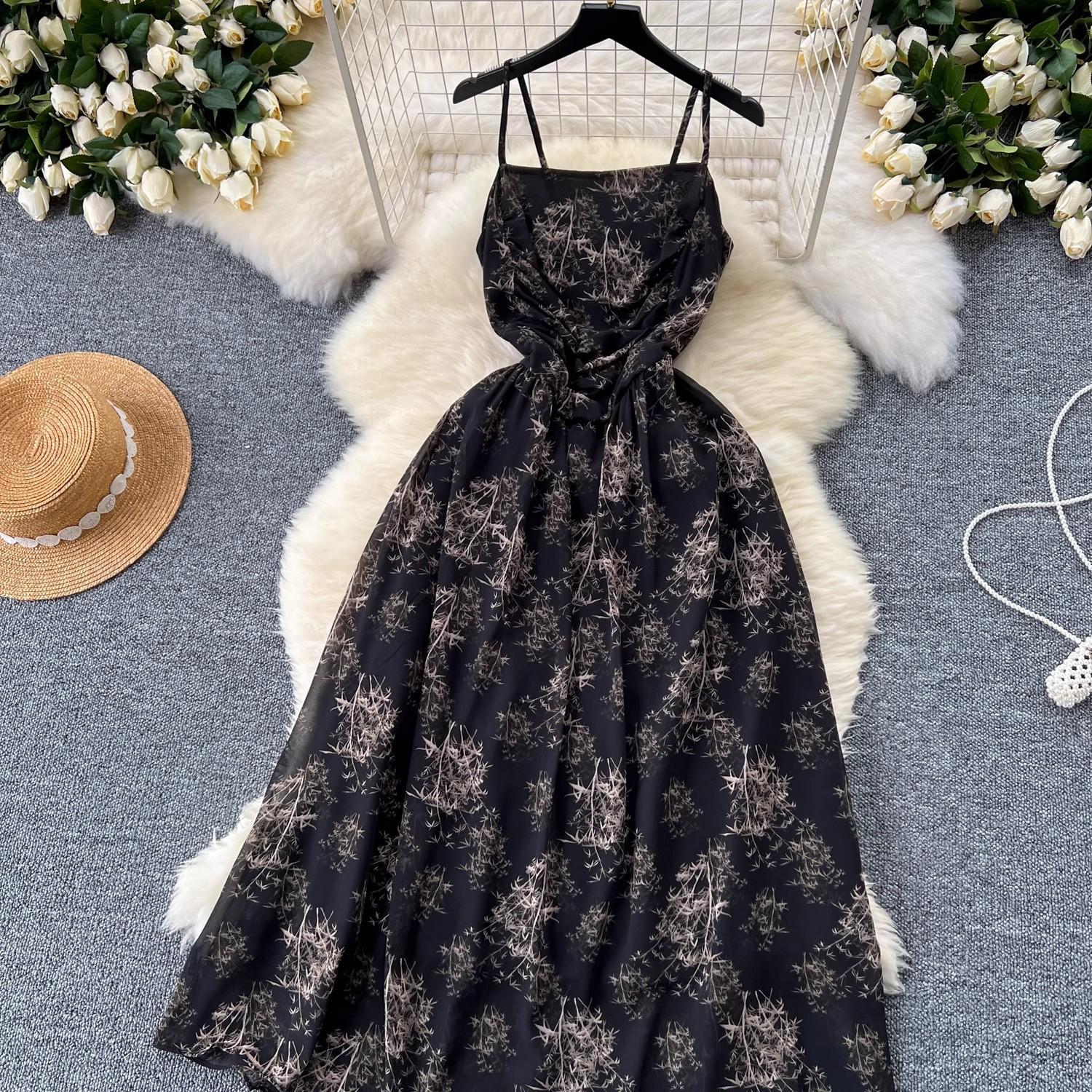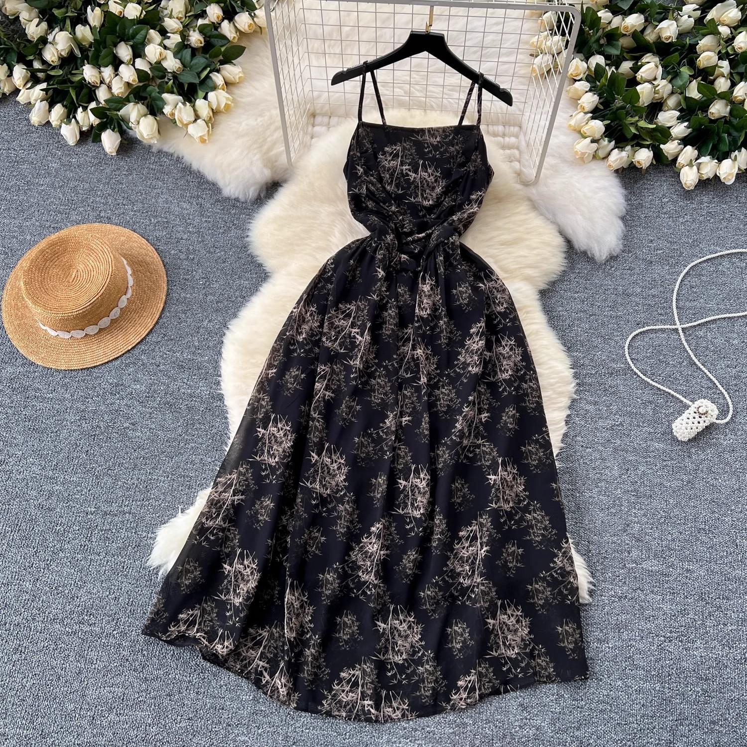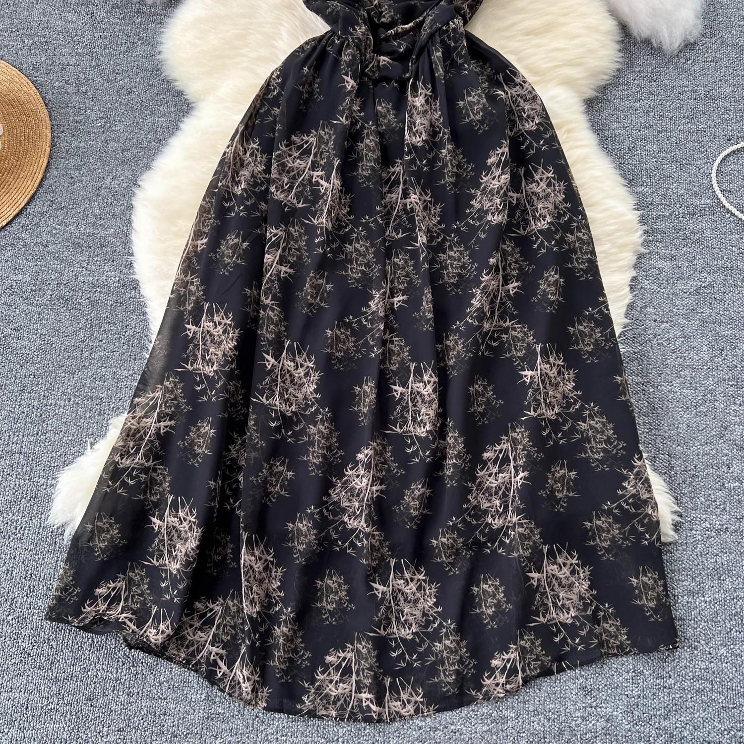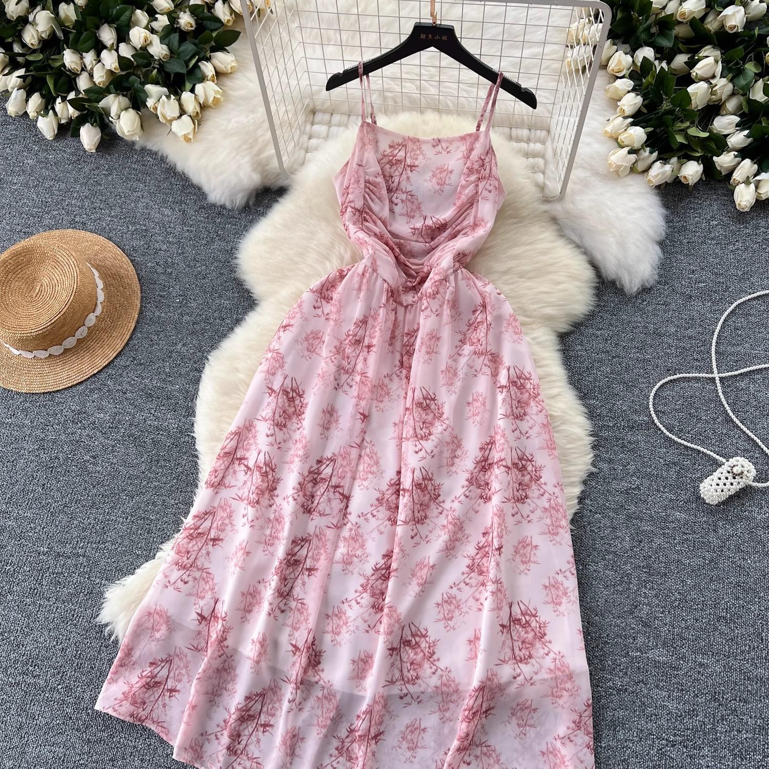 Vestido de mujer de verano sexy sin espalda cintura adelgazante elegante estampado de gasa falda vestido largo