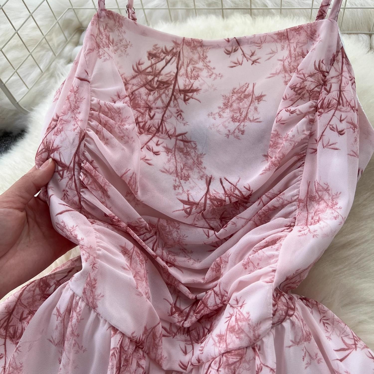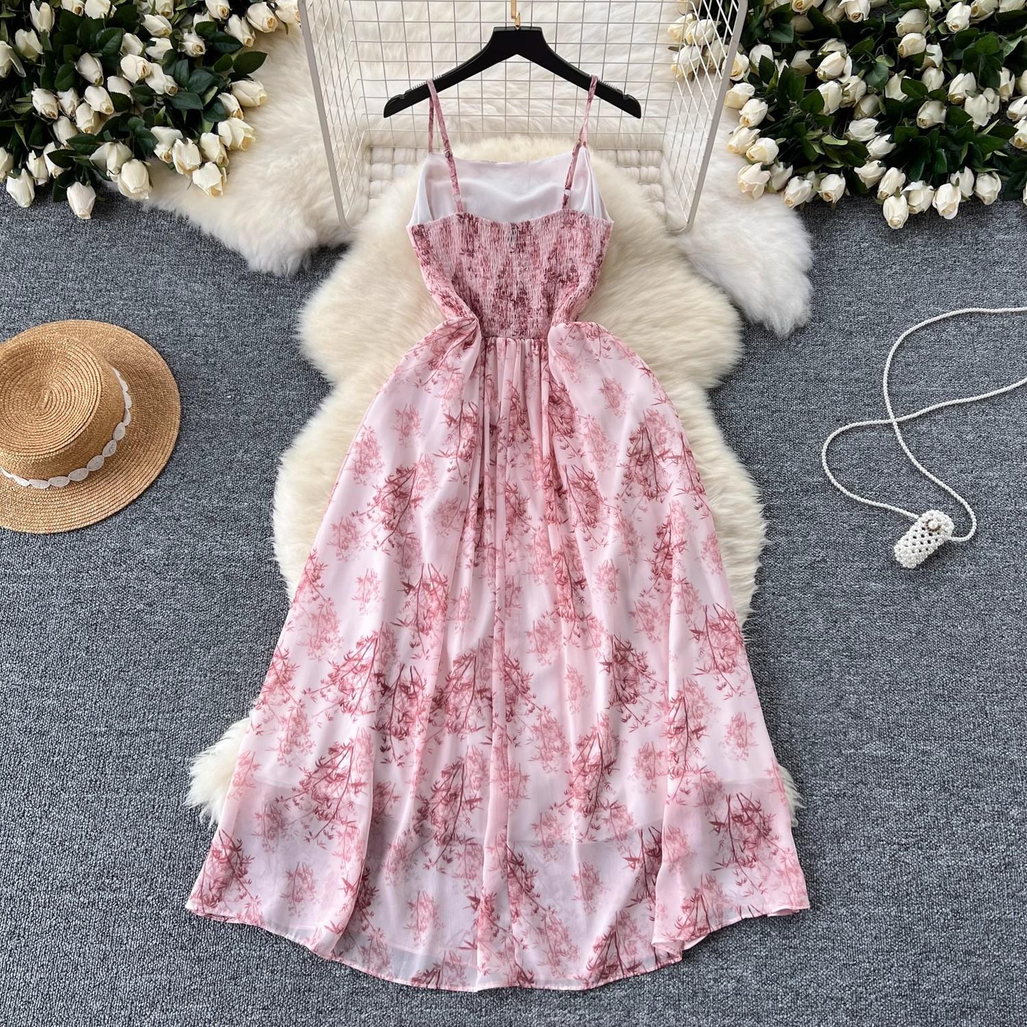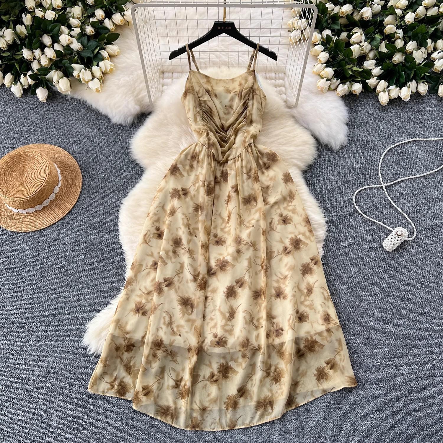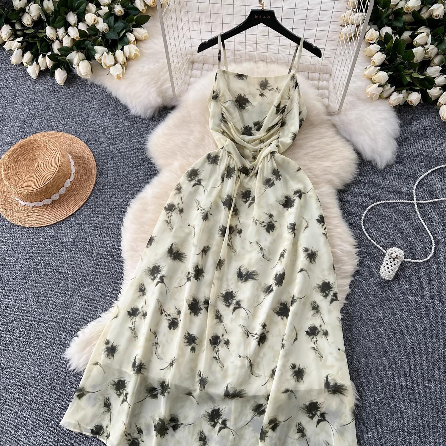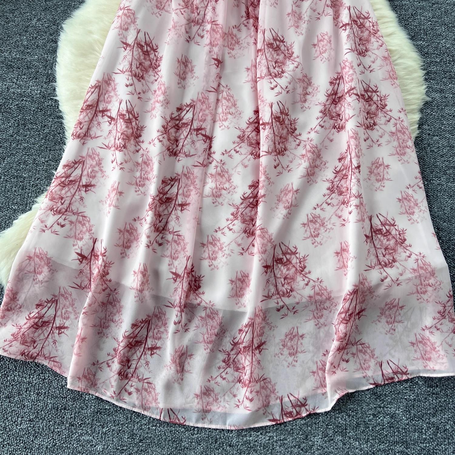 Vestido de mujer de verano sexy sin espalda cintura adelgazante elegante estampado de gasa falda vestido largo