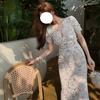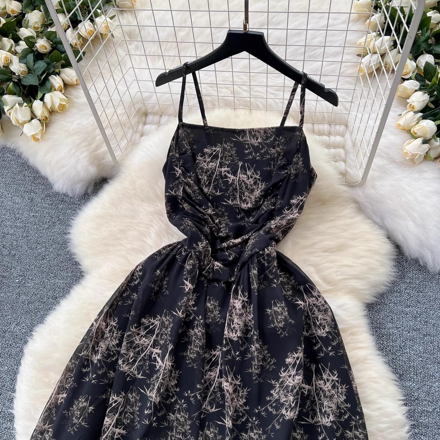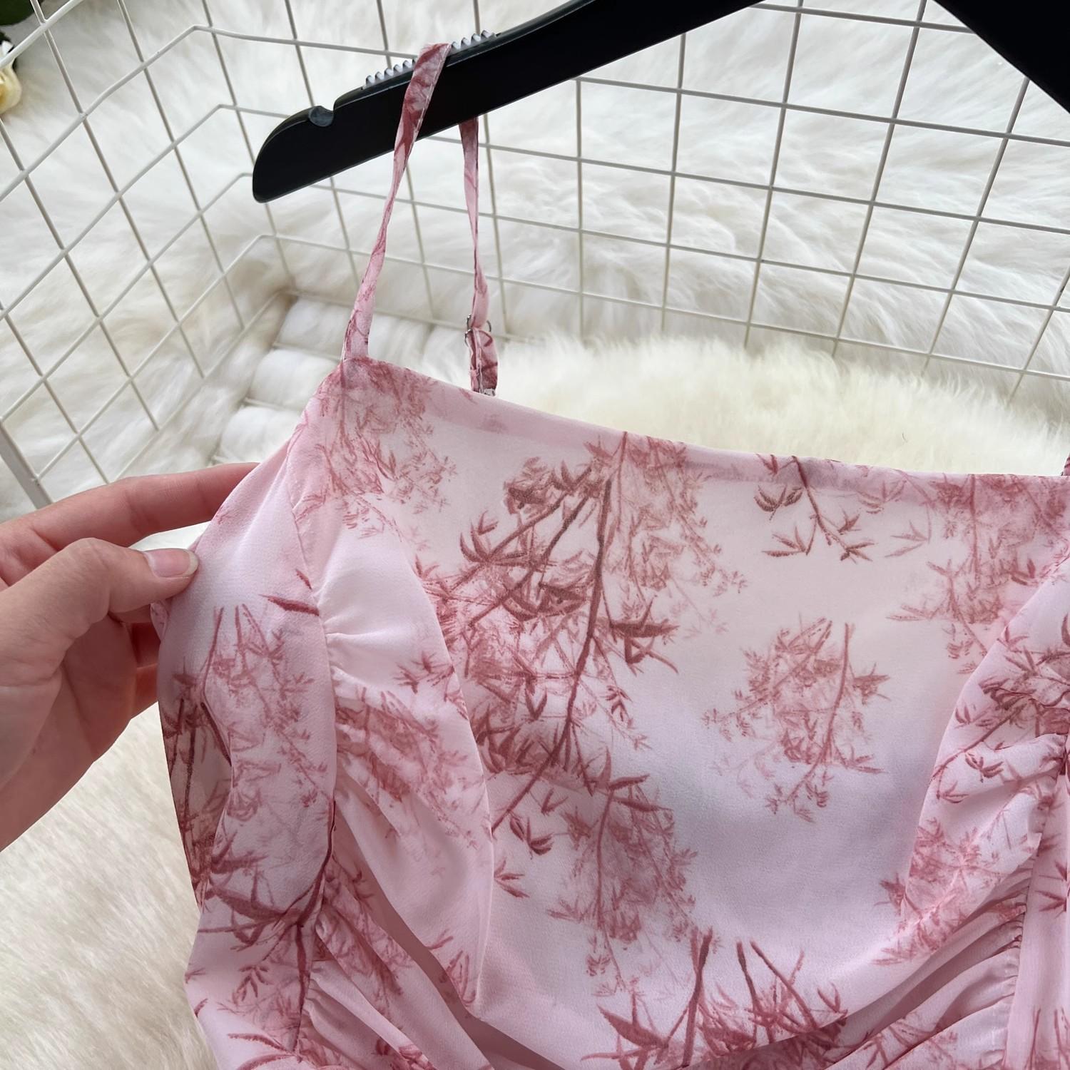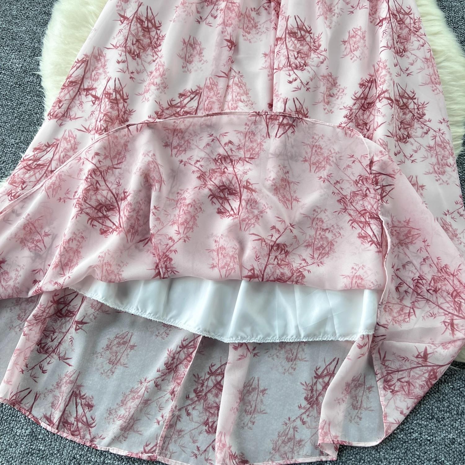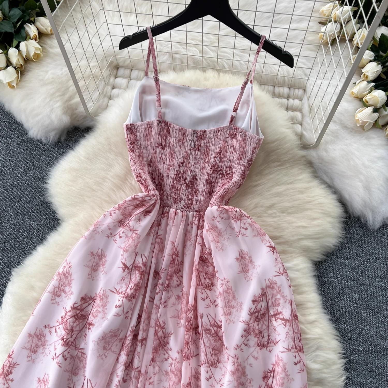 Vestido de mujer de verano sexy sin espalda cintura adelgazante elegante estampado de gasa falda vestido largo