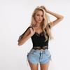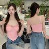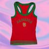 Verano Americano Contraste de Color Letra Bordada Ajustado Tirantes de Mujer Vintage Dulce y Caliente Hermosa Espalda Delgado Sexy Top Chaleco