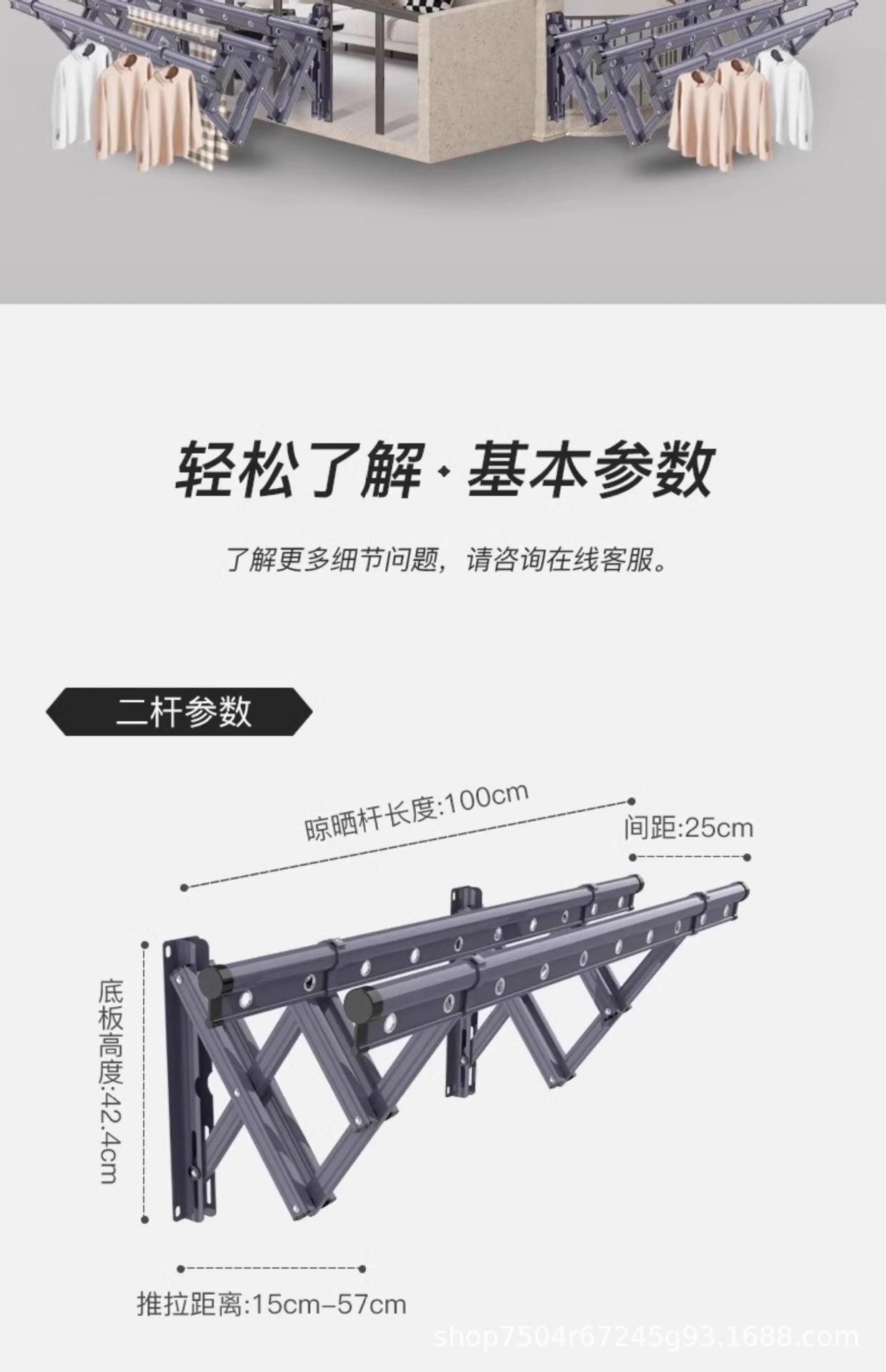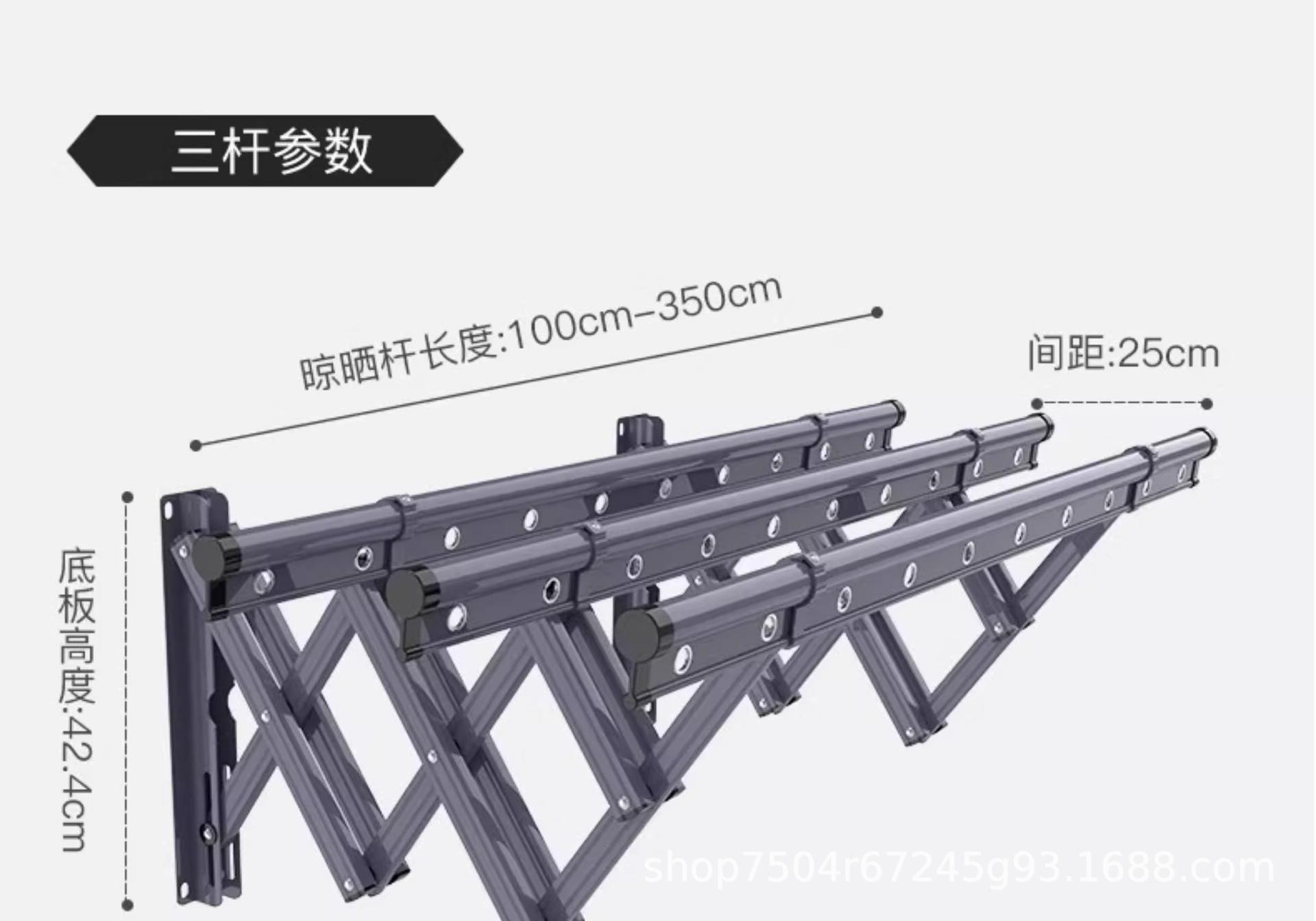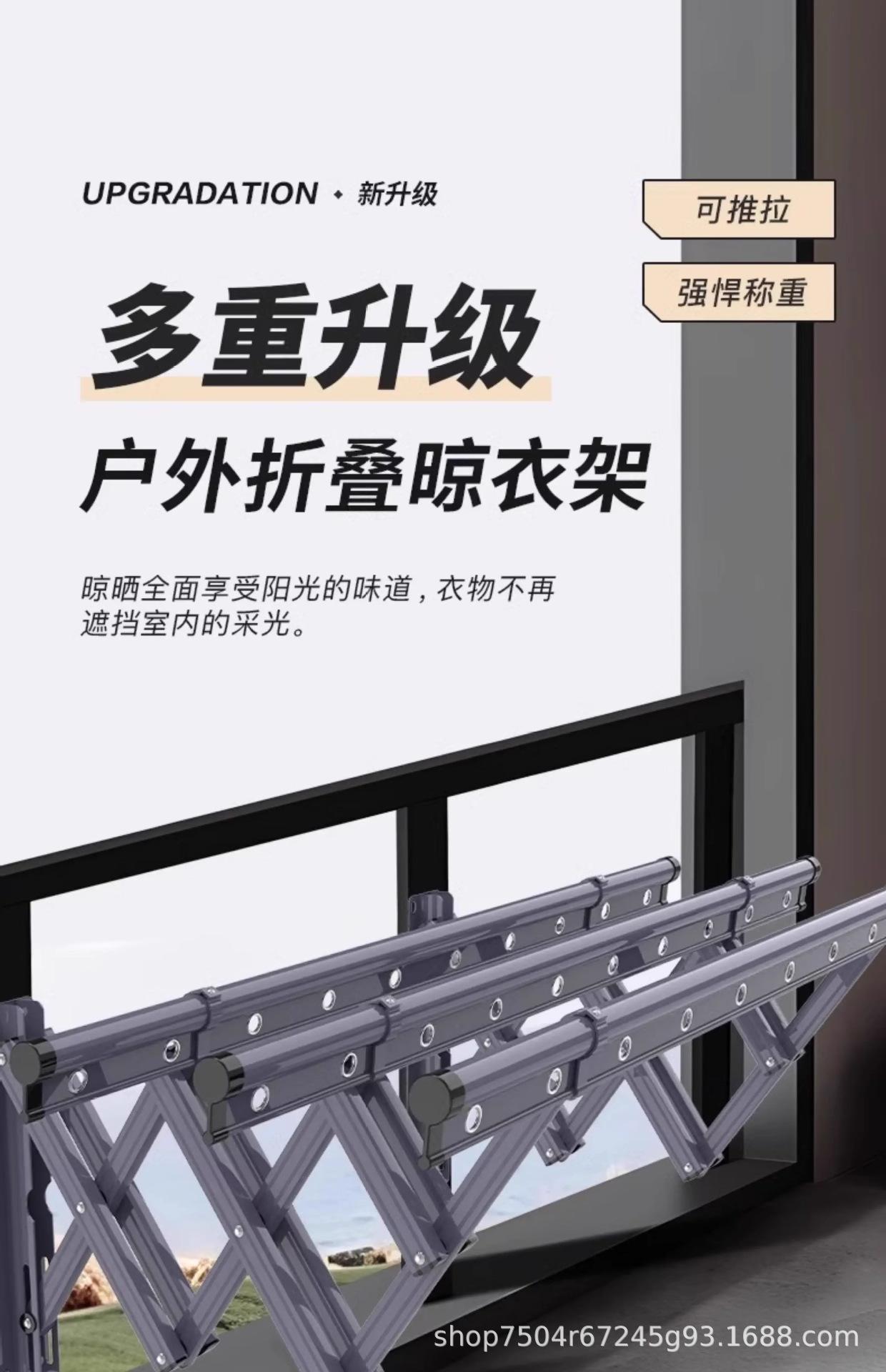 Tendedero de ropa de ventana de empuje y tracción doméstico gris de tres polos Balcón Tendedero telescópico Varilla para secar ropa plegable para exteriores Ropa