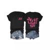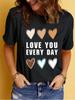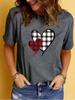 Camiseta de mujer de comercio exterior con estampado floral de San Valentín, cuello redondo, hombros descubiertos, manga corta
