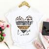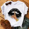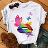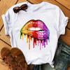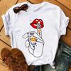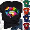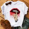 Camiseta Estampada Labios de Leopardo Moda de Mujer Verano Manga Corta