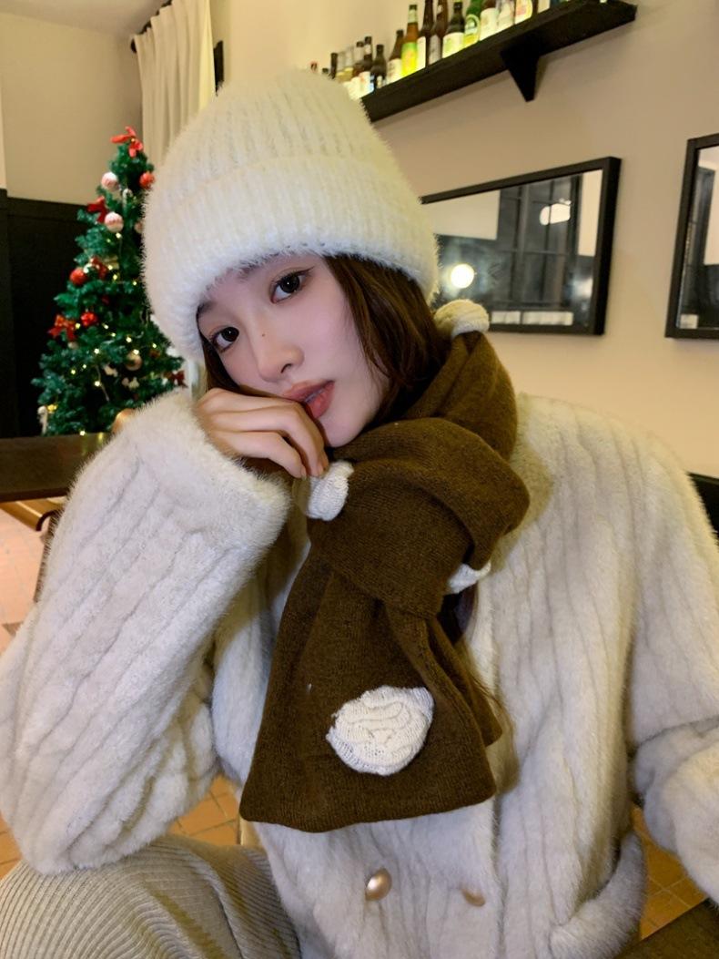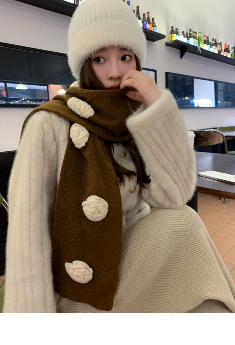 Bufanda nueva de otoño e invierno 2023 para mujer, cachemira mezclada con camelia, corta, gruesa, atmosférica, versátil, cálida