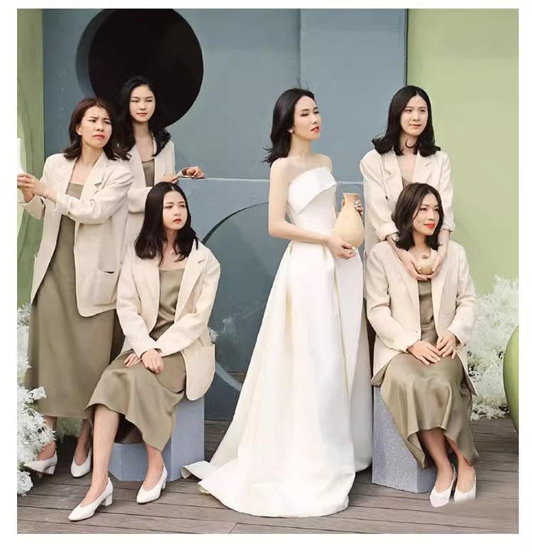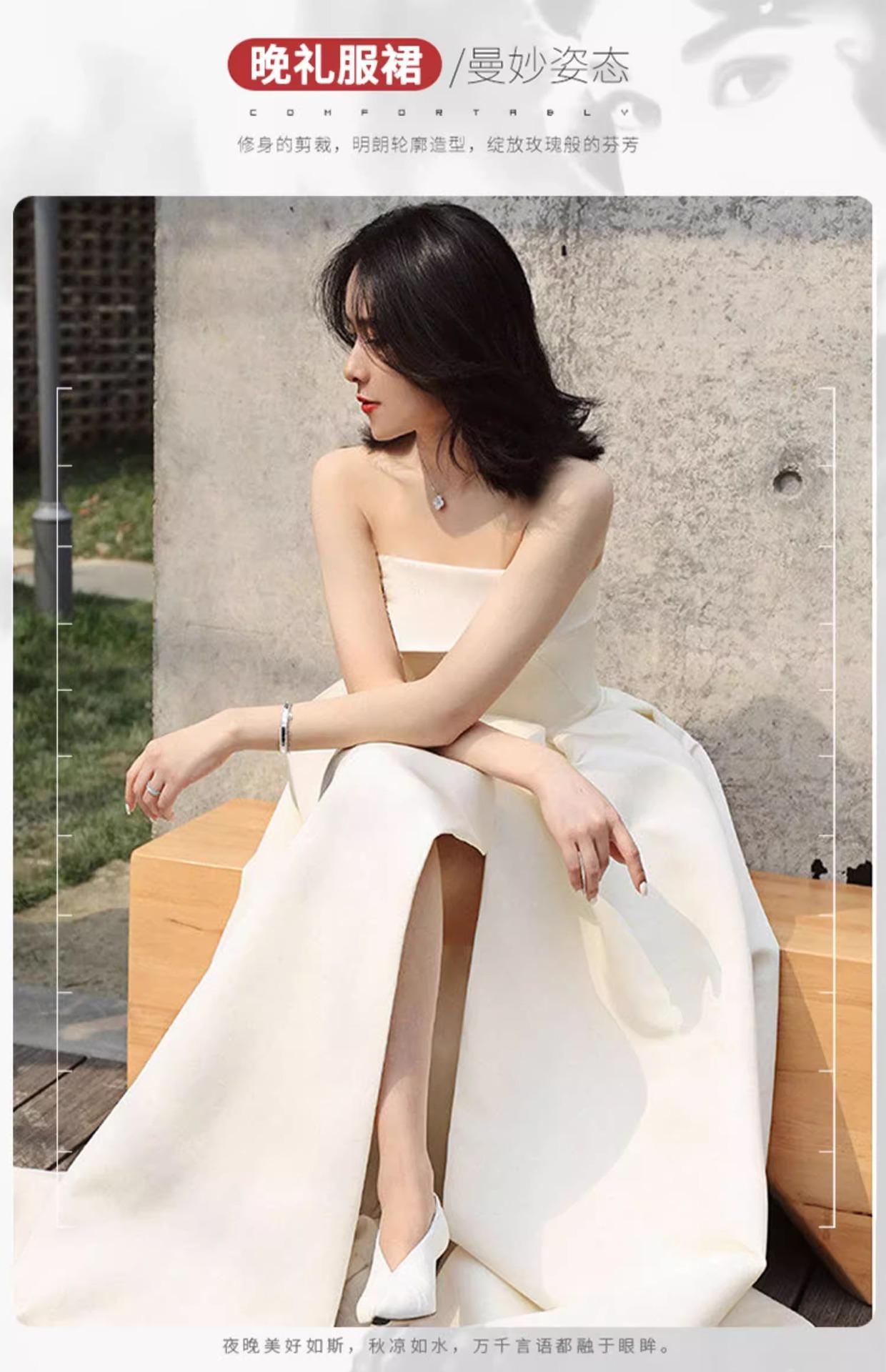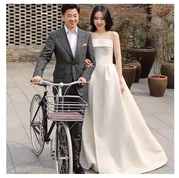 Vestido de Novia Principal de Satén Francés 2025 Nuevo Estilo Elegante Simple Strapless Otoño Novia Salir Hilo Ligero Vestido de Novia Hilo de Bienvenida
