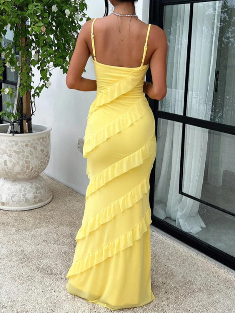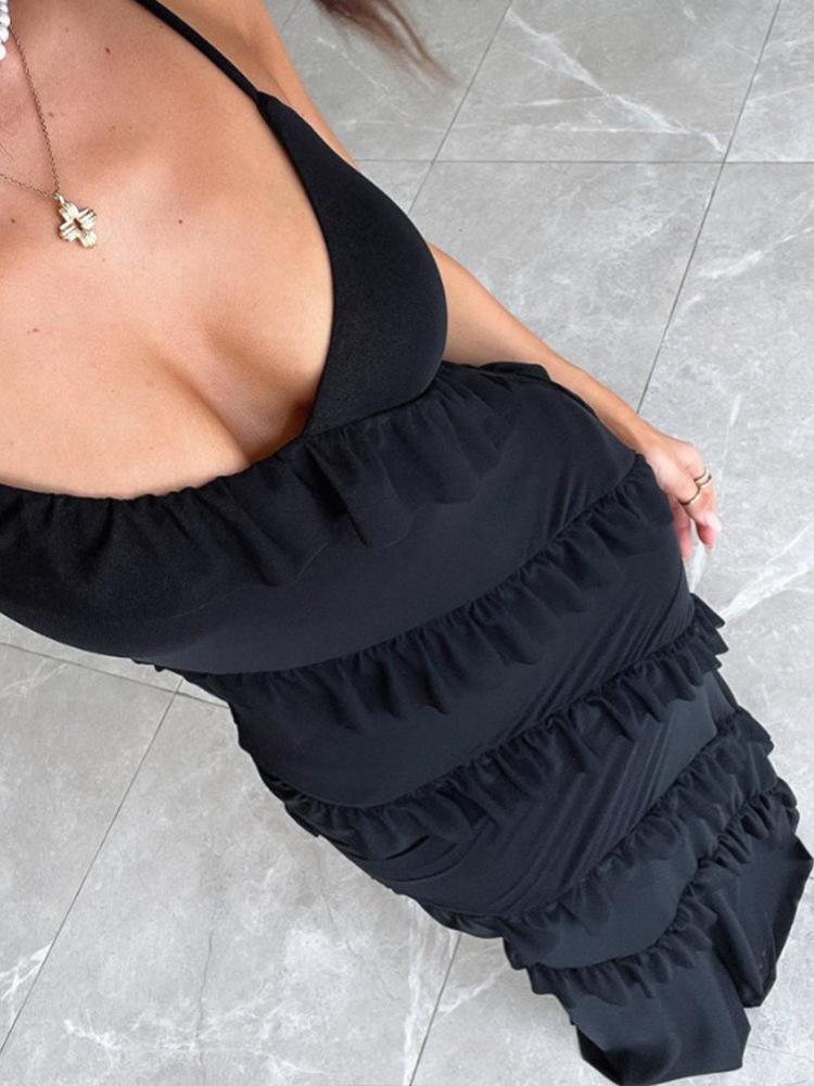 Vestido Dividido Europeo y Americano 2025 Vestido Europeo y Americano Transfronterizo Sexy con Tirantes y Volantes Espalda Descubierta Vestido con Volantes vestido