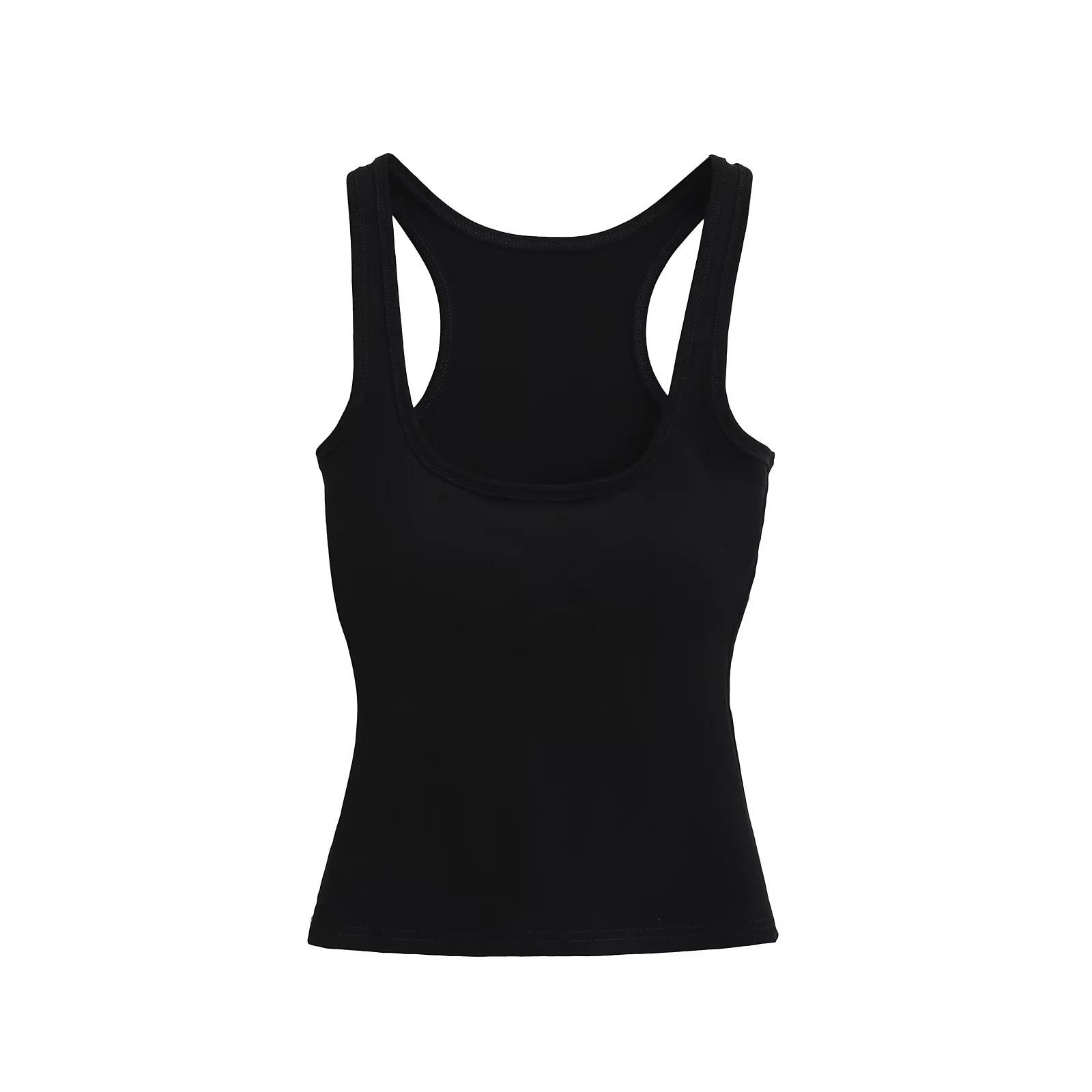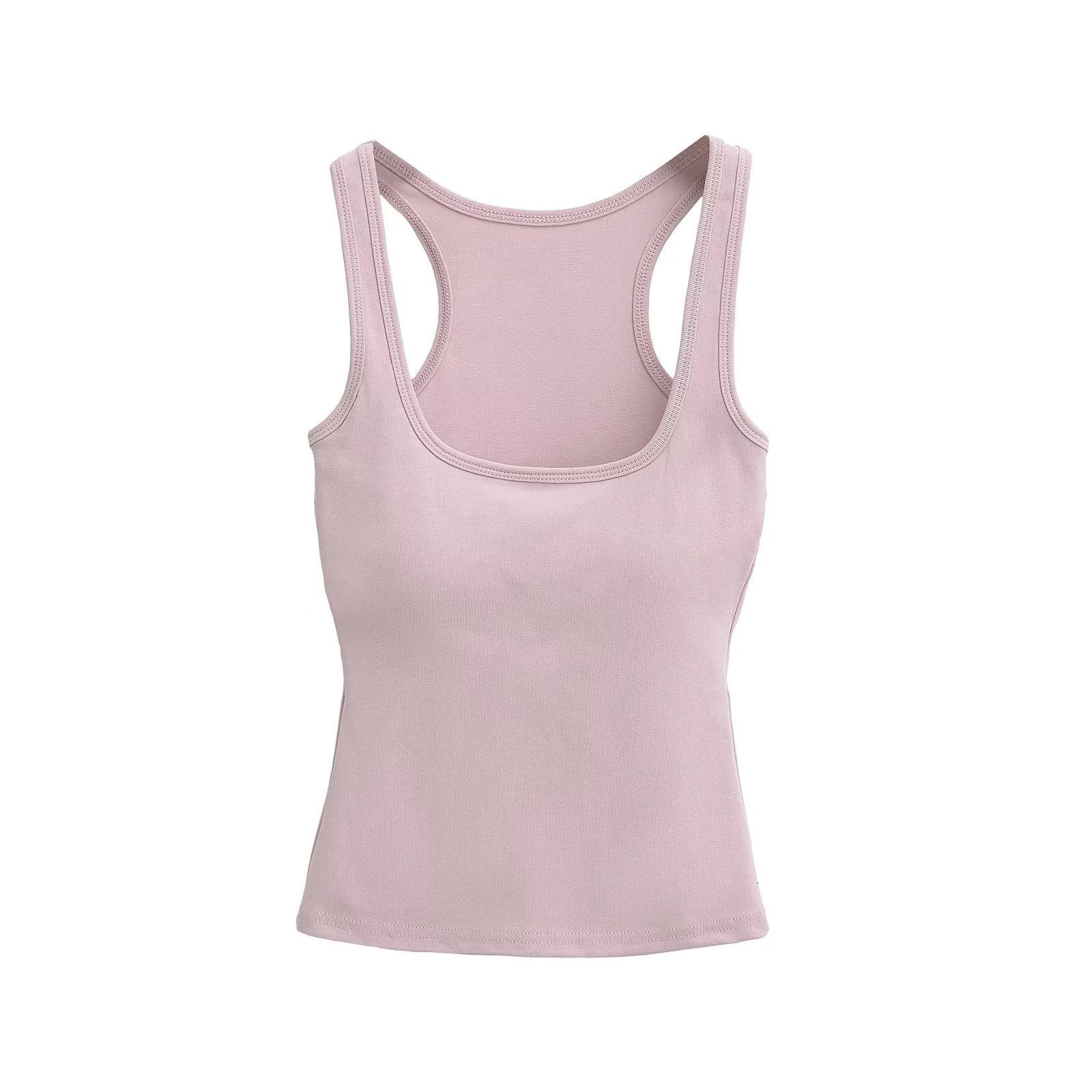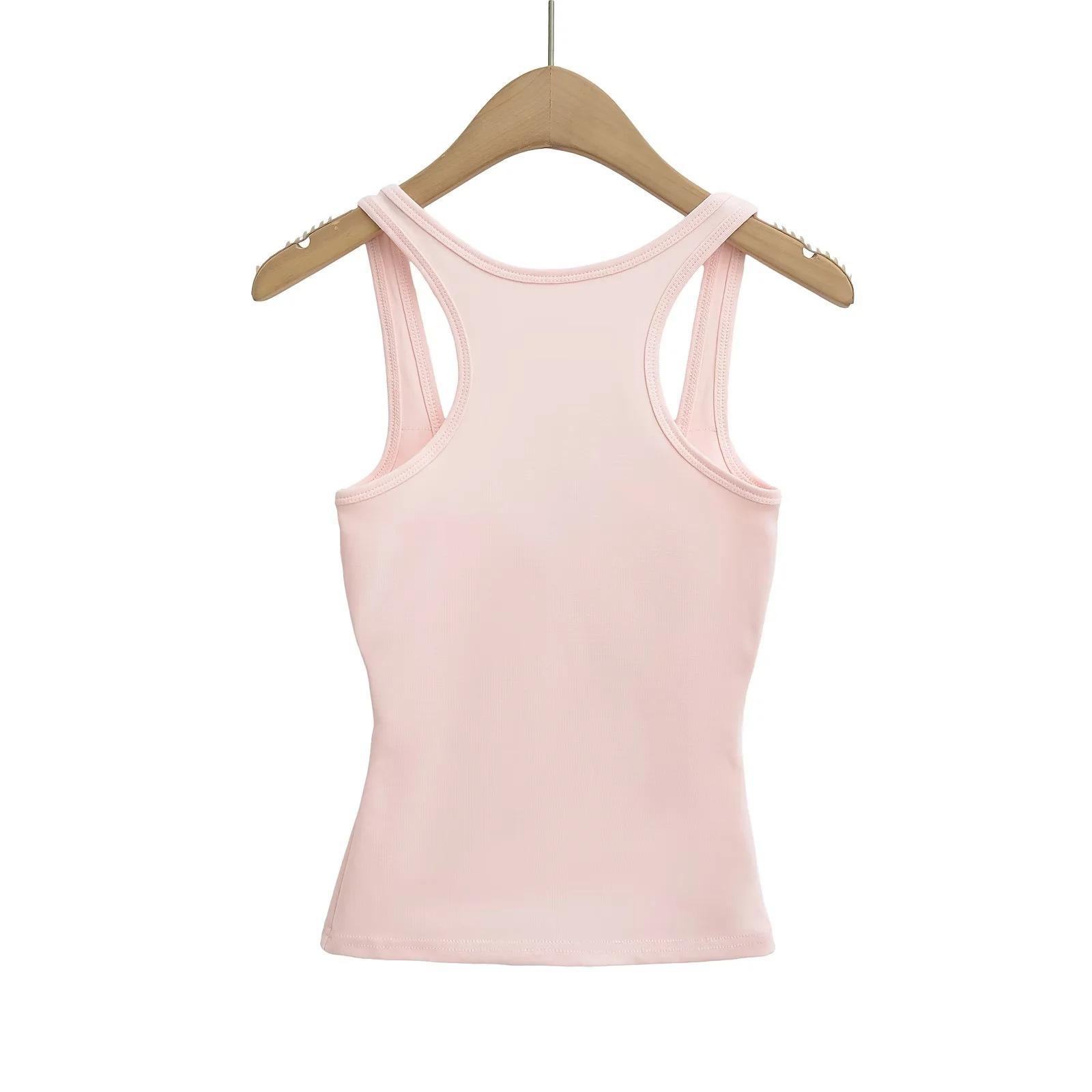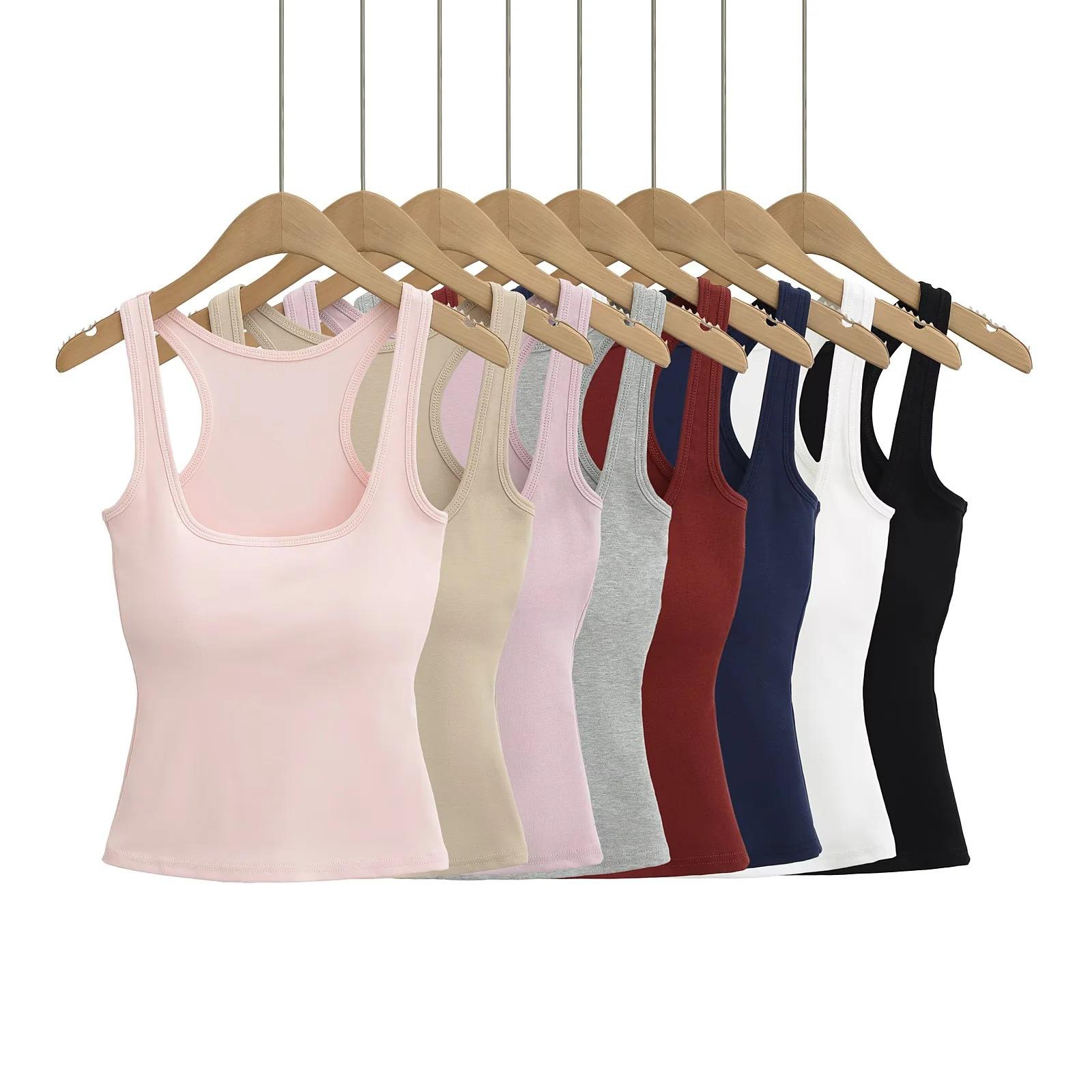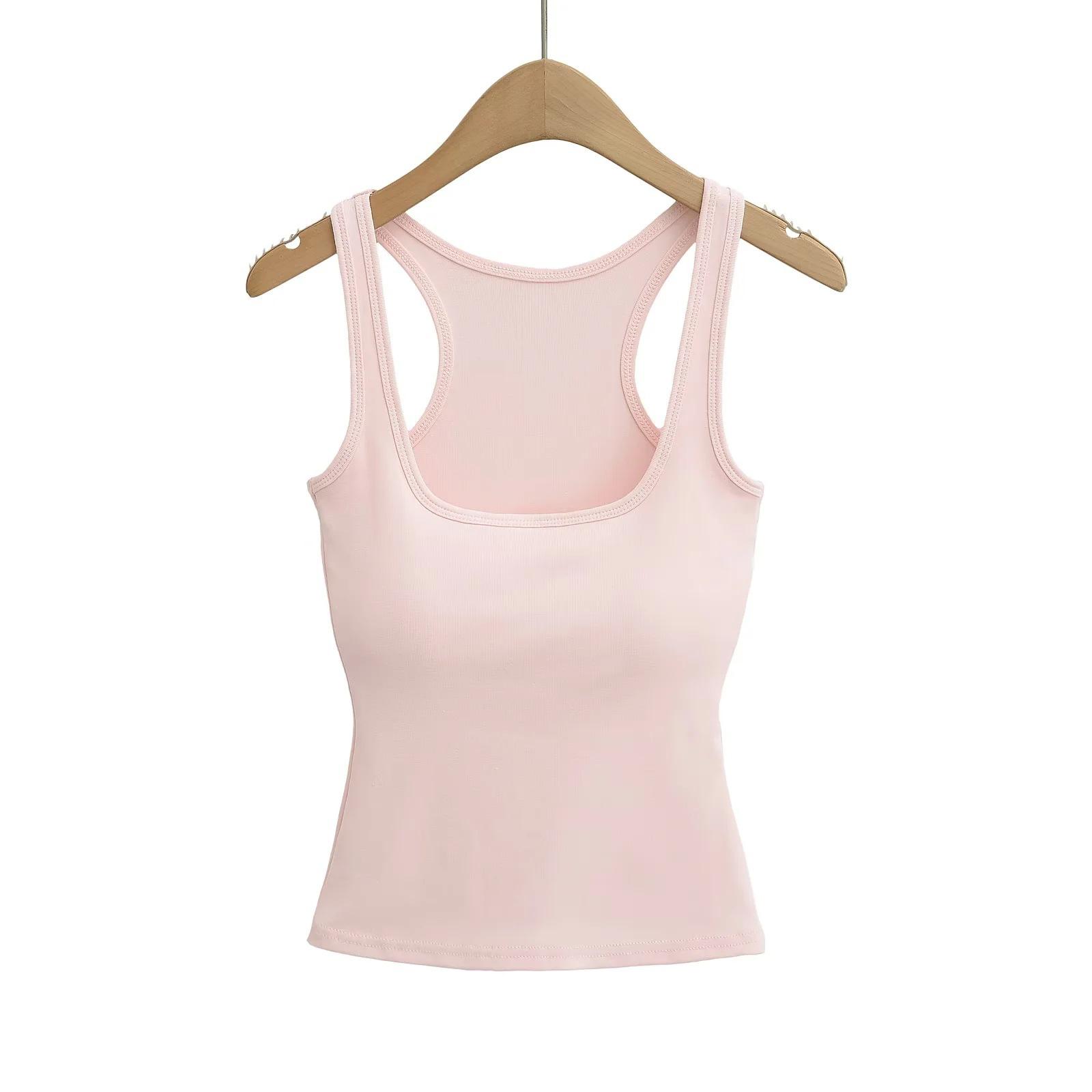 Verano 2025 - Camiseta ajustada elástica sin mangas con espalda hermosa, interior y exterior, cuello cuadrado, combinable, con tirantes y almohadilla para el pecho para mujer