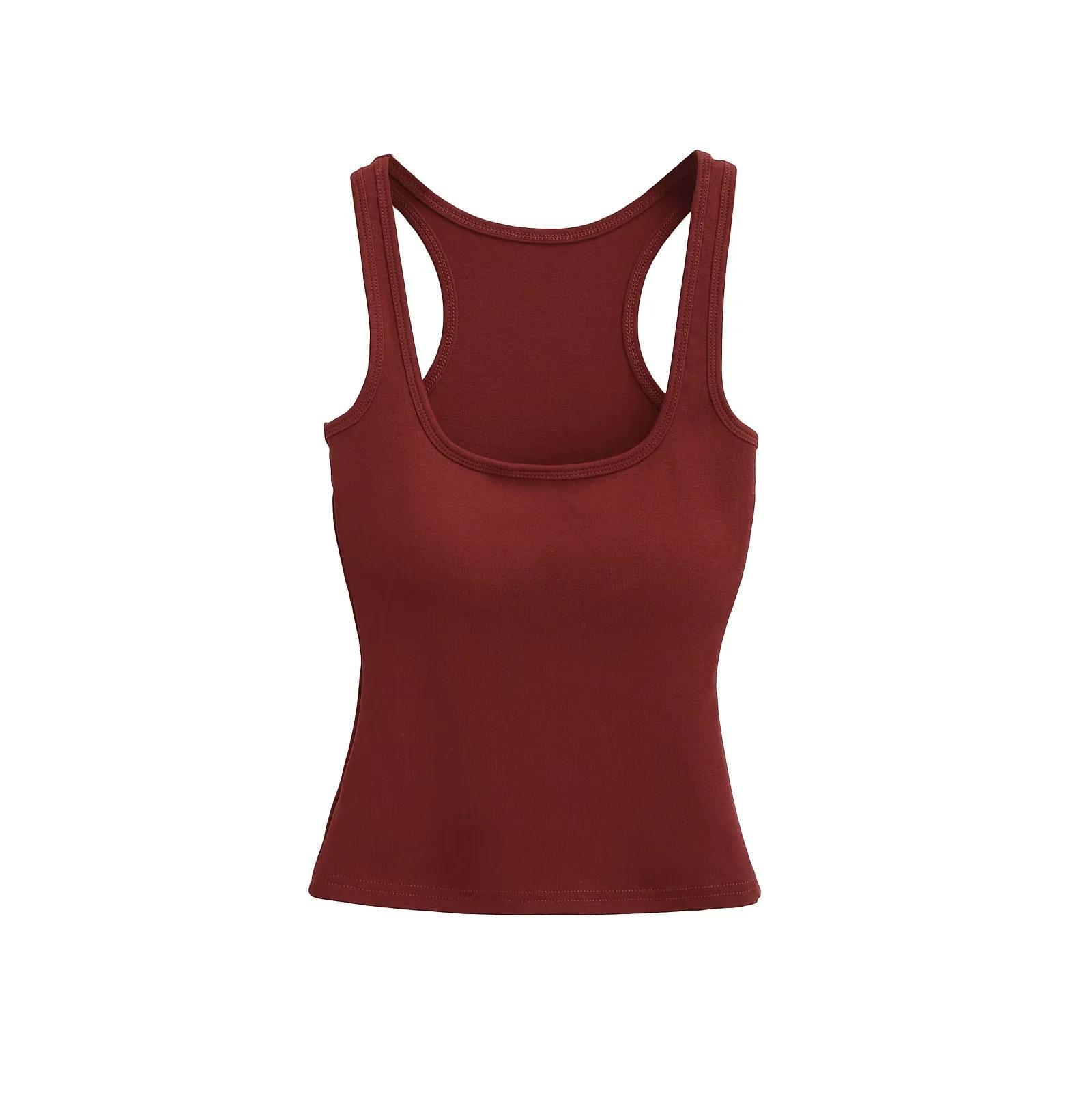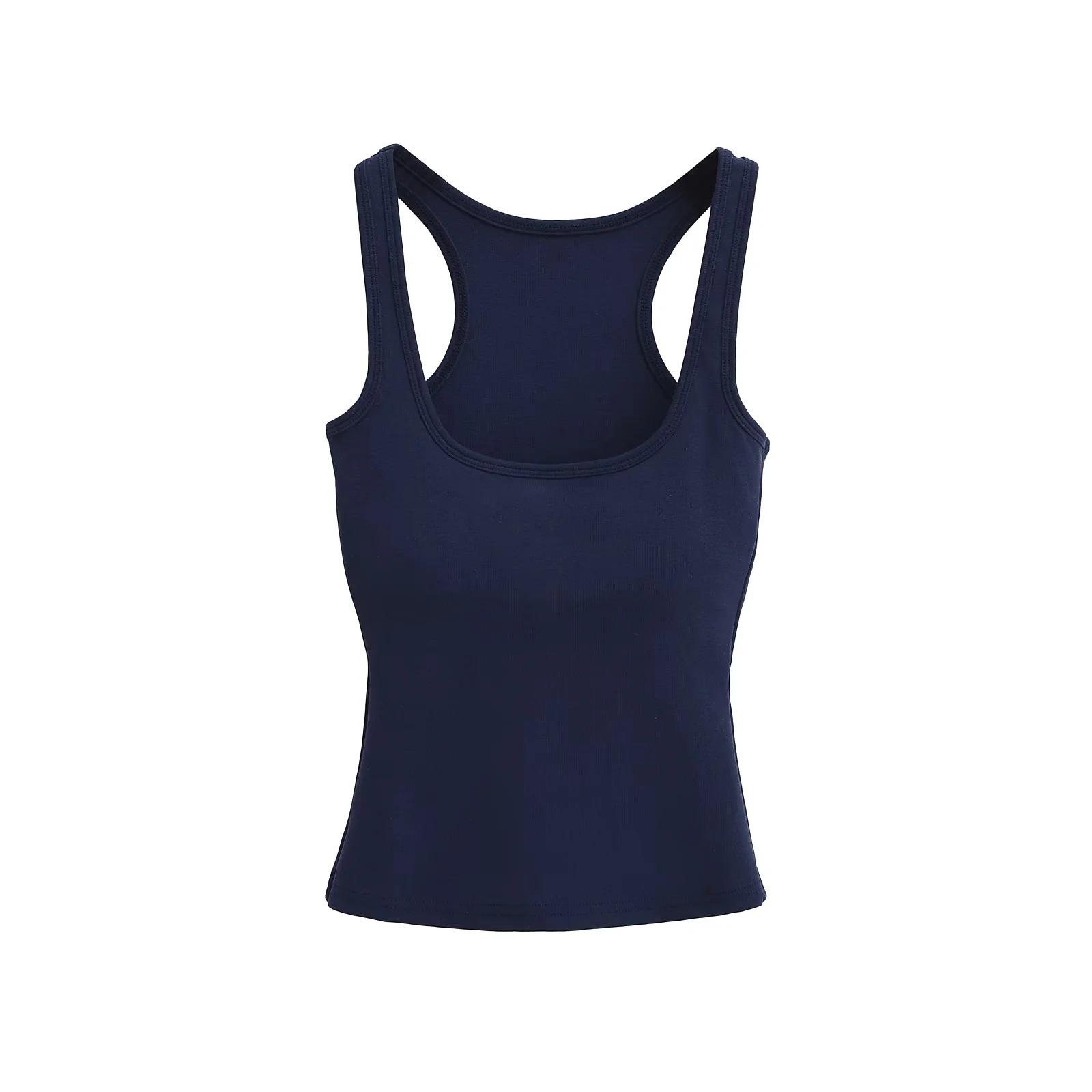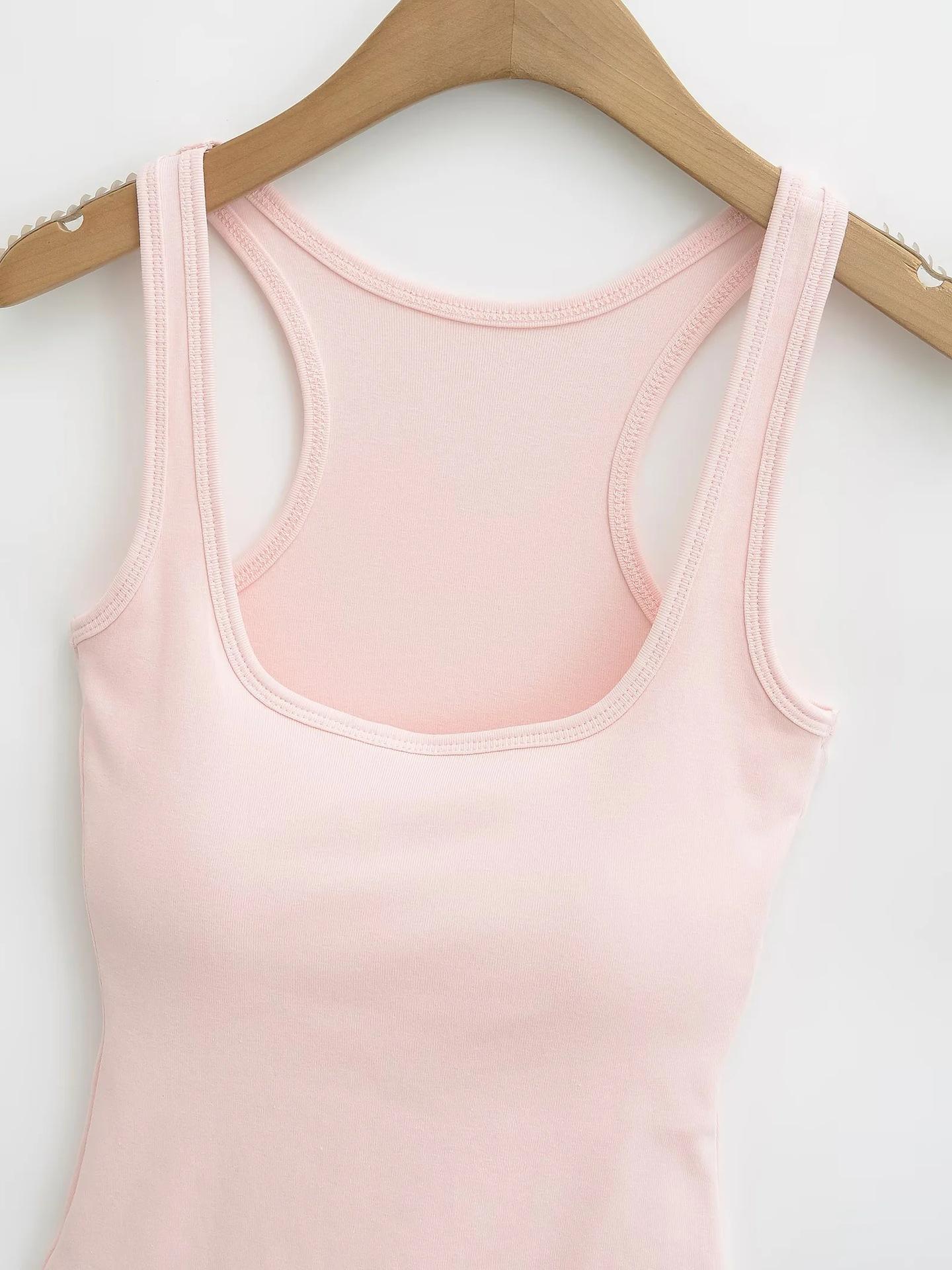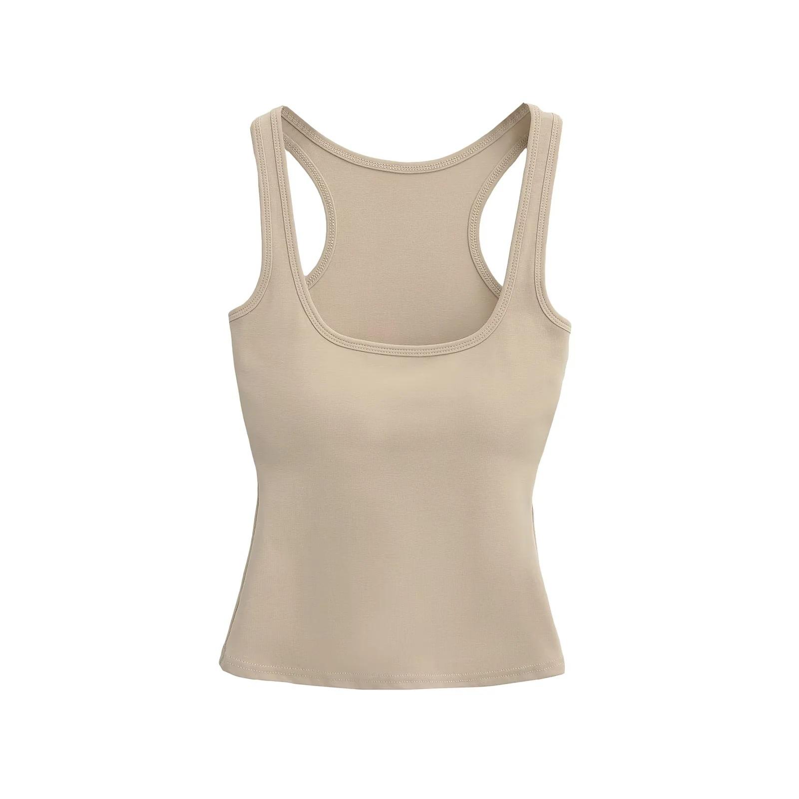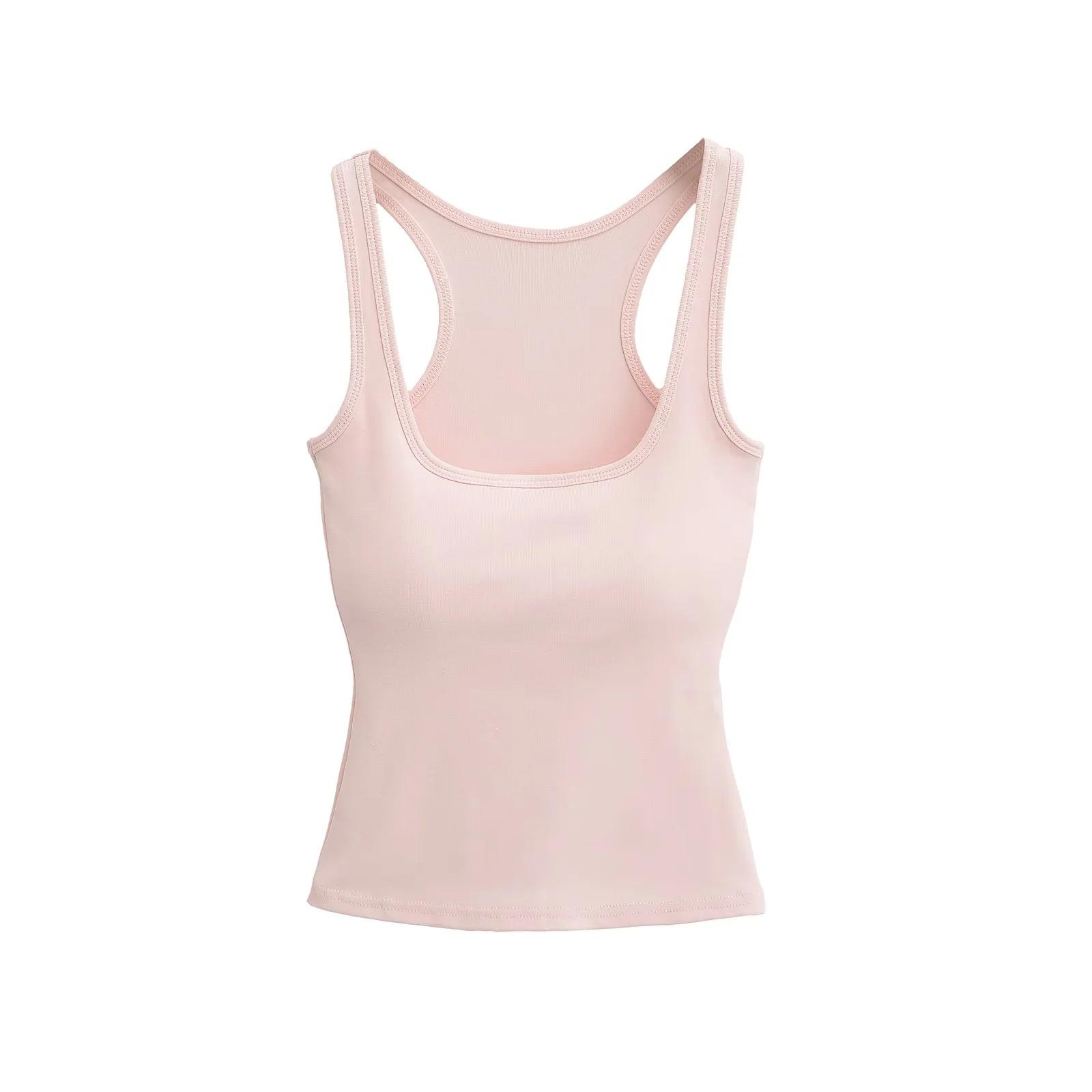 Verano 2025 - Camiseta ajustada elástica sin mangas con espalda hermosa, interior y exterior, cuello cuadrado, combinable, con tirantes y almohadilla para el pecho para mujer