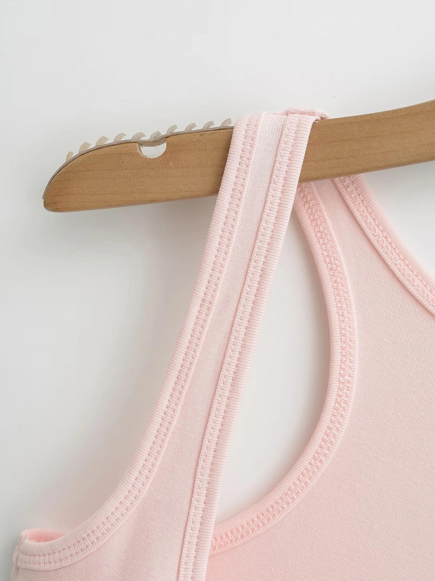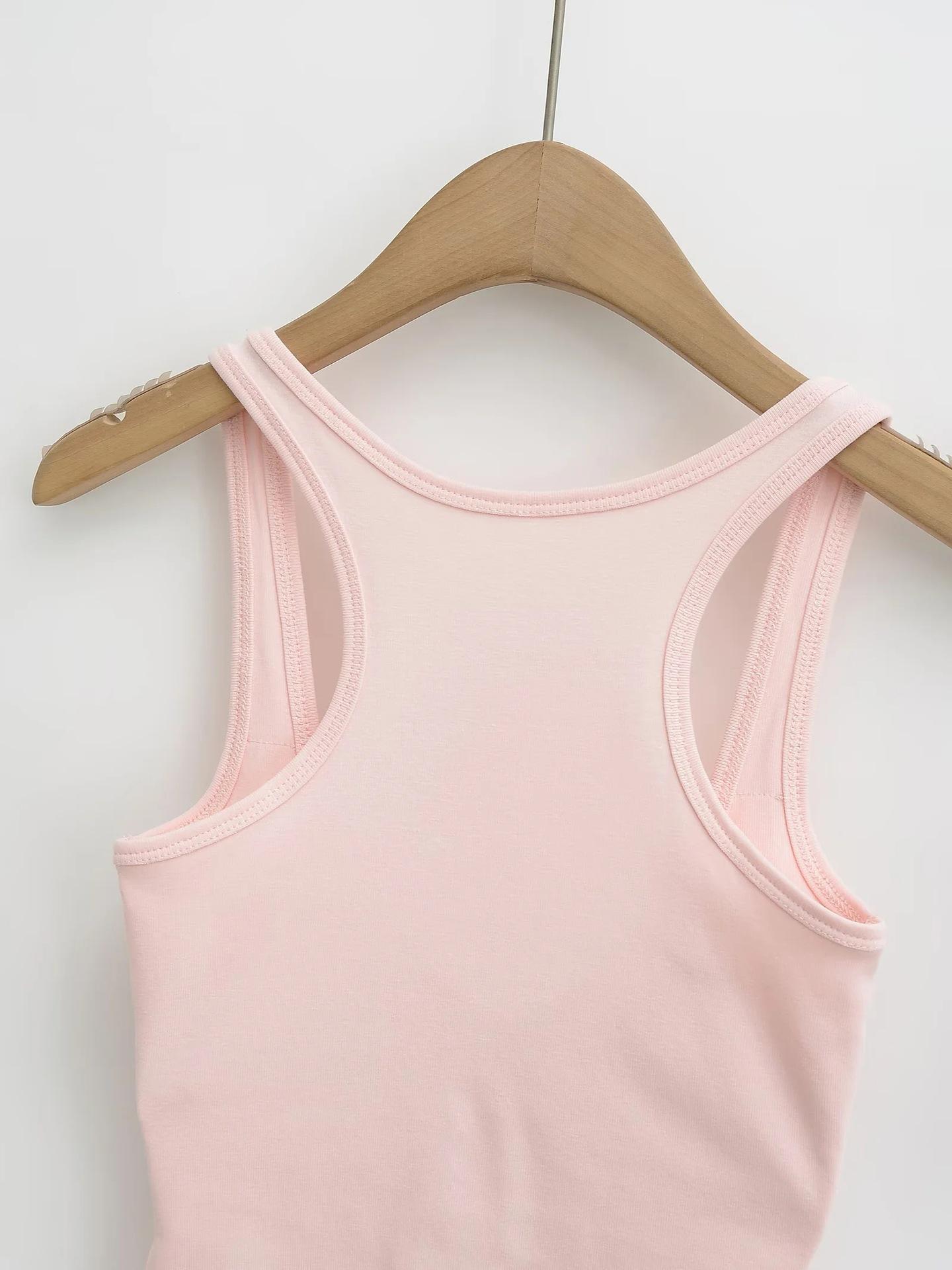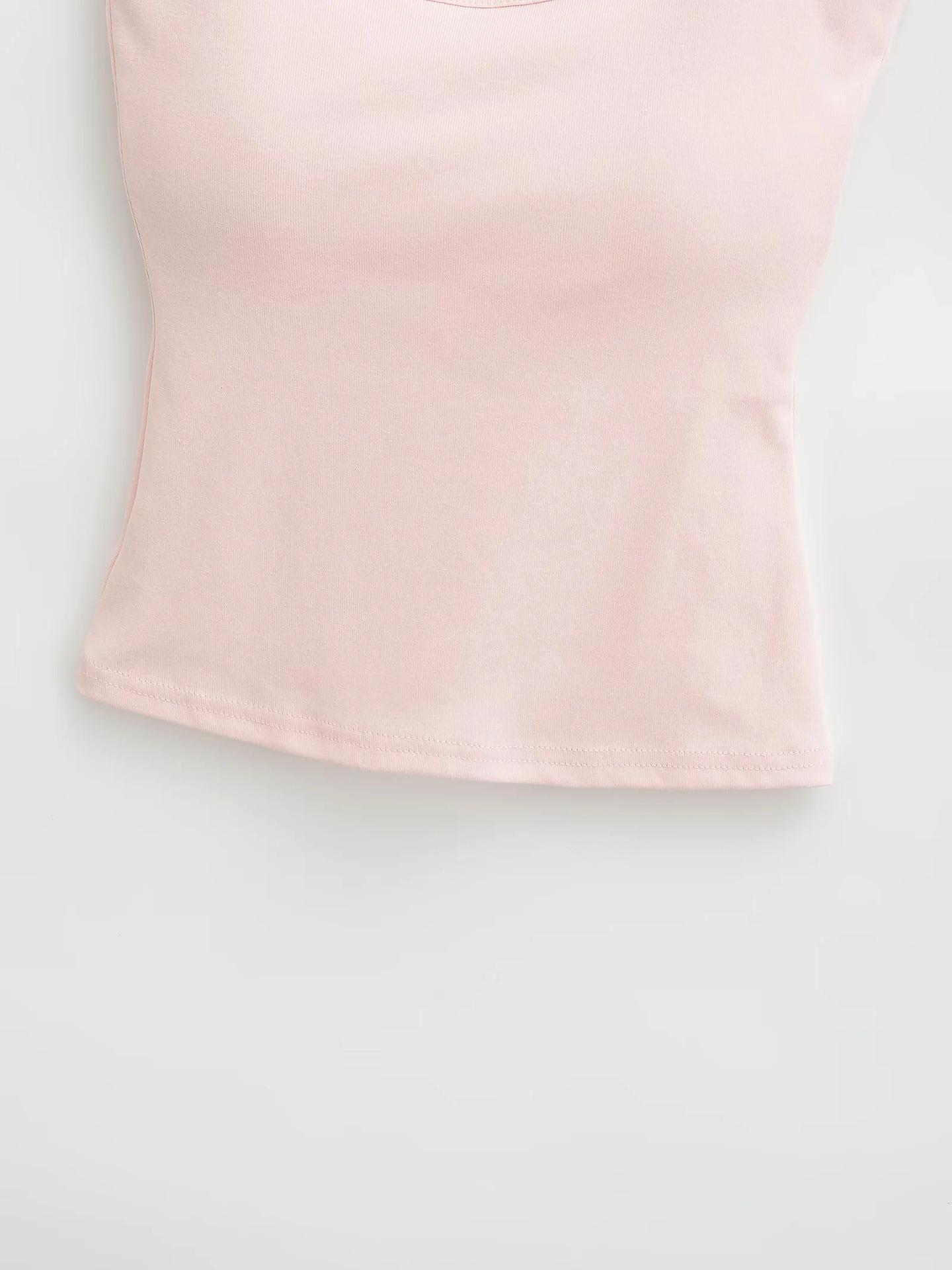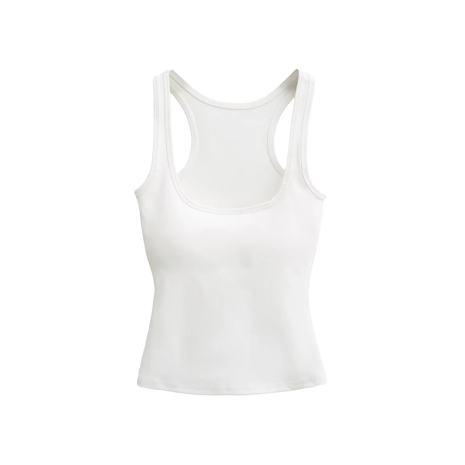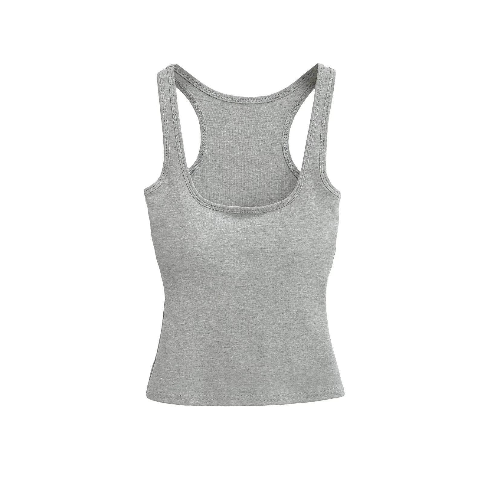 Verano 2025 - Camiseta ajustada elástica sin mangas con espalda hermosa, interior y exterior, cuello cuadrado, combinable, con tirantes y almohadilla para el pecho para mujer