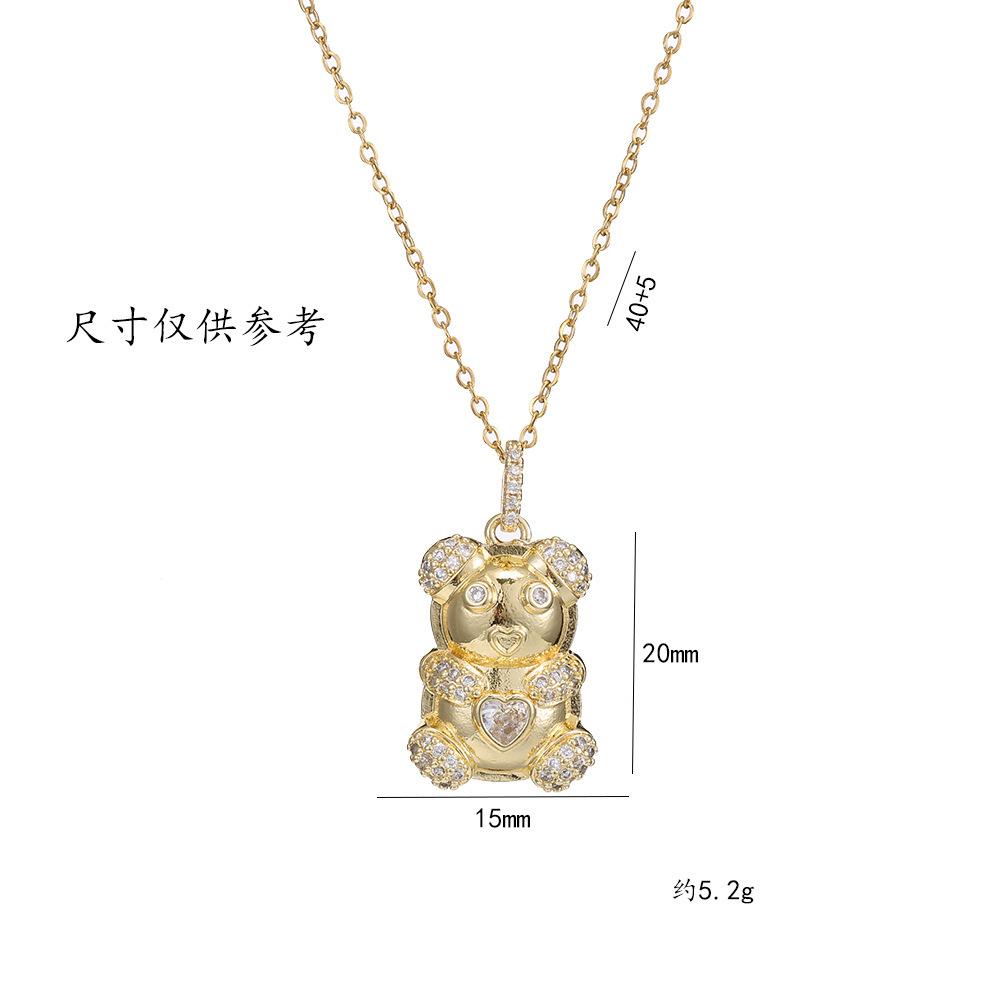 Collar para mujer, nuevo diseño de oso retro con incrustaciones de circonitas, colgante con microincrustaciones, temperamento romántico, collar de acero y titanio.