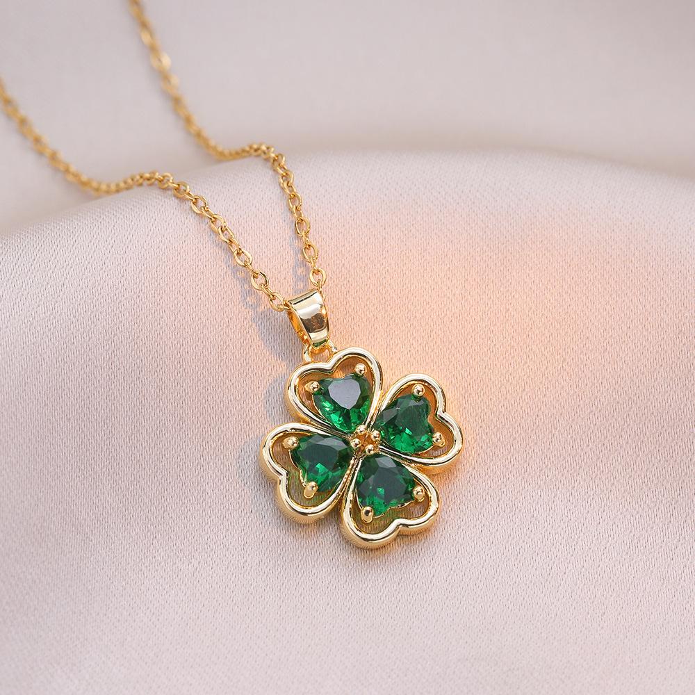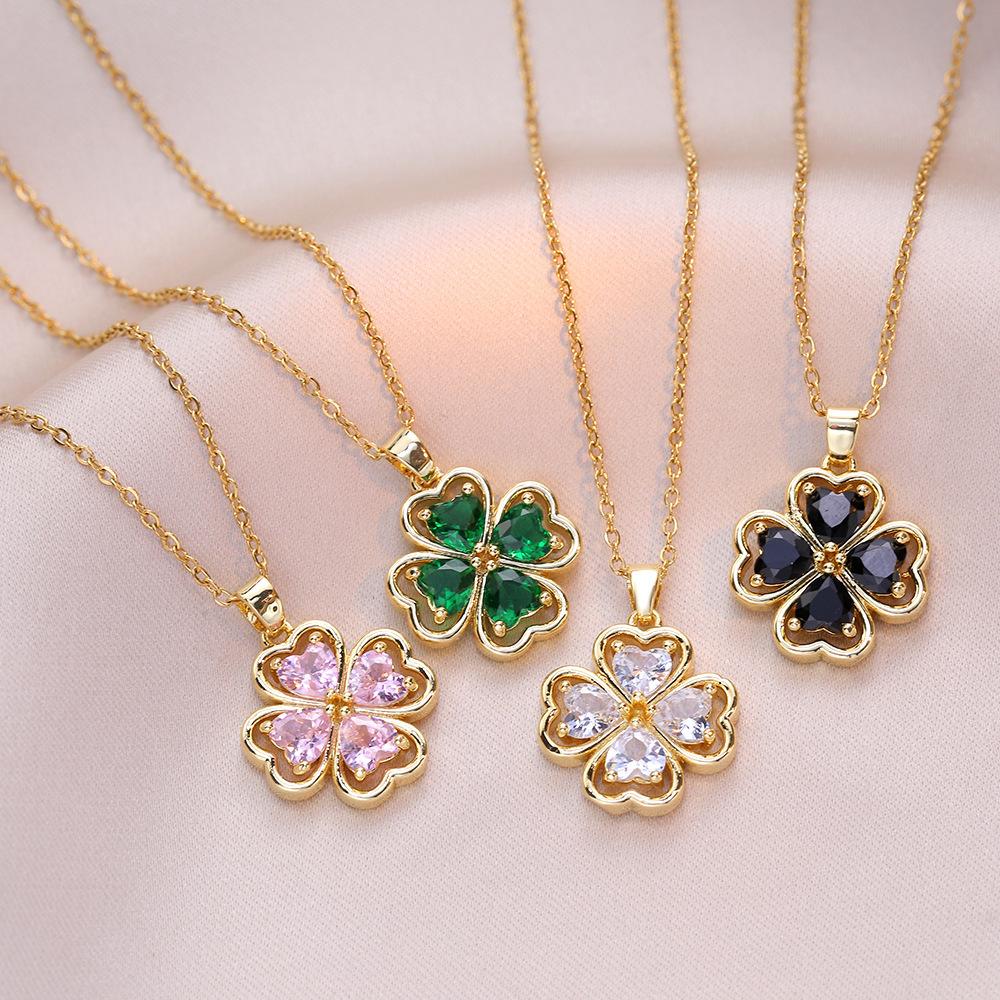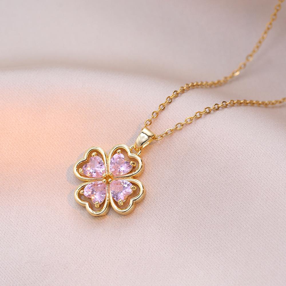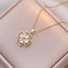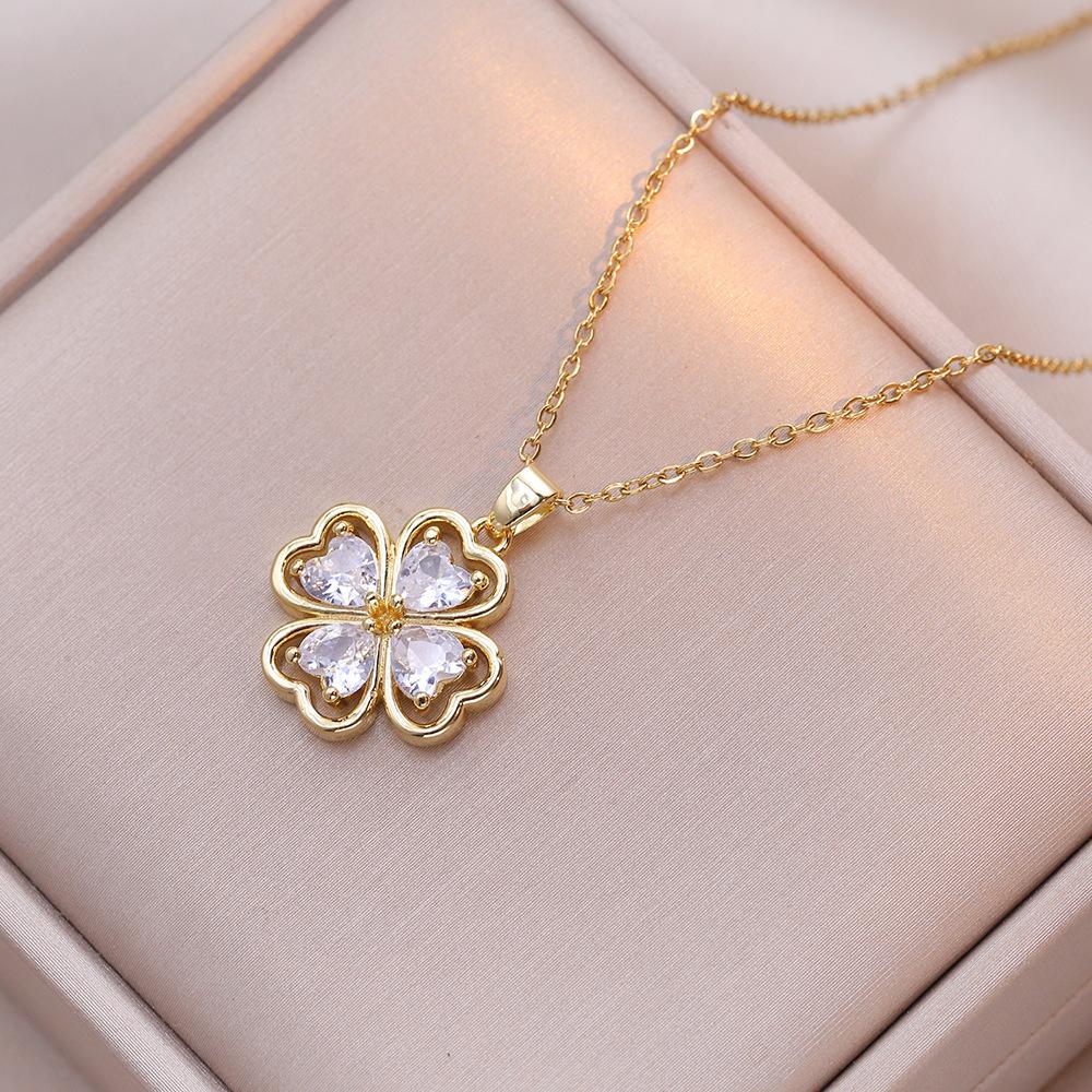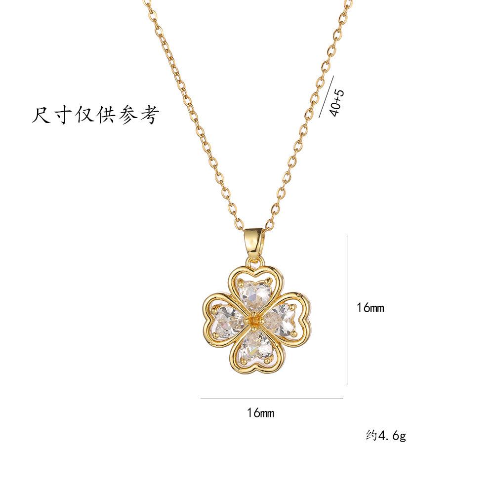 Collar para mujer, estilo japonés-coreano, con colgante de flor de cuatro hojas y circonitas, cadena de clavícula de moda, elegante y sencillo.