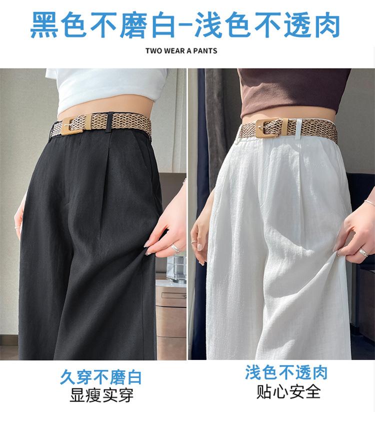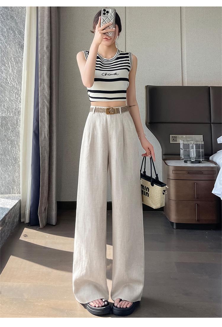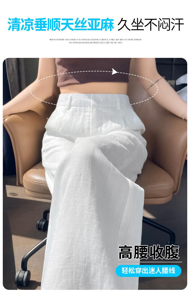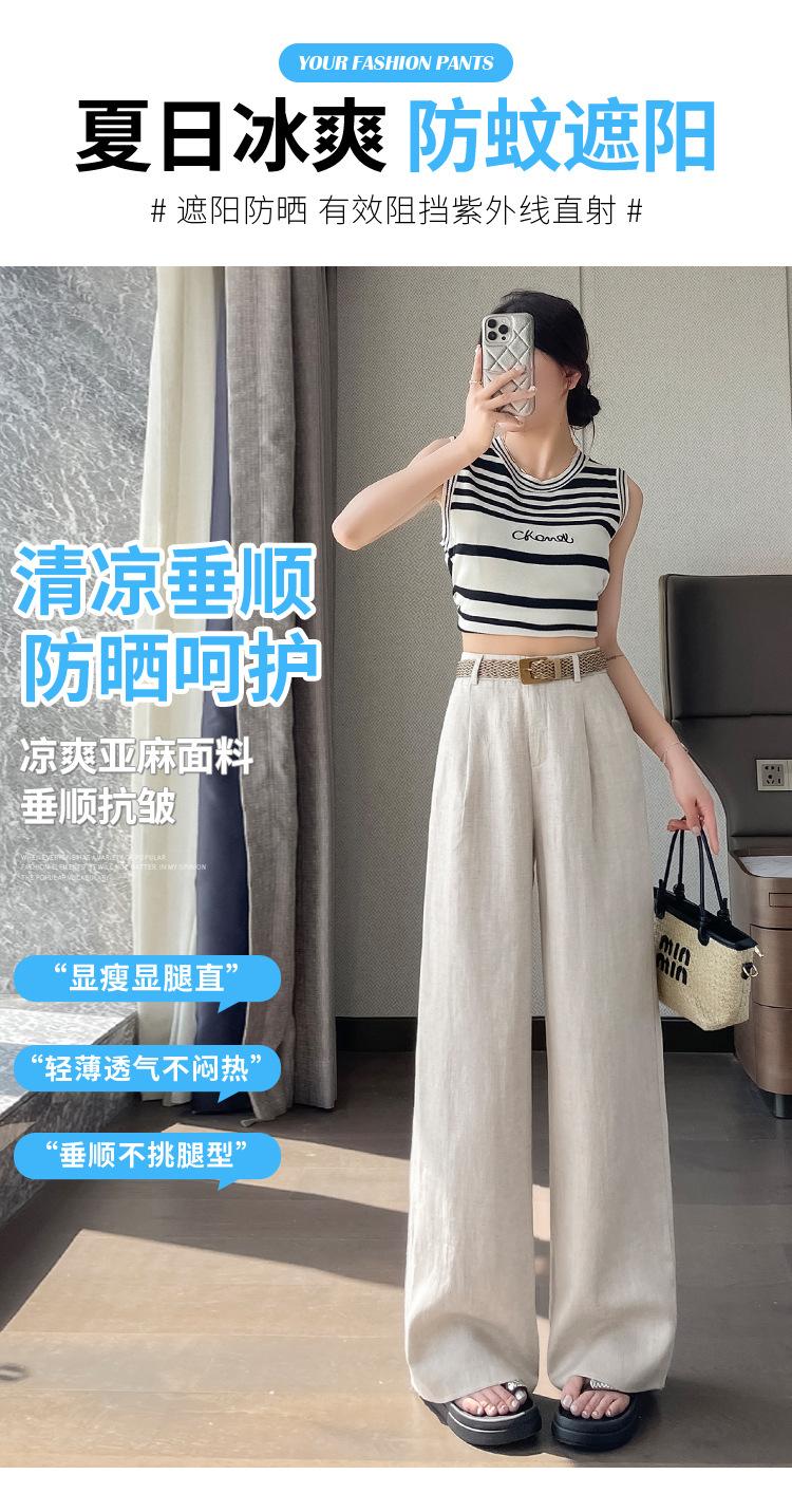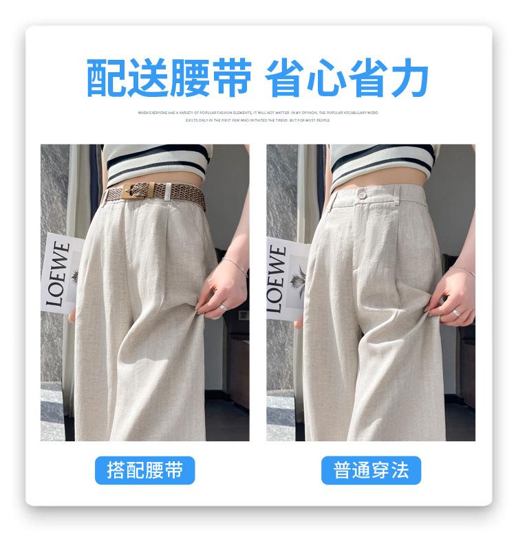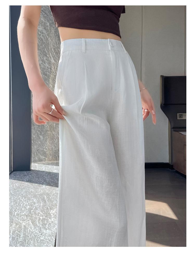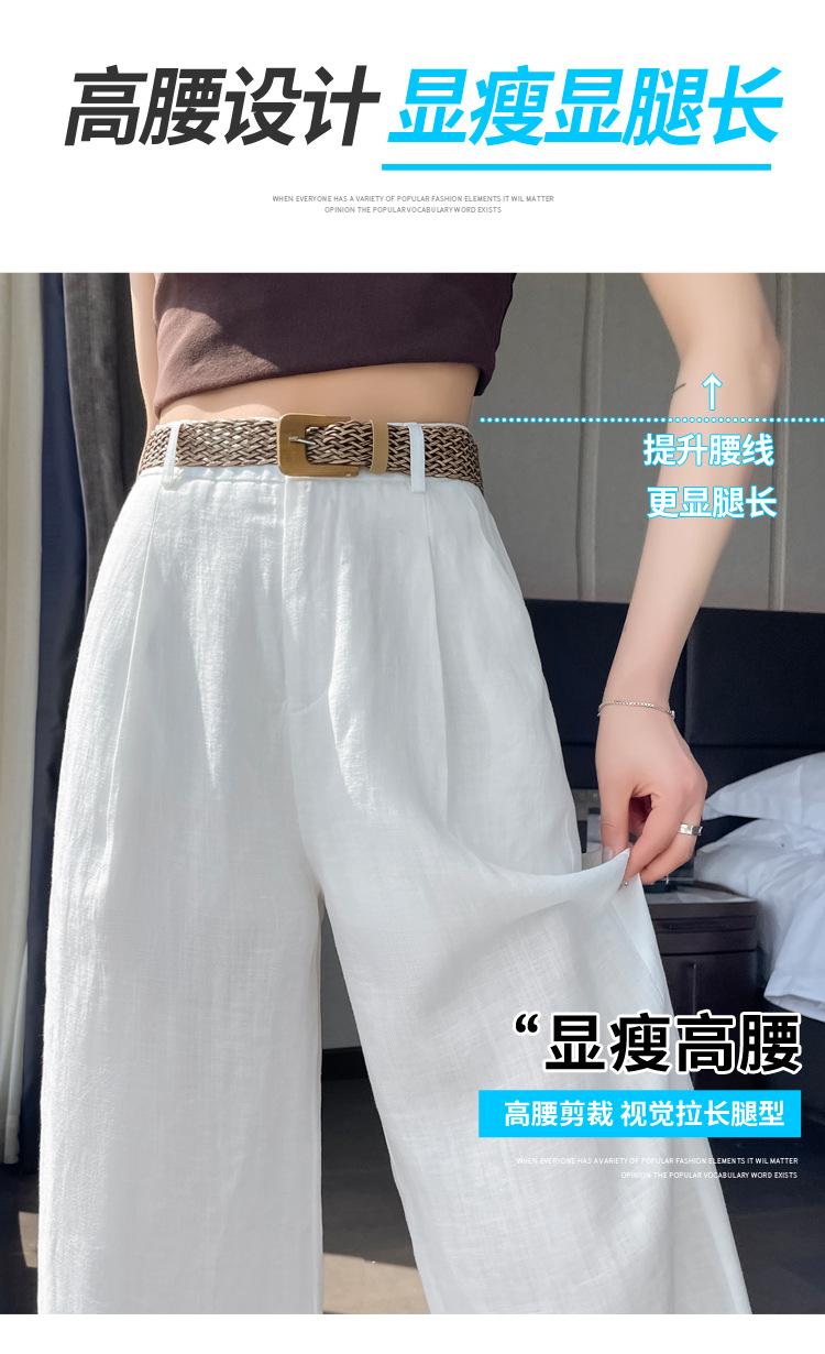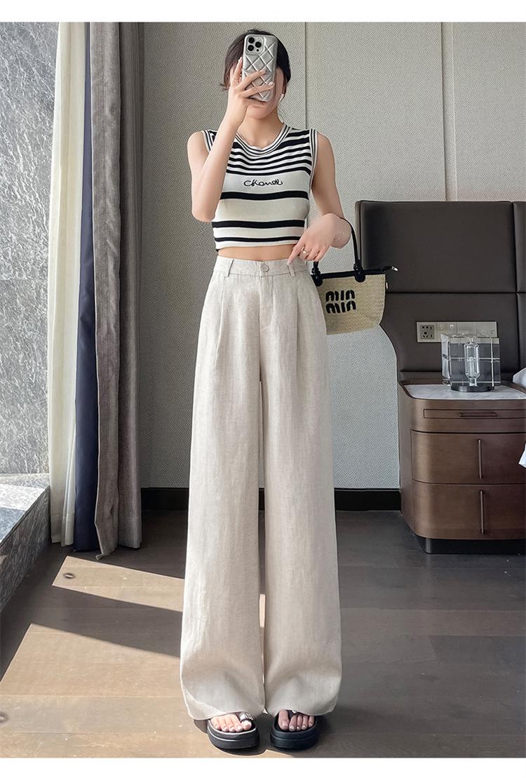 2025 Verano Nuevo Suelto Casual Lino Pantalones de Pierna Ancha Transpirables Combinan con Todo Rectos Cintura Alta Algodón Lino Pantalones Casuales de Mujer a la Moda