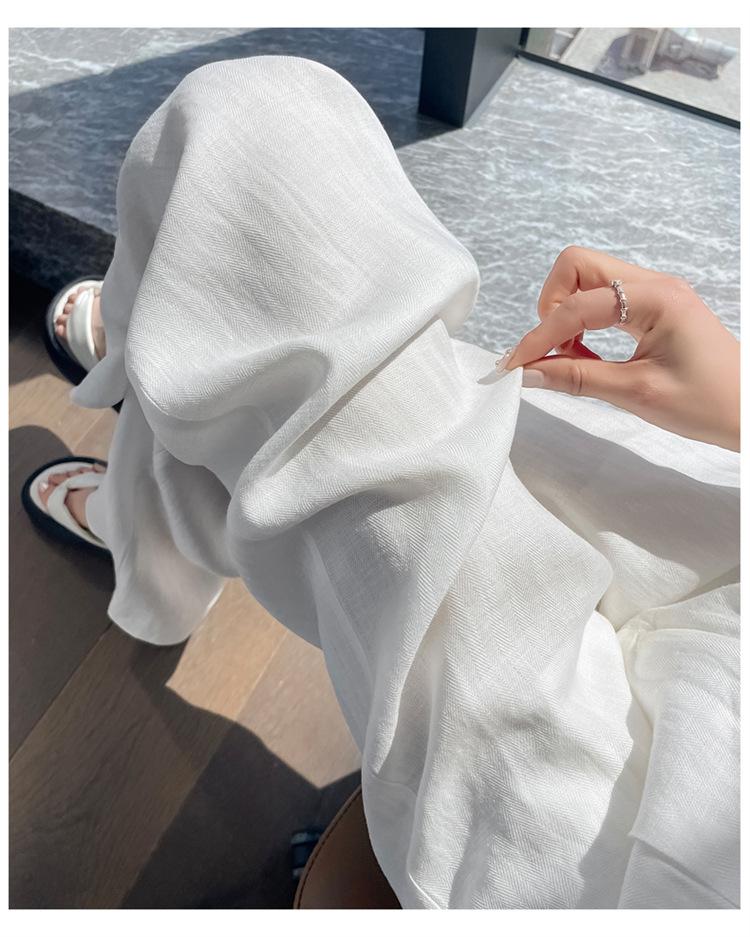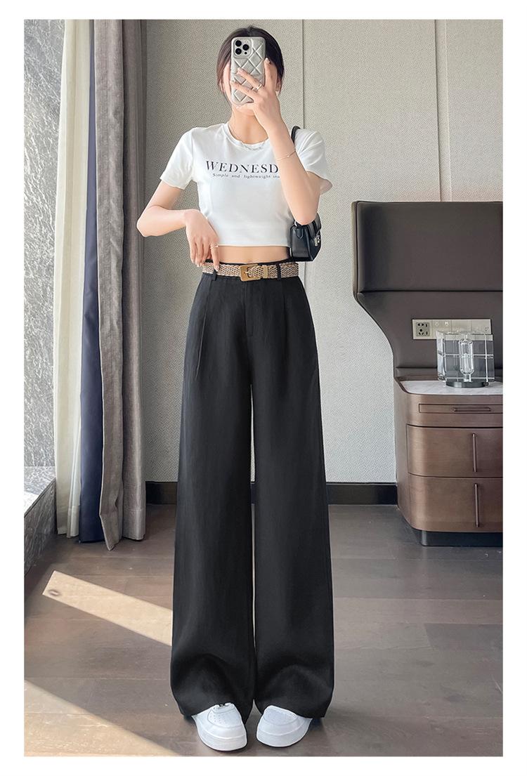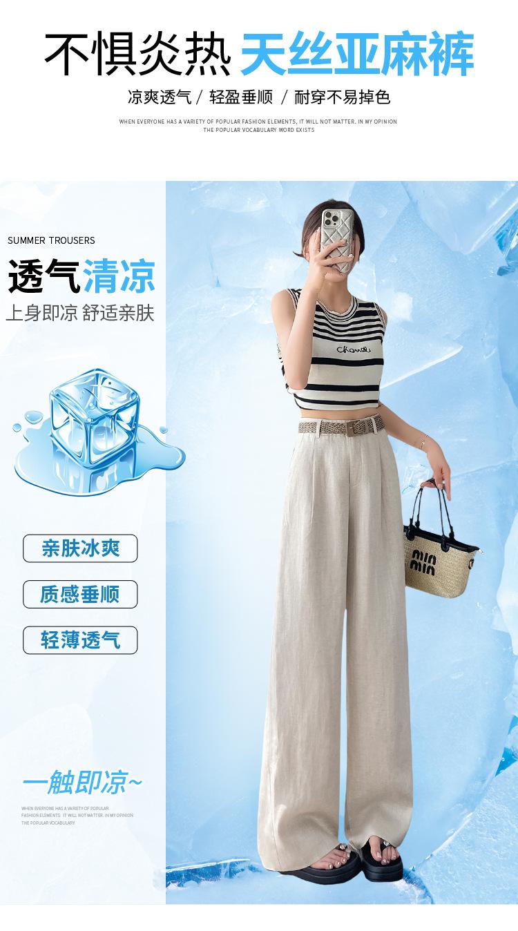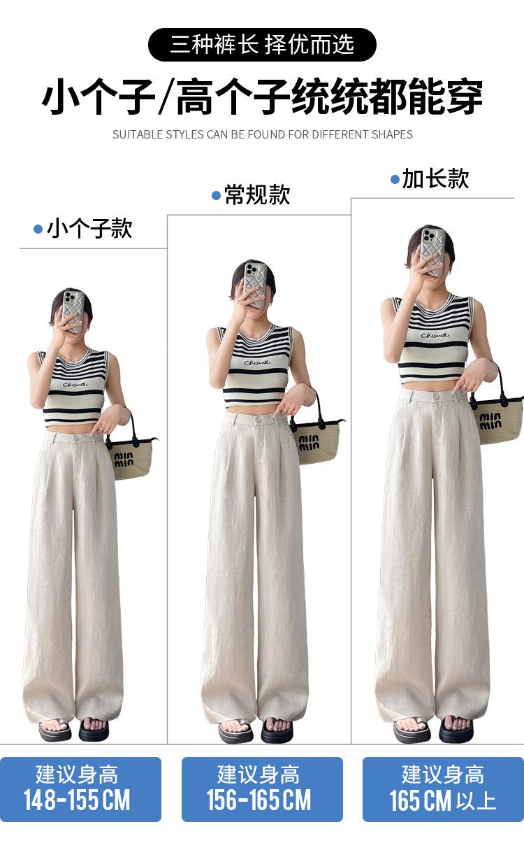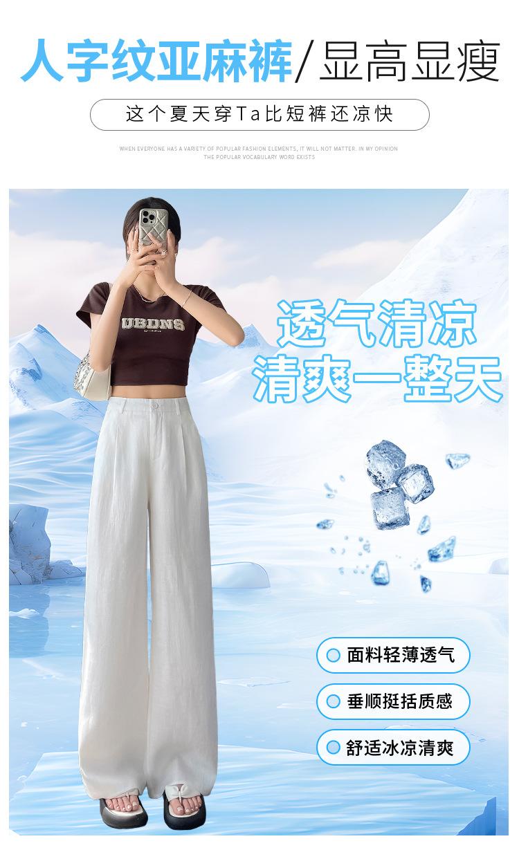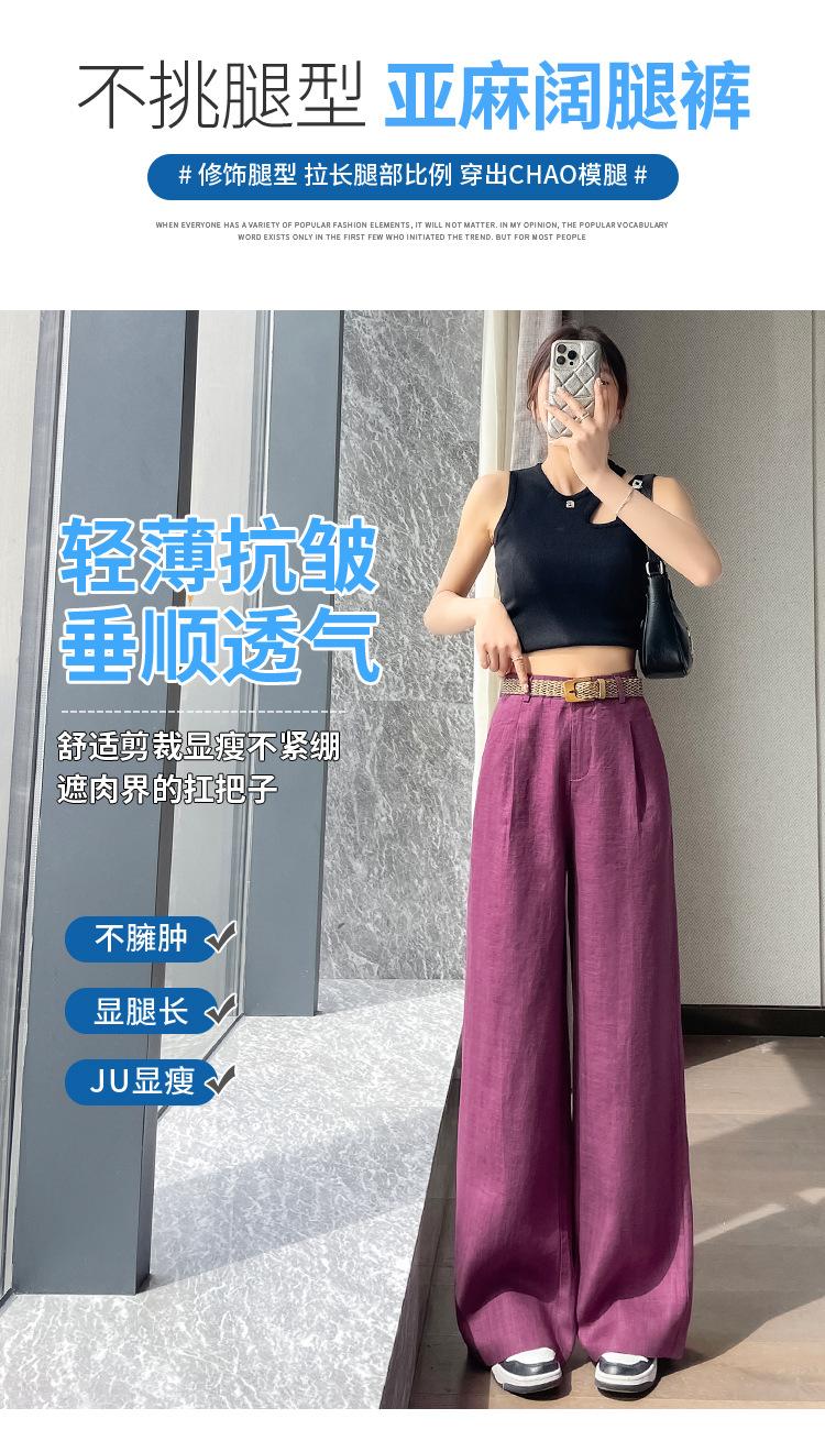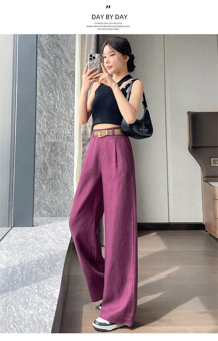 2025 Verano Nuevo Suelto Casual Lino Pantalones de Pierna Ancha Transpirables Combinan con Todo Rectos Cintura Alta Algodón Lino Pantalones Casuales de Mujer a la Moda