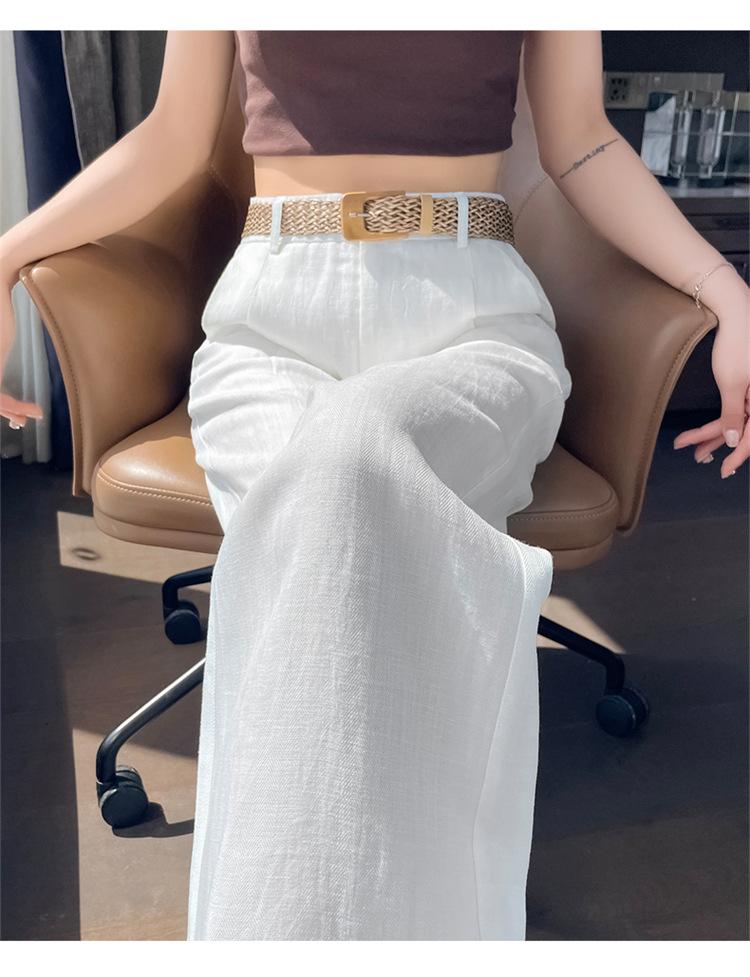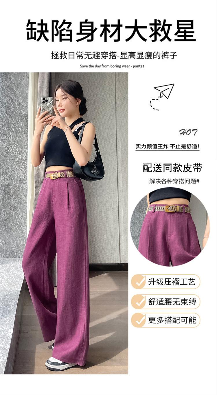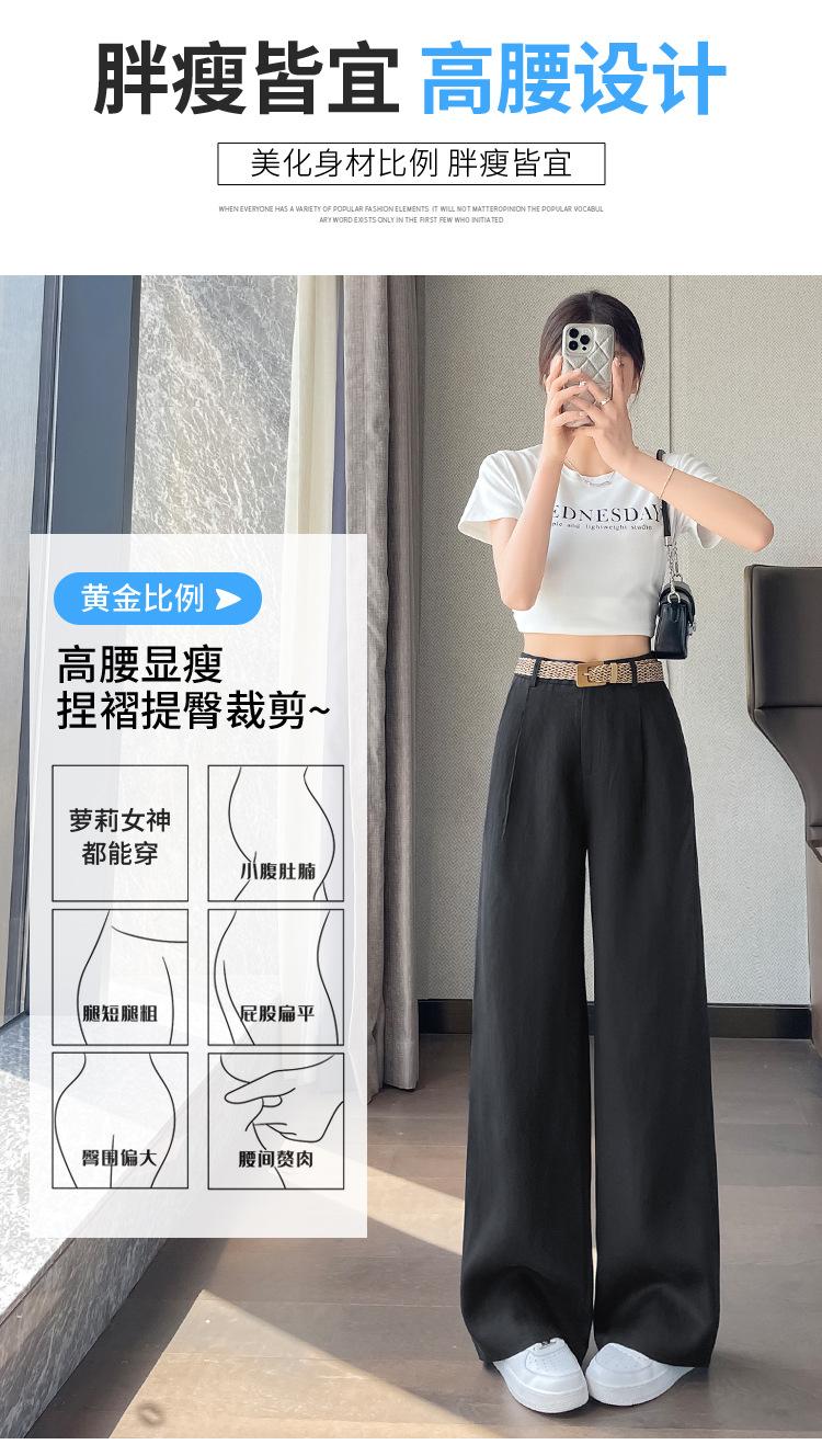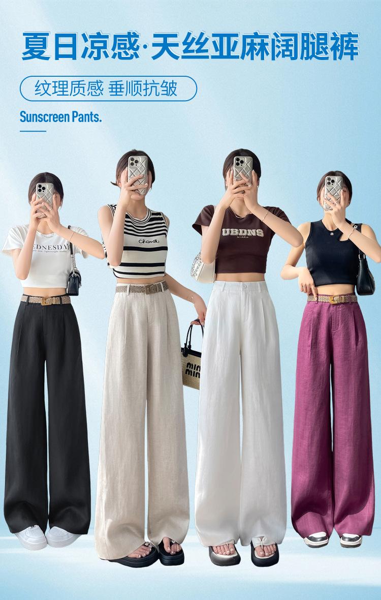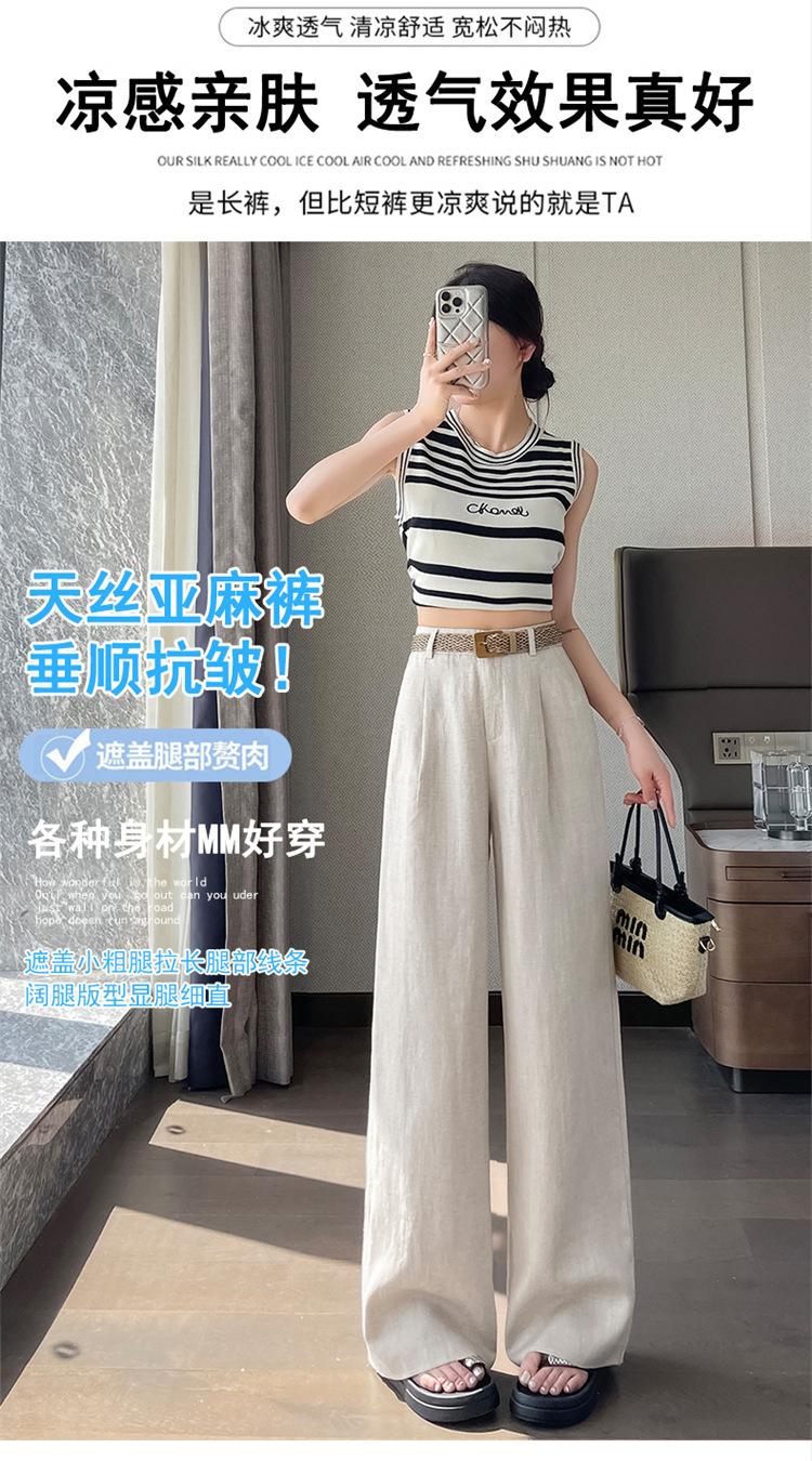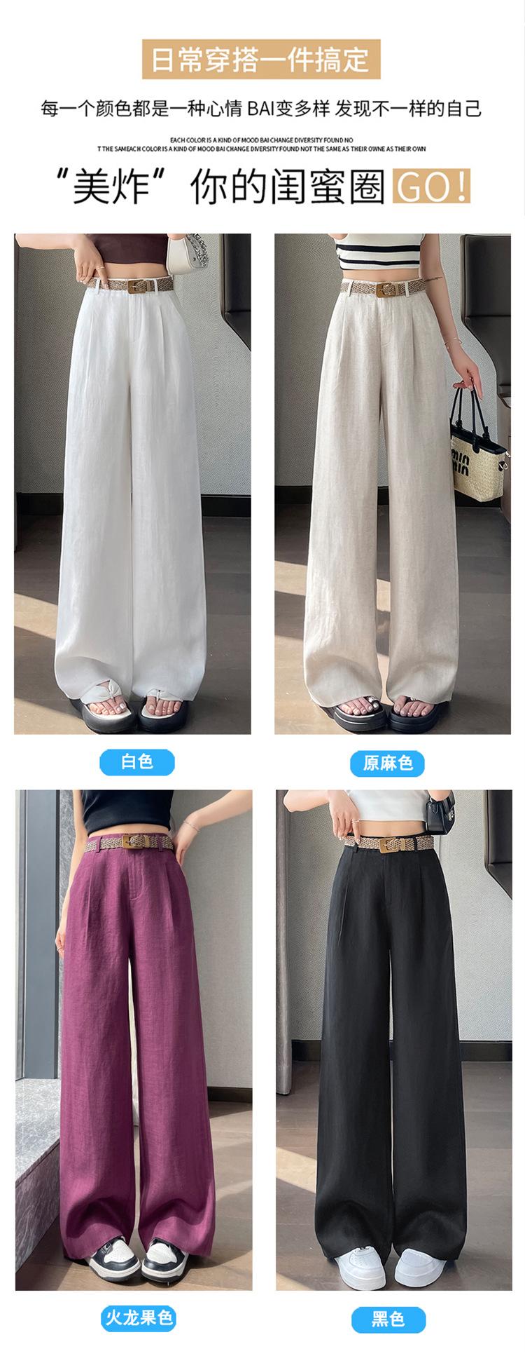 2025 Verano Nuevo Suelto Casual Lino Pantalones de Pierna Ancha Transpirables Combinan con Todo Rectos Cintura Alta Algodón Lino Pantalones Casuales de Mujer a la Moda