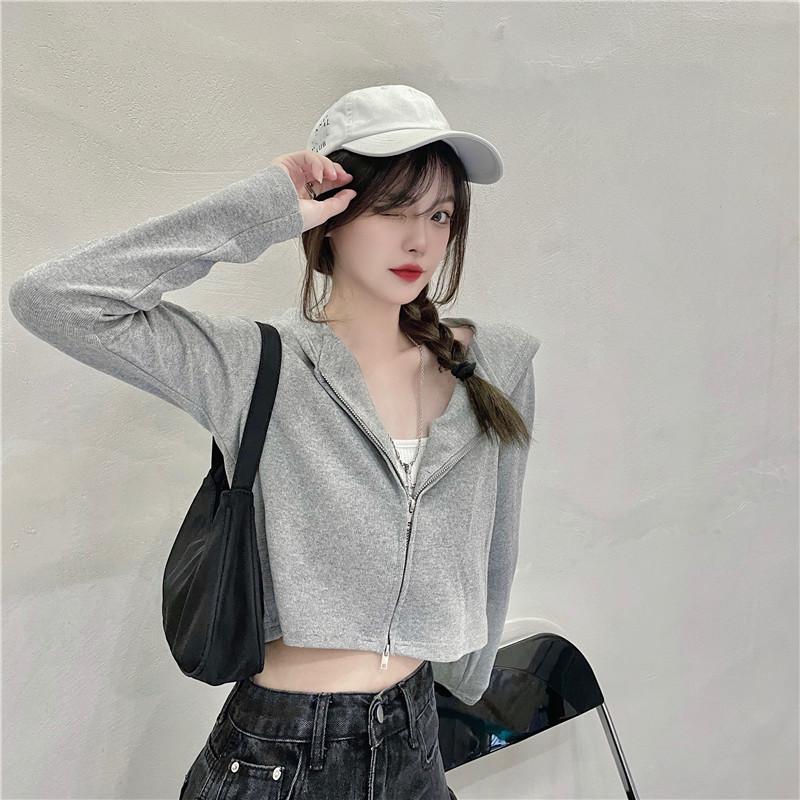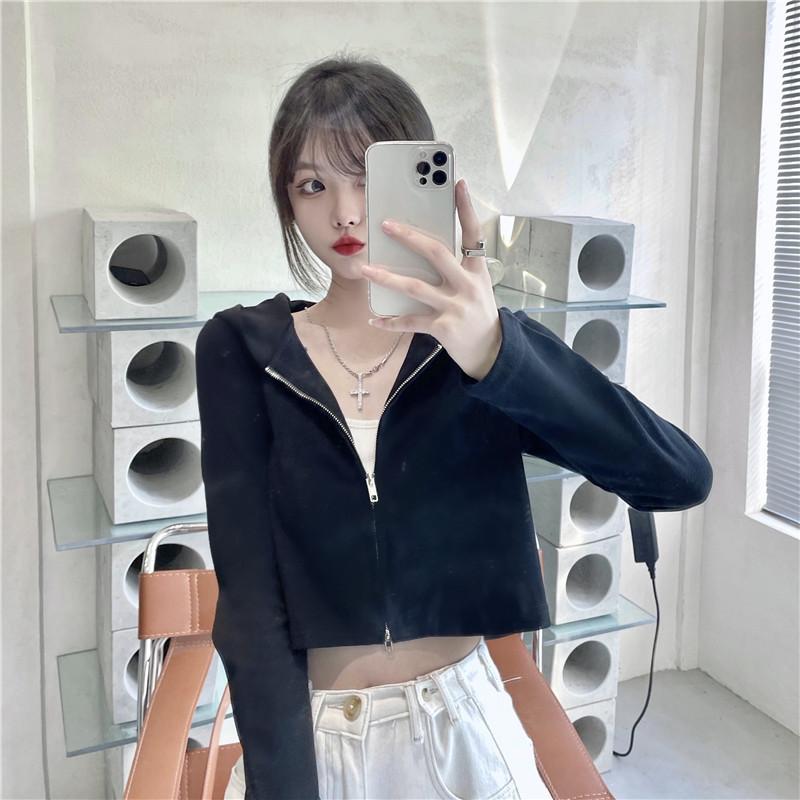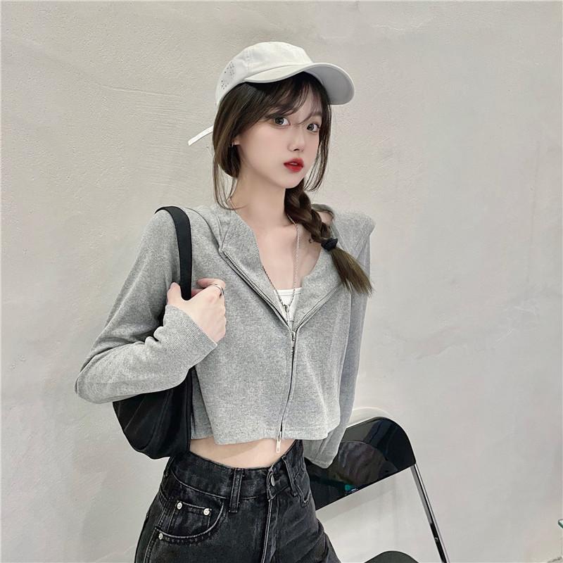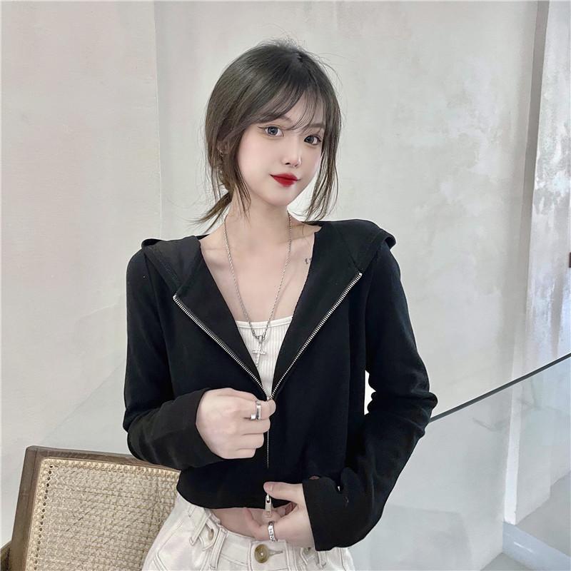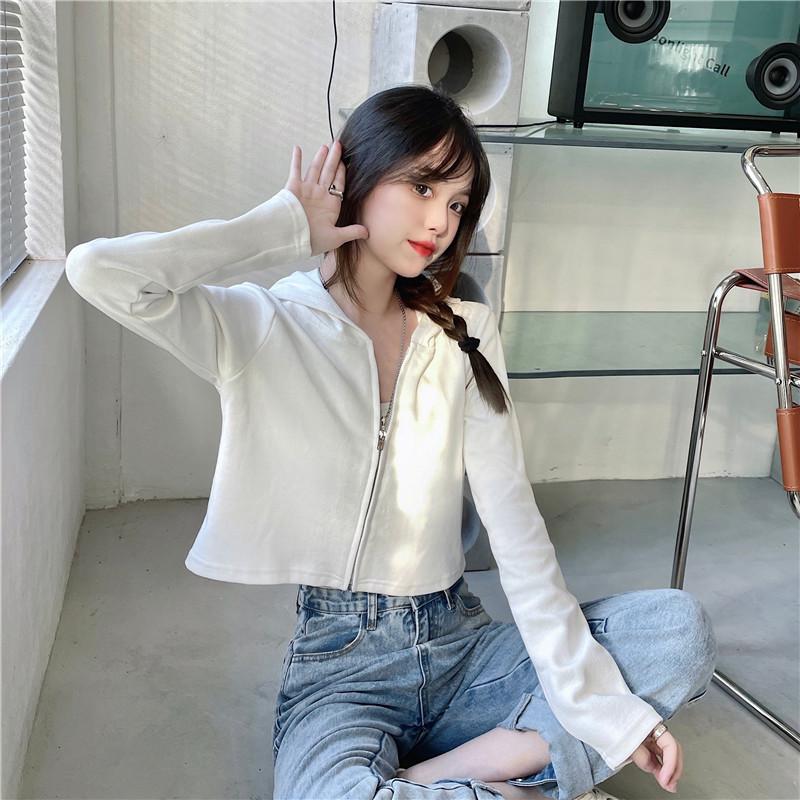 Sudadera con capucha y cremallera de manga larga para mujer, chaqueta corta holgada coreana para estudiantes, otoño e invierno de 2024