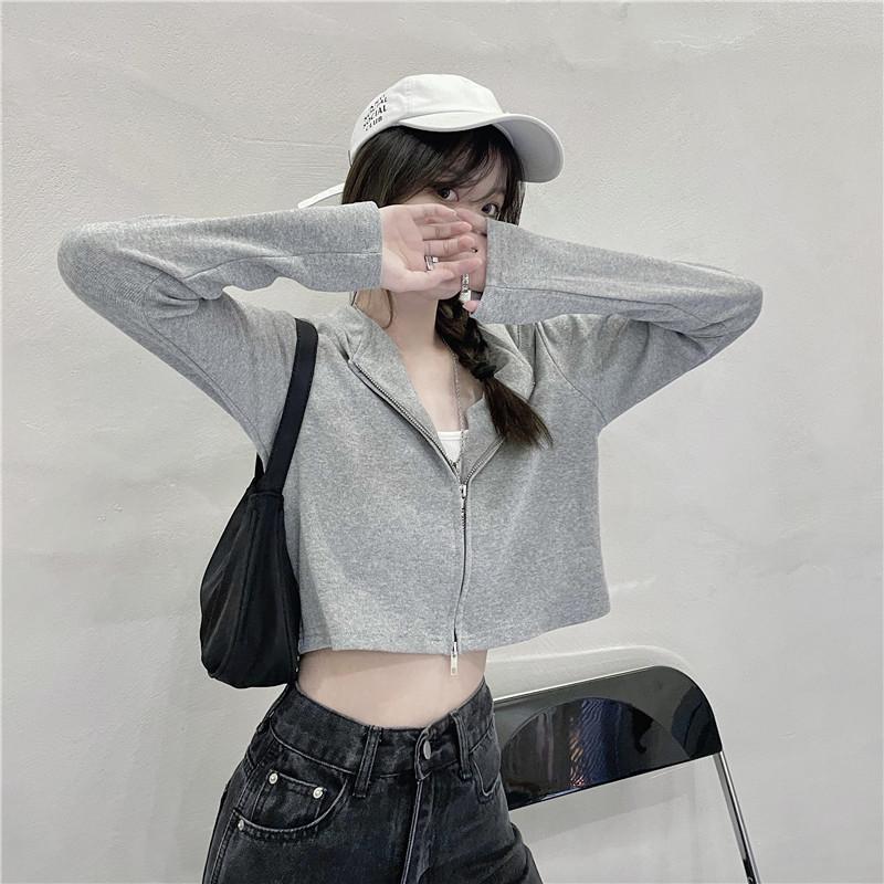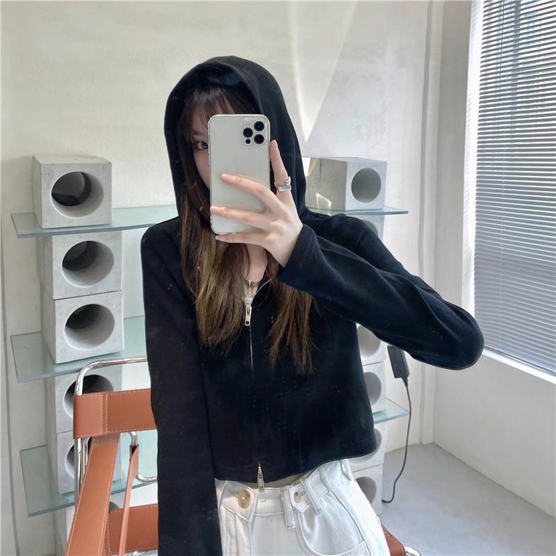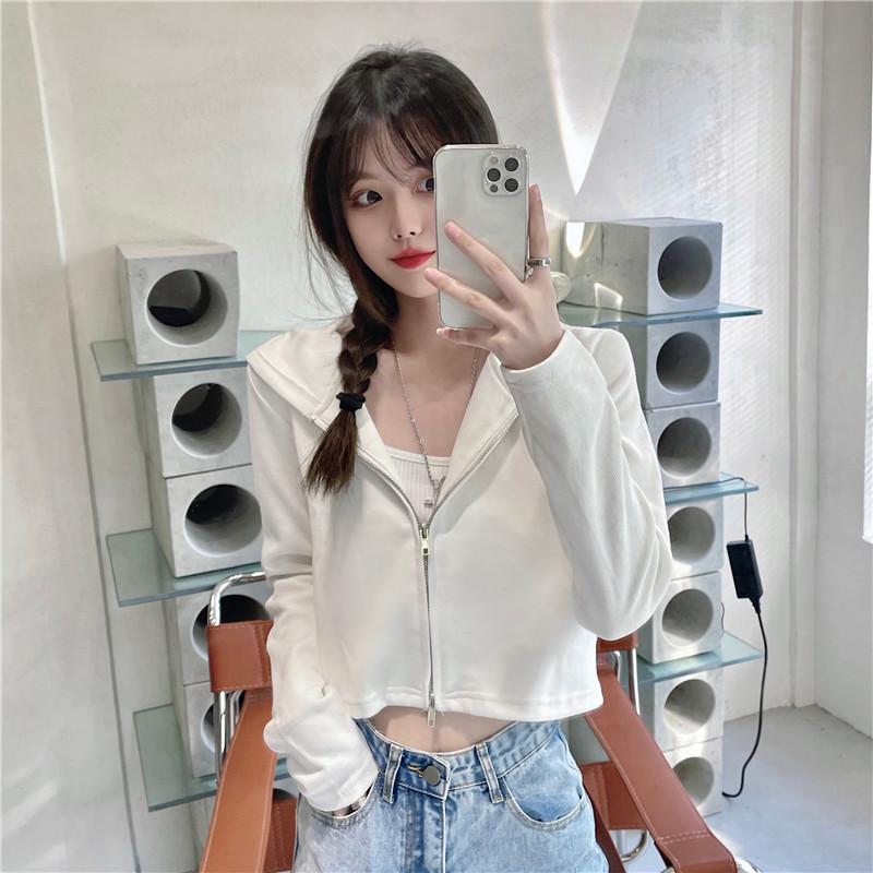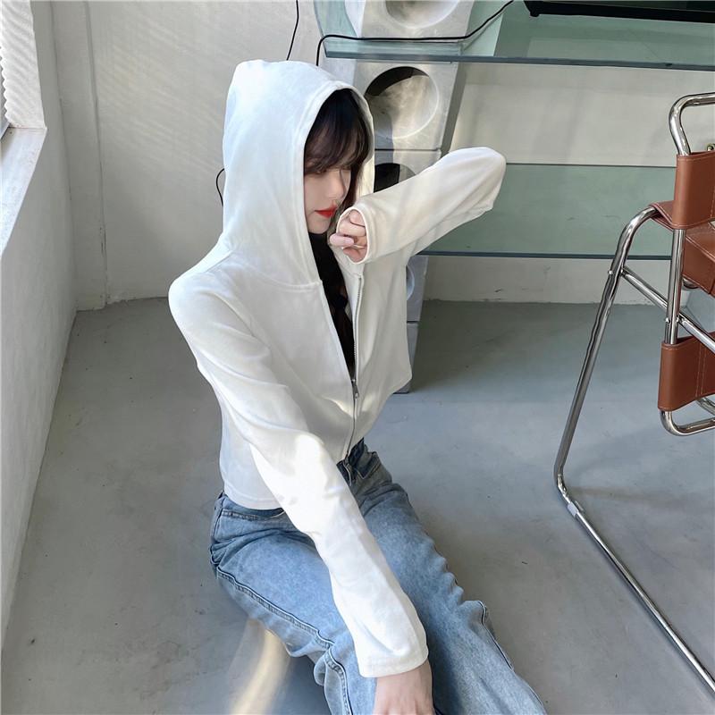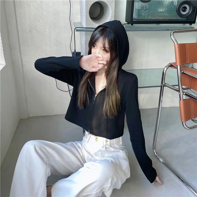 Sudadera con capucha y cremallera de manga larga para mujer, chaqueta corta holgada coreana para estudiantes, otoño e invierno de 2024