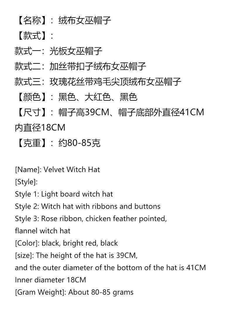 Mx light plate velvet witch hat: black, Mx light plate velvet witch hat: purple, Mx light plate velvet witch h...