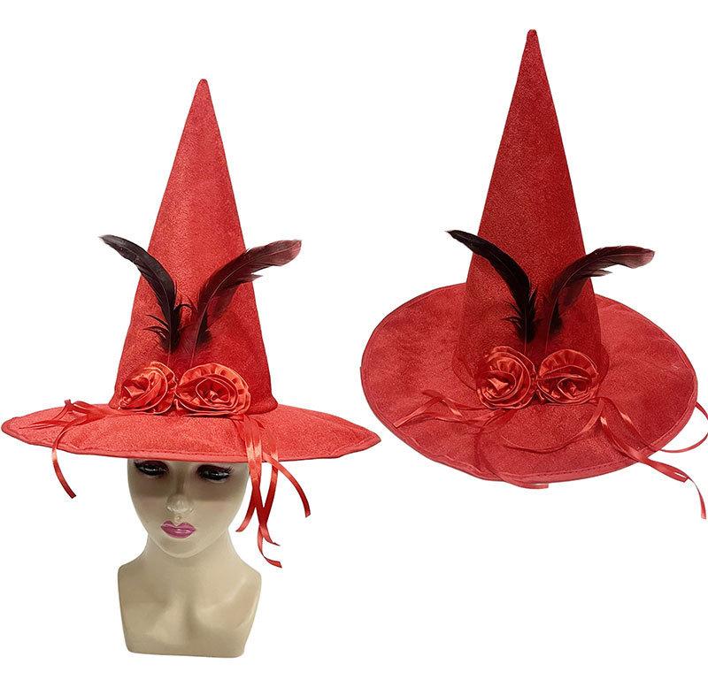 Mx rose ribbon feather peak velvet witch hat: bright red