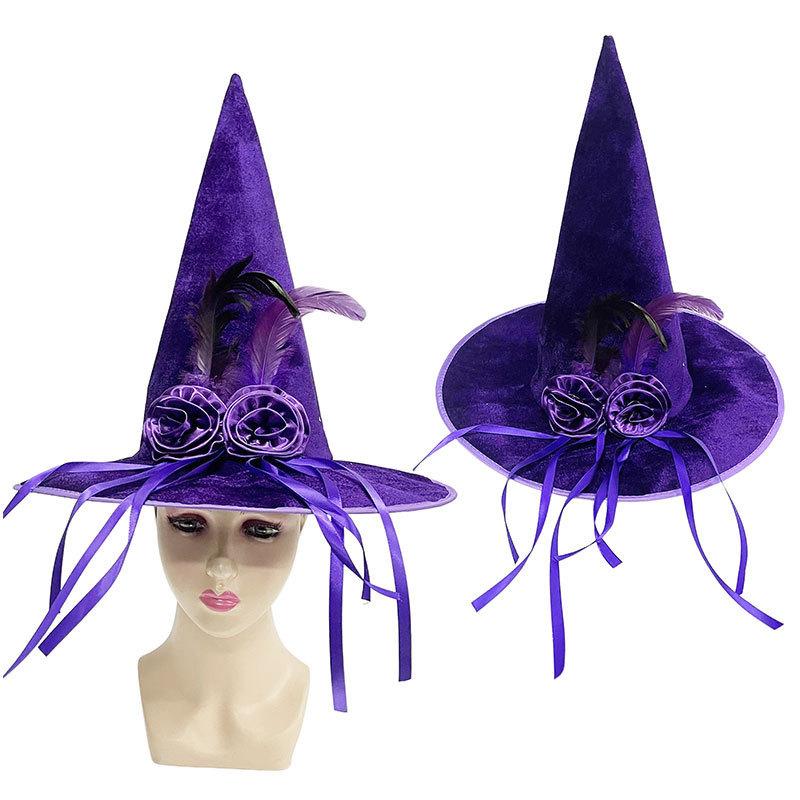 Mx rose ribbon feather pointed velvet witch hat: purple