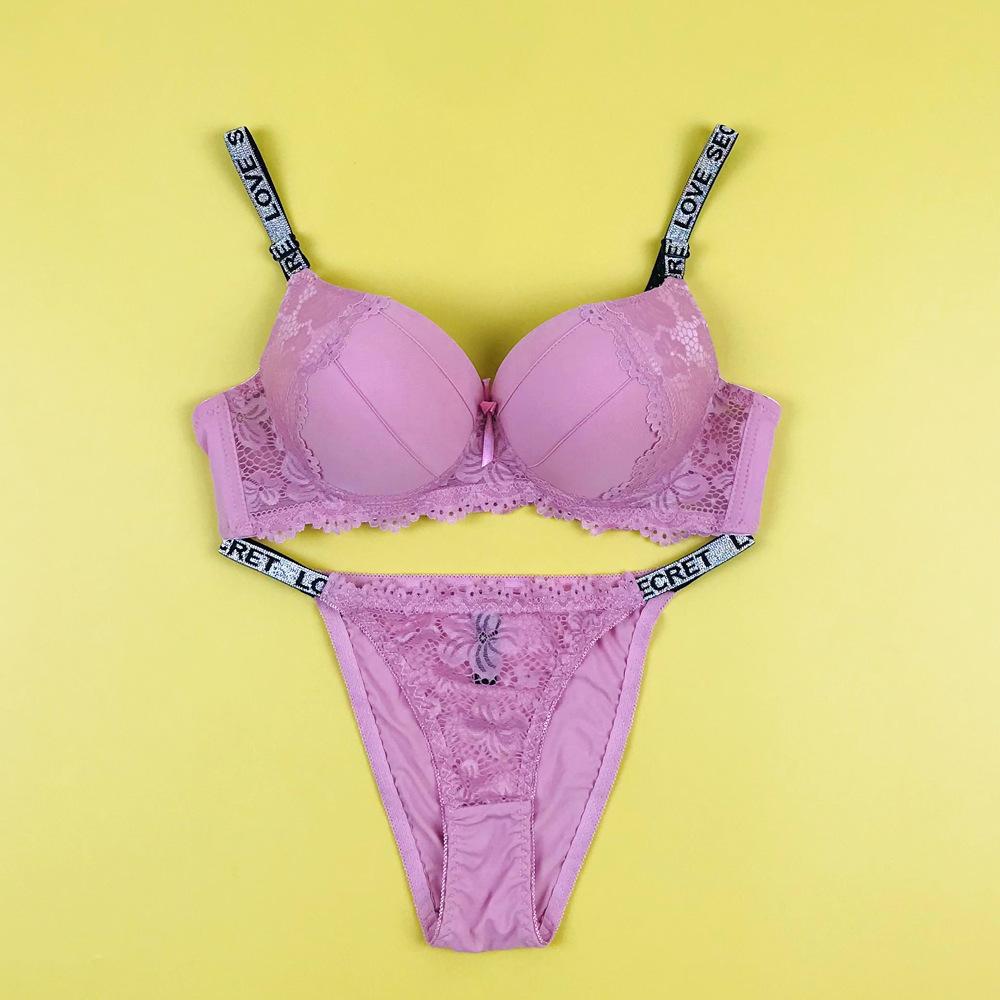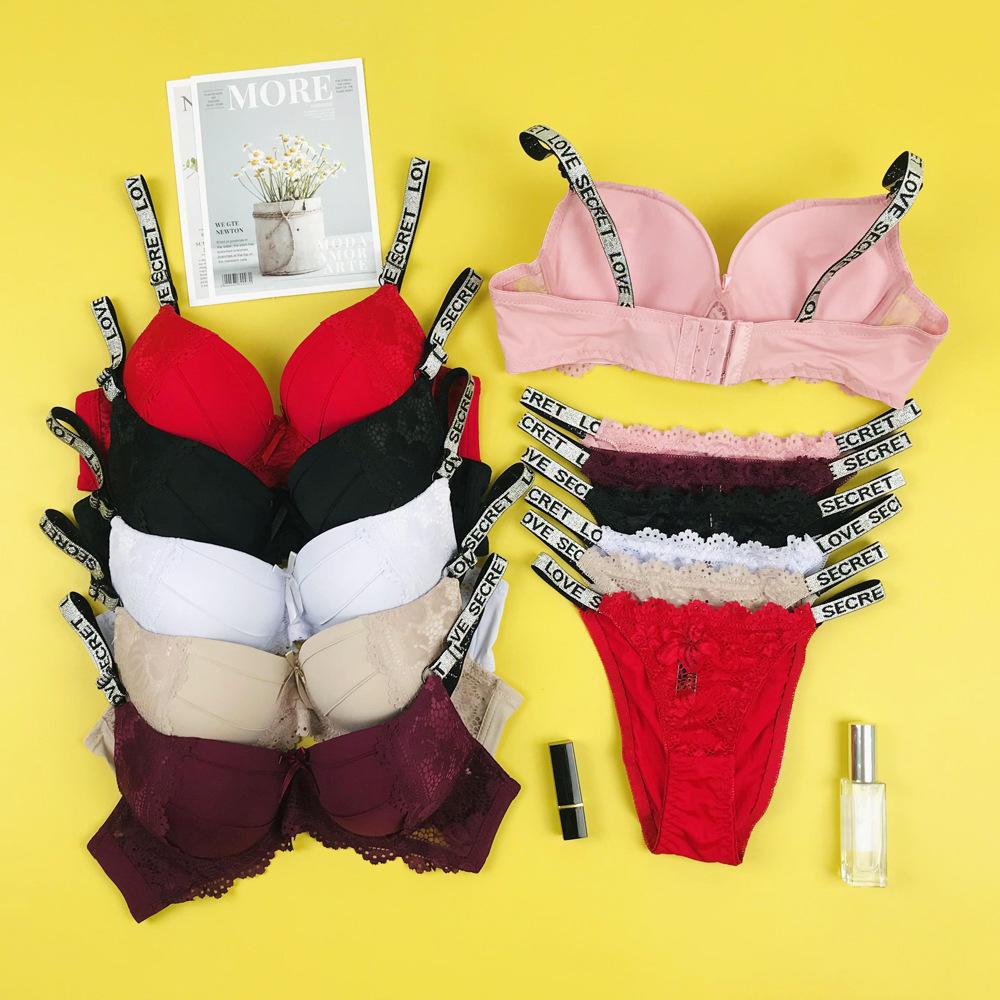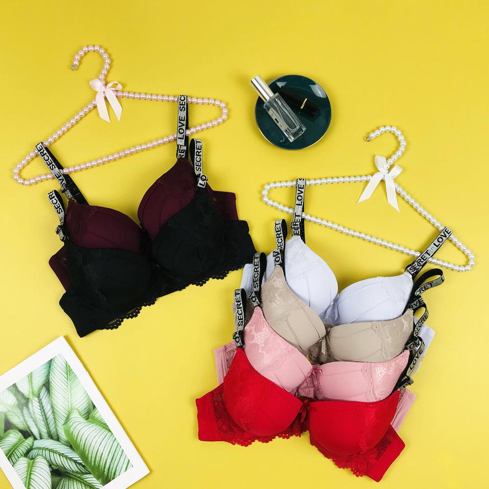Amazon Mujer Sexy Encaje Sujetador Tira de Letras Cómodo Push-up Ajustable Traje de Ropa Interior