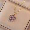 Collar Mujer Transfronterizo Micro-incrustación Flor Giratoria Color Rosa Zircón Micro-incrustación Tendencia de Moda Cadena Clavícula Gema
