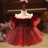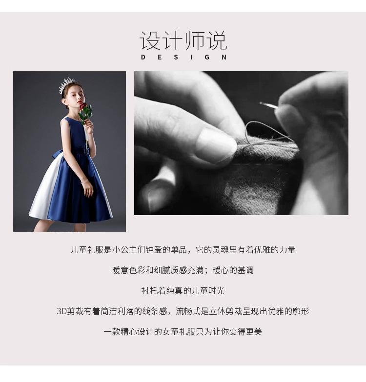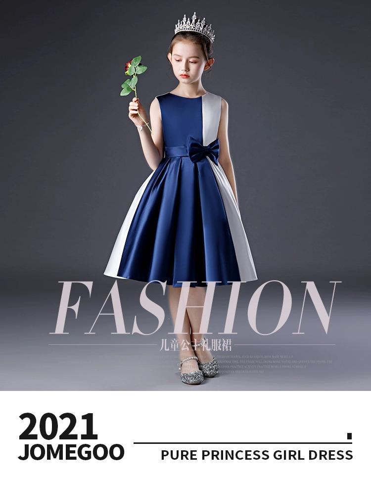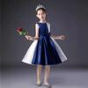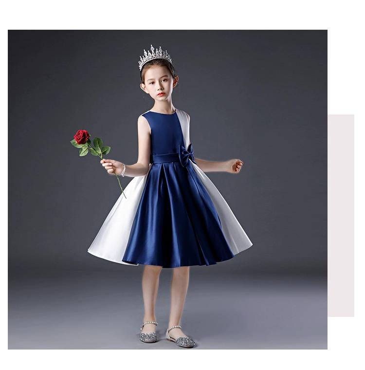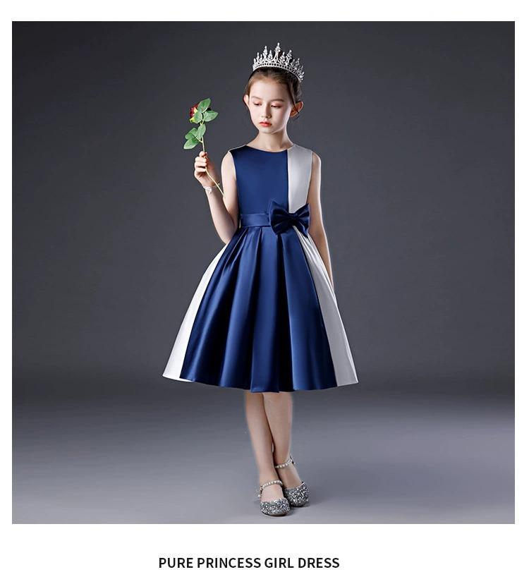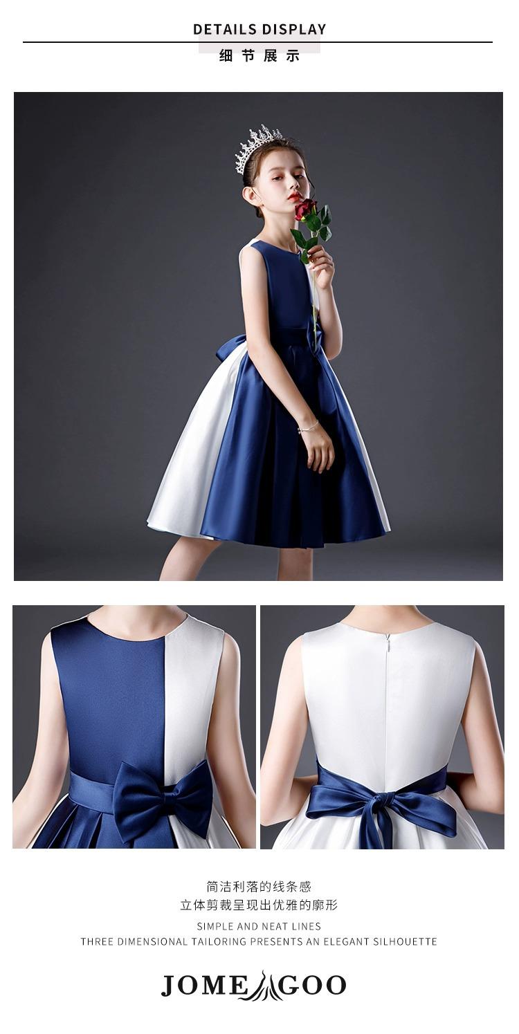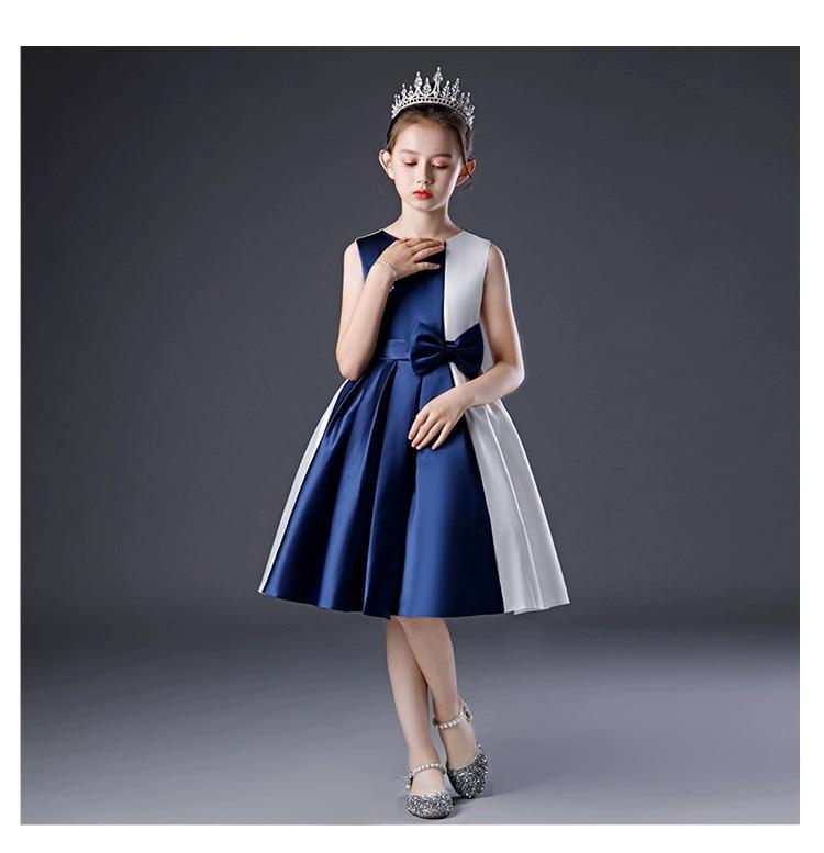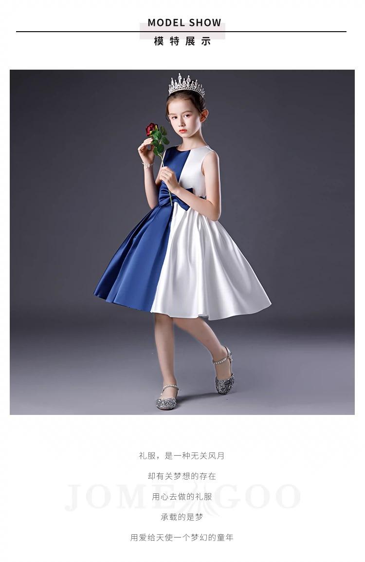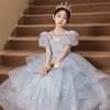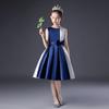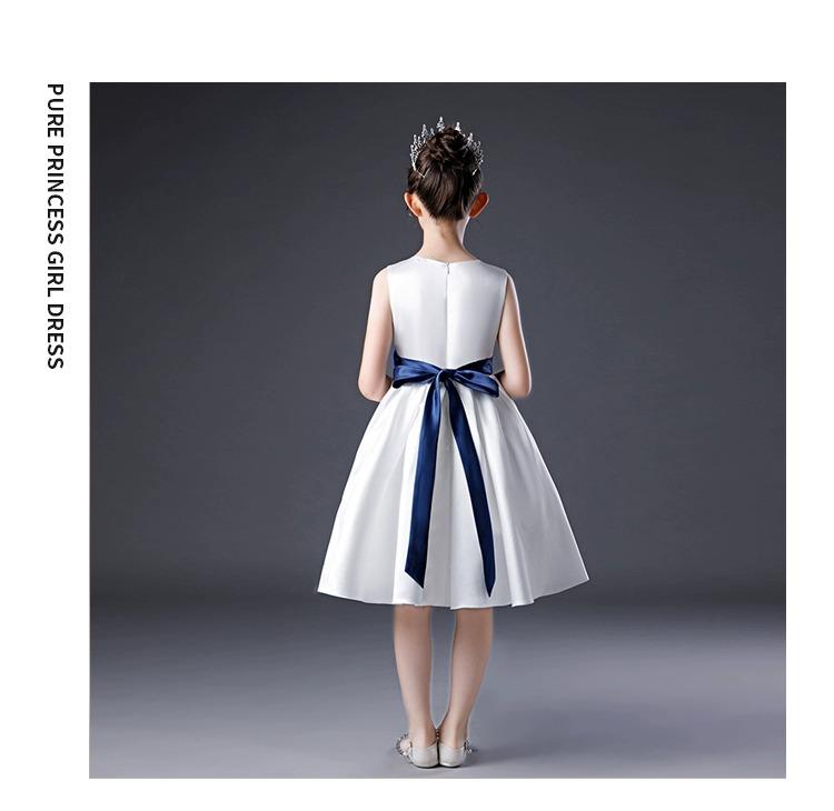 Vestido de Piano para Niñas Traje de Actuación Vestido de Princesa Infantil Anfitrión Blanco y Azul Pasarela Actuación Vestido Corto