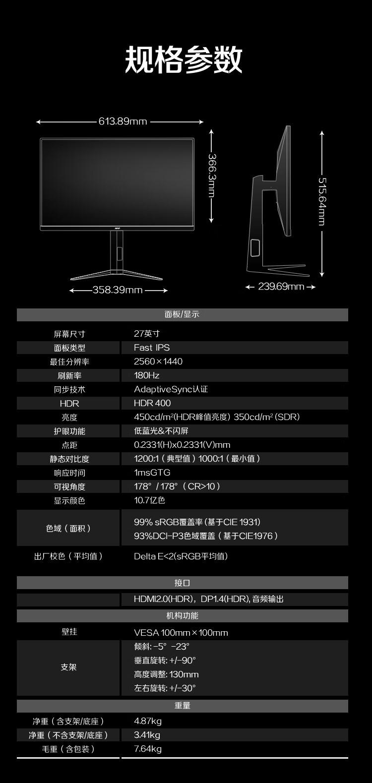 Q27g4 black-2k-180hz-rotating lift, Q27g4/ws white-2k-200hz-rotating lift