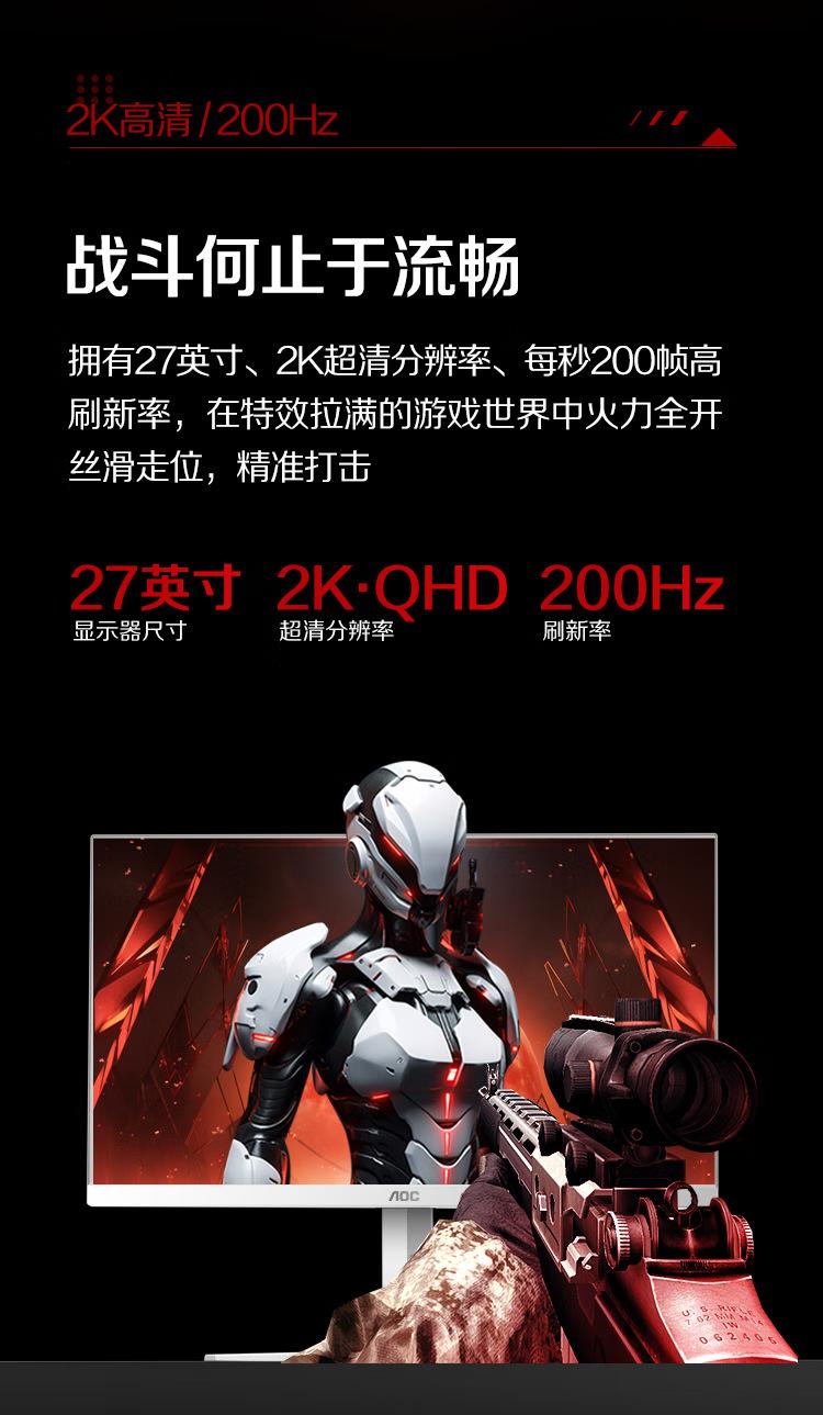 AOC Q27G4/WS 27 pulgadas 2K200hz1ms IPS pequeño King Kong elevación rotación pantalla LCD