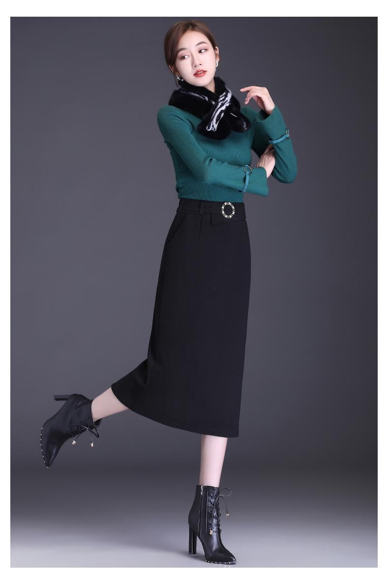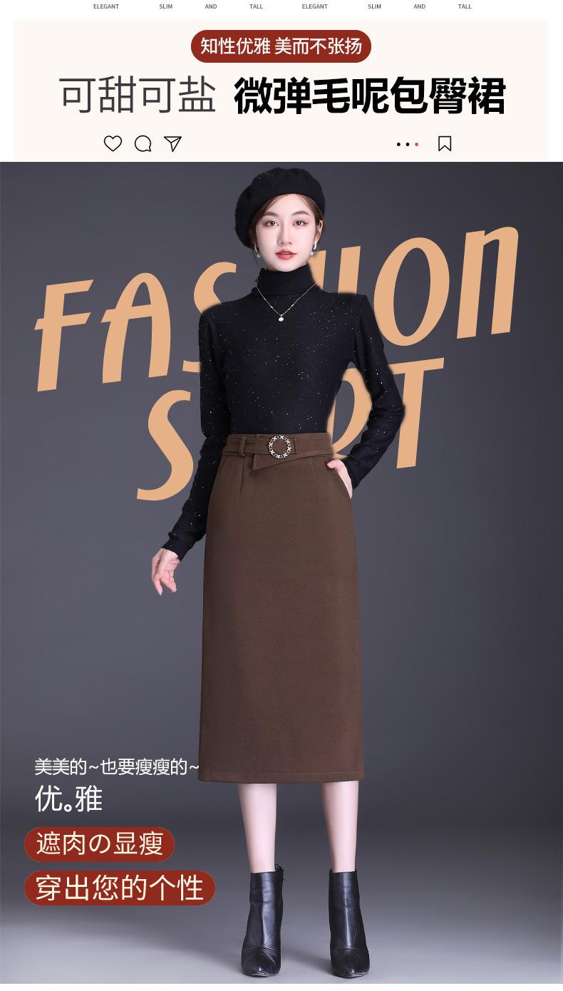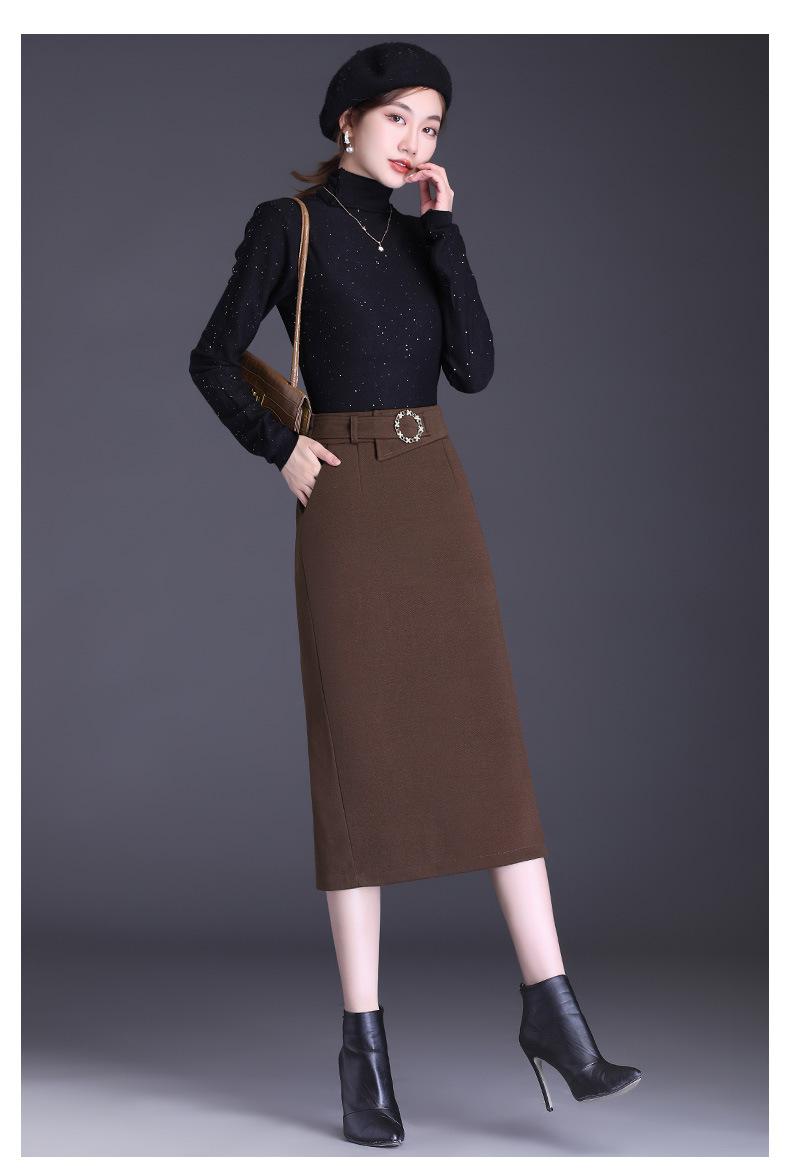 Falda de lana nueva de 2023 con cintura alta, abertura en la cadera, recta y de un solo paso para mujer, primavera y otoño