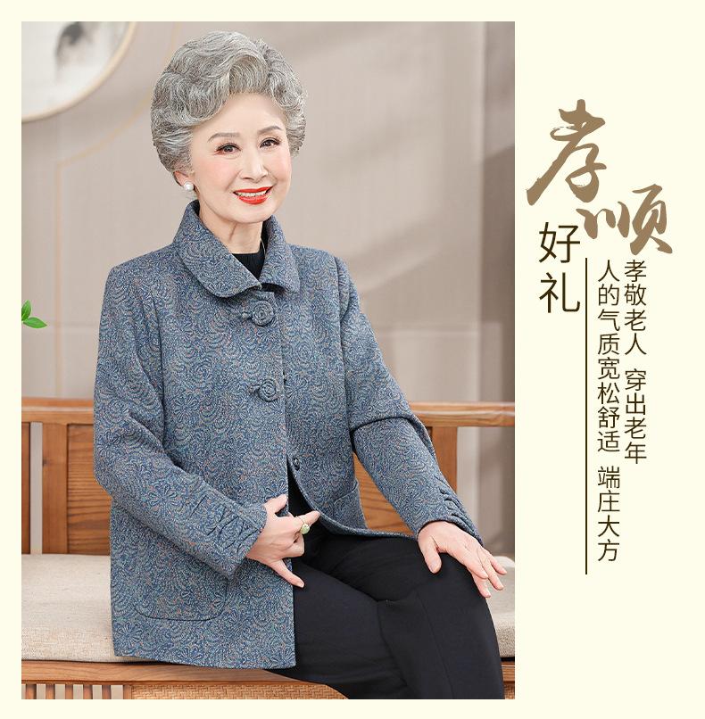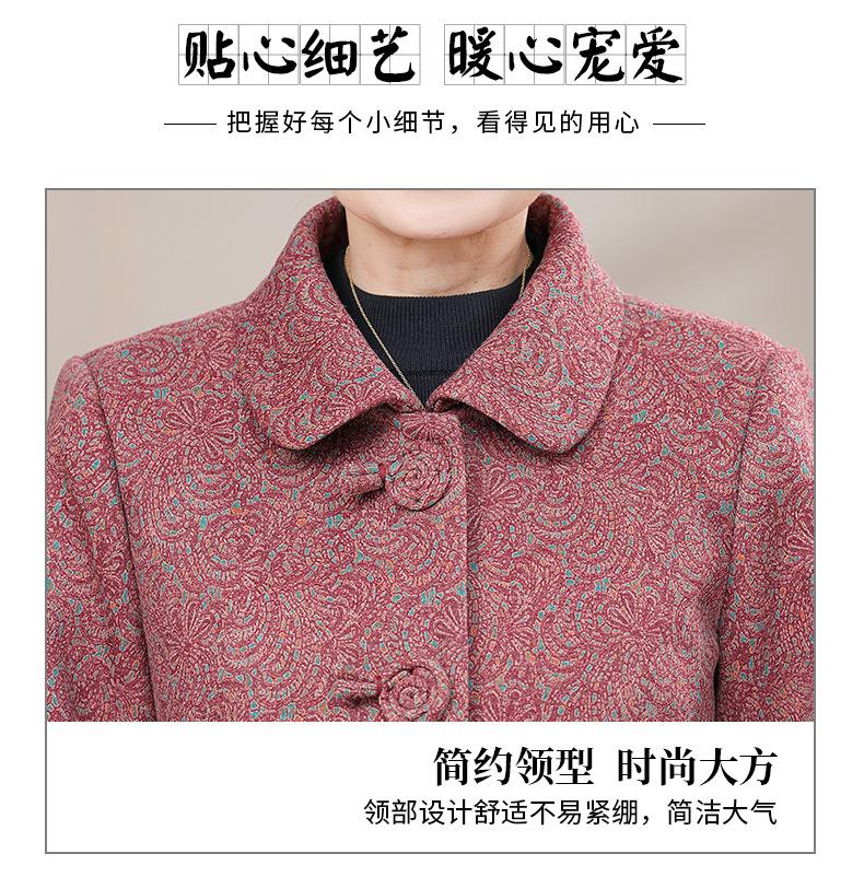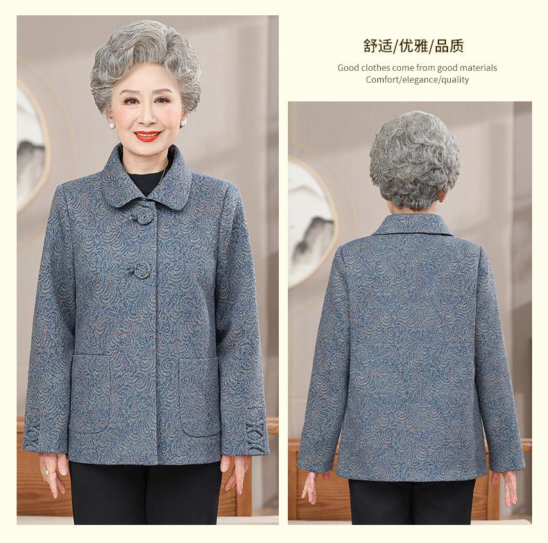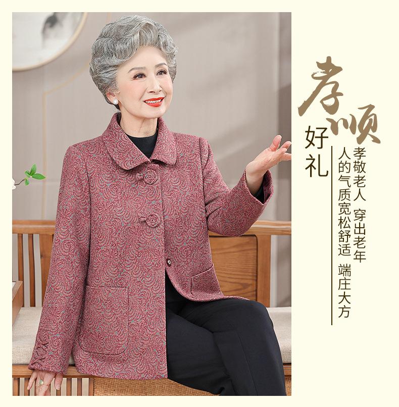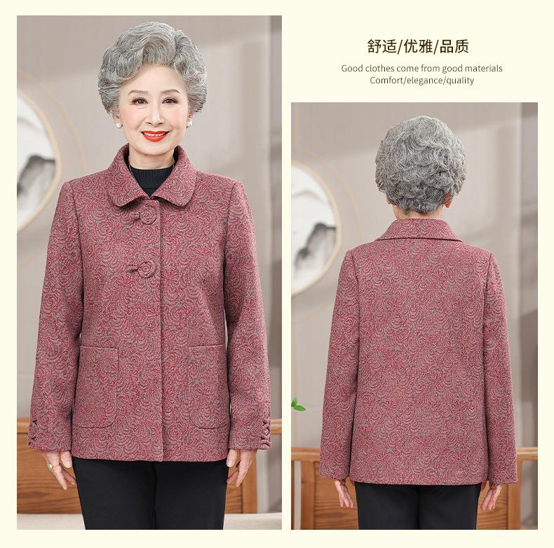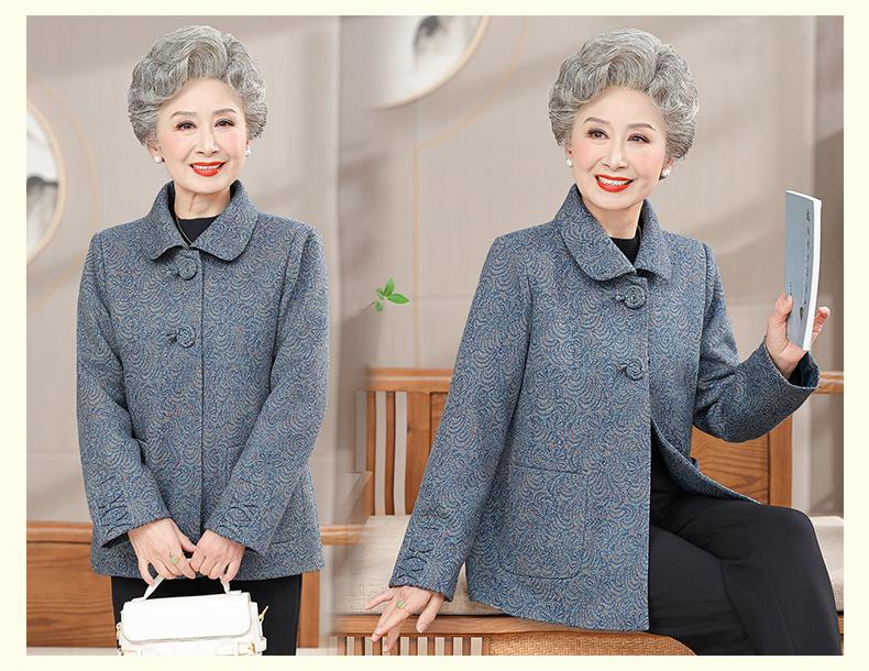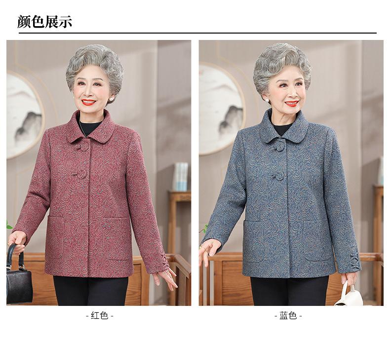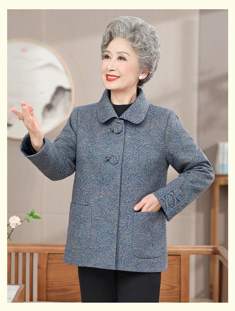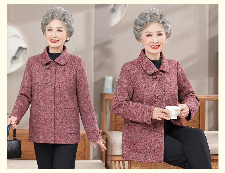 Ropa de Primavera para Ancianos Abrigo de Lana para la Abuela con Solapas Manga Larga Top Estilo Occidental para la Madre Ropa Elegante Nueva de Talla Grande