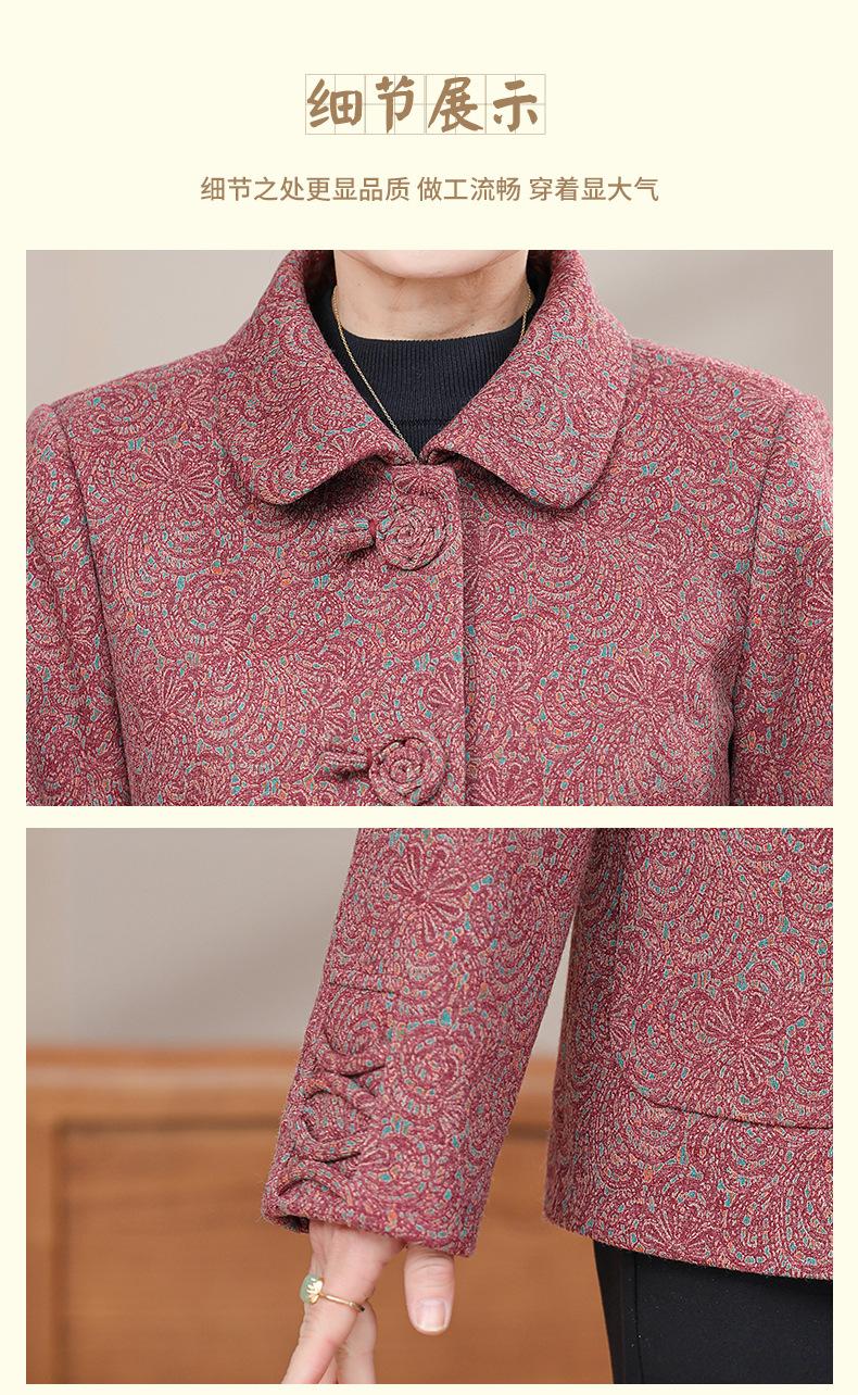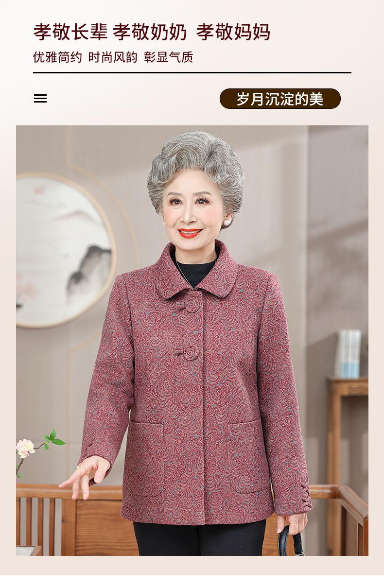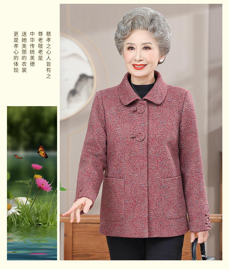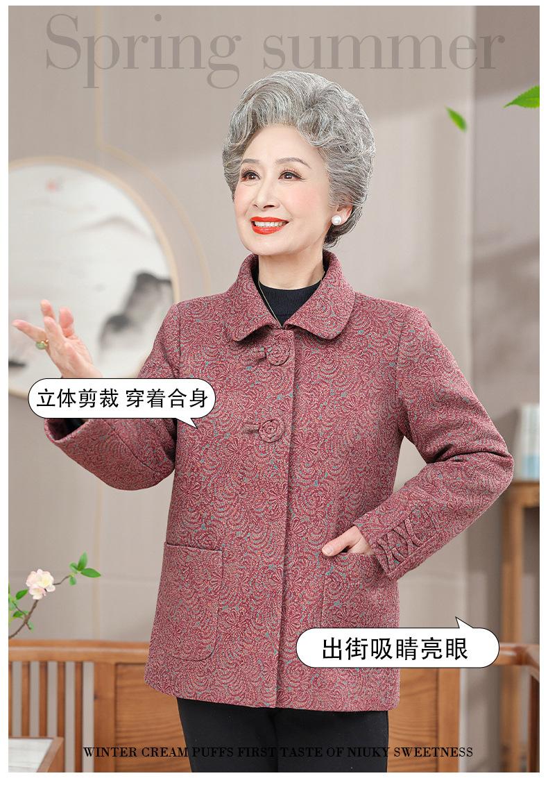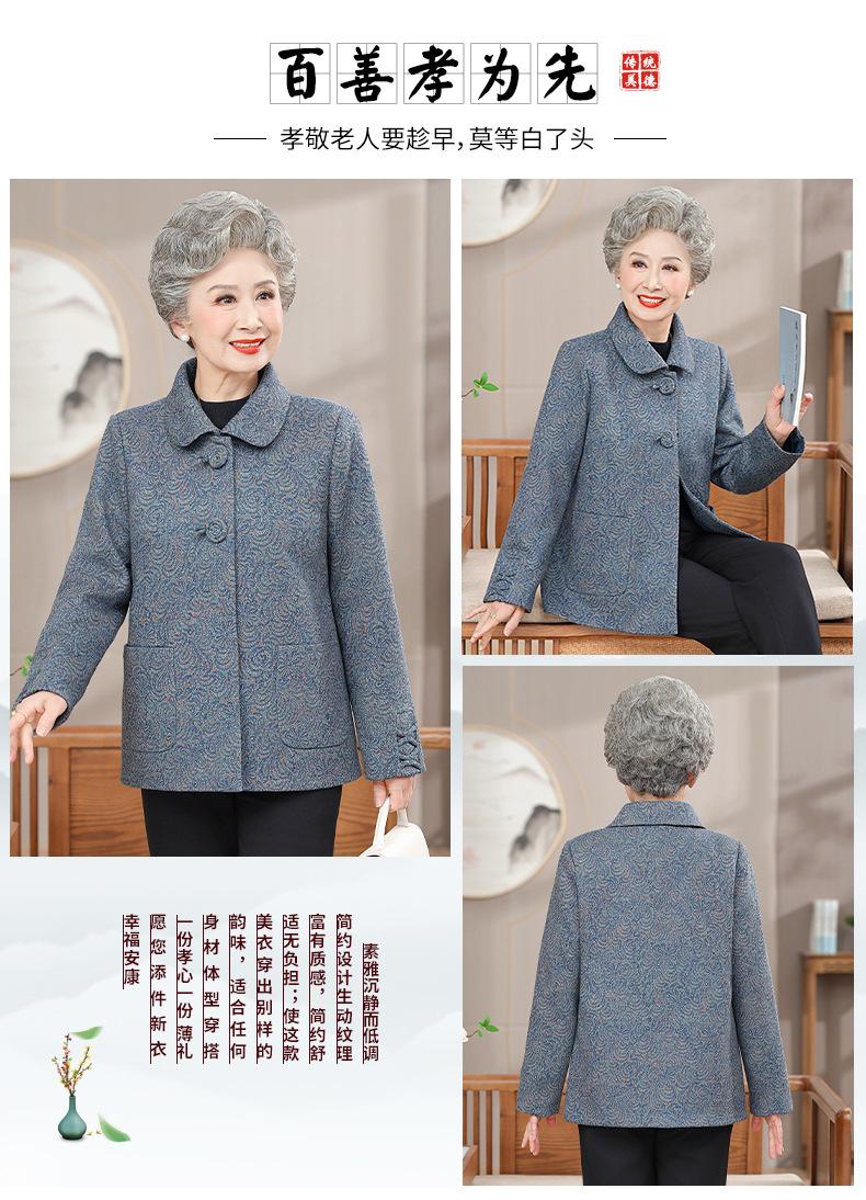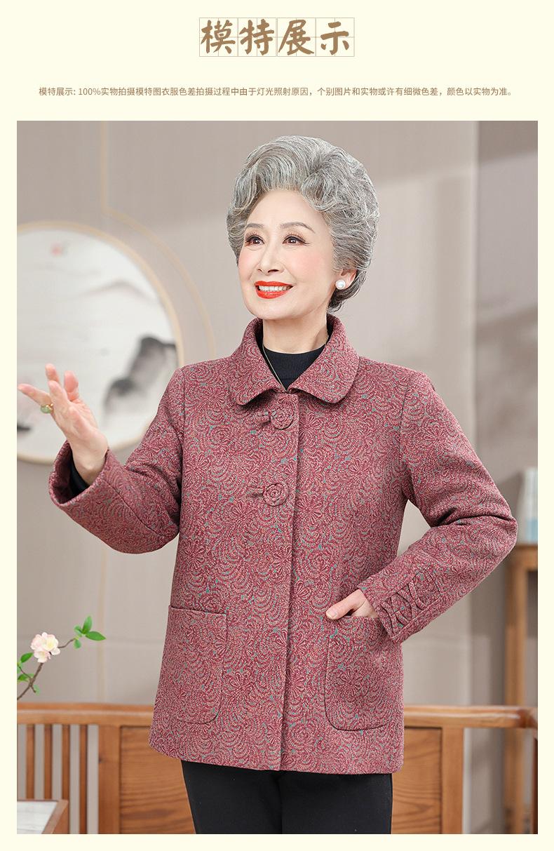 Ropa de Primavera para Ancianos Abrigo de Lana para la Abuela con Solapas Manga Larga Top Estilo Occidental para la Madre Ropa Elegante Nueva de Talla Grande