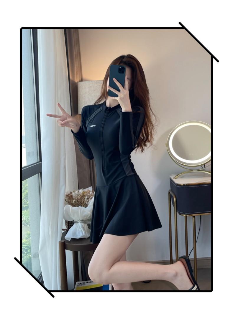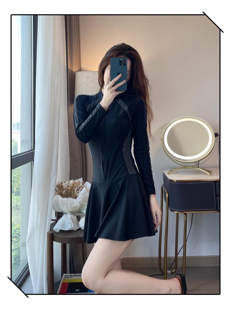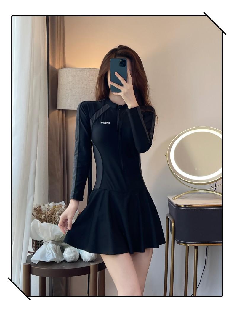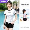 Traje de Baño de Una Pieza para Mujer, Delgado, Cubre Vientre, Traje de Baño de Verano, Especial para Estudiantes, Piscina, Conservador, de Manga Corta, Deportivo