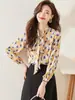 Camisa de Manga Larga Floral de Moda Casual para Primavera y Otoño 2025 para Mujer Nueva Camisa Floral de Estilo Francés Top Estampado Elegante de Moda