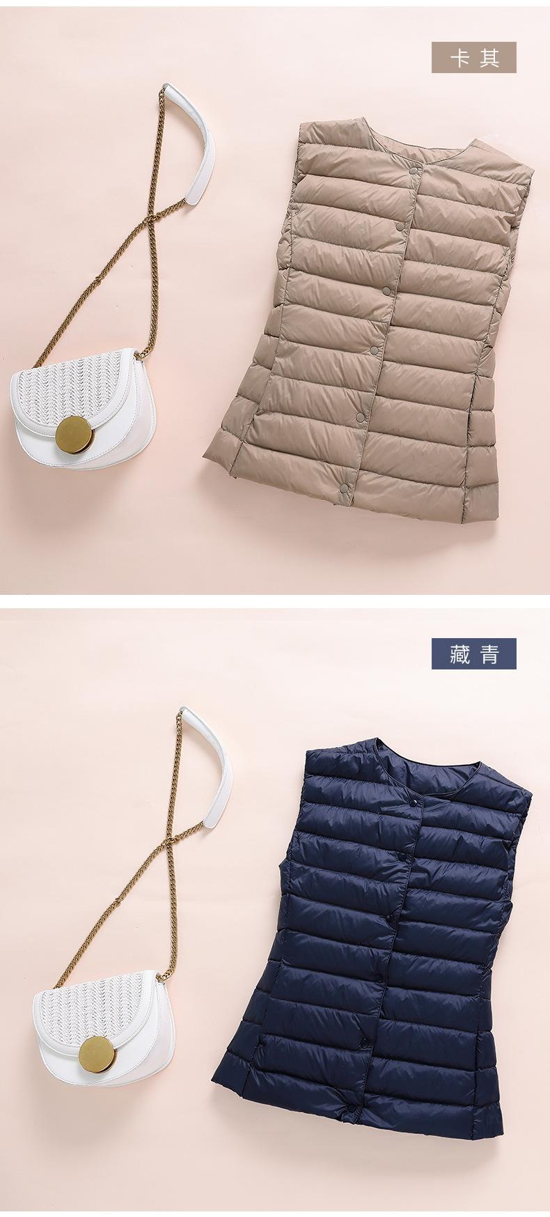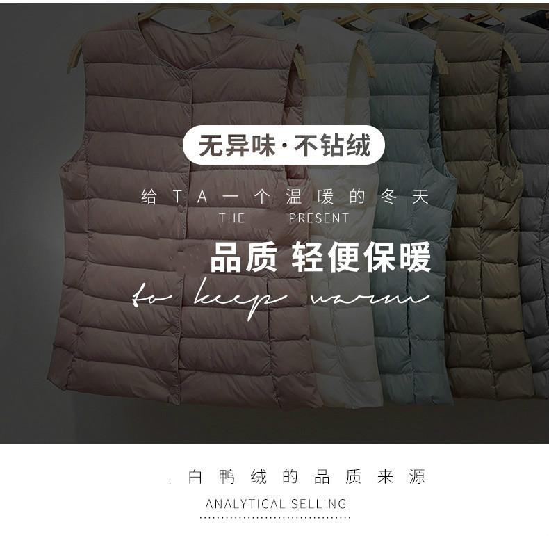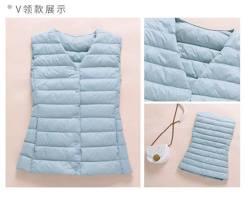 Chaleco de Plumas Nuevo Otoño e Invierno 2023 Transfronterizo para Mujer, Ligero, Corto, sin Cuello, Chaqueta Portátil a la Moda, Ajustado, Tendencia