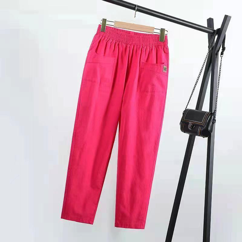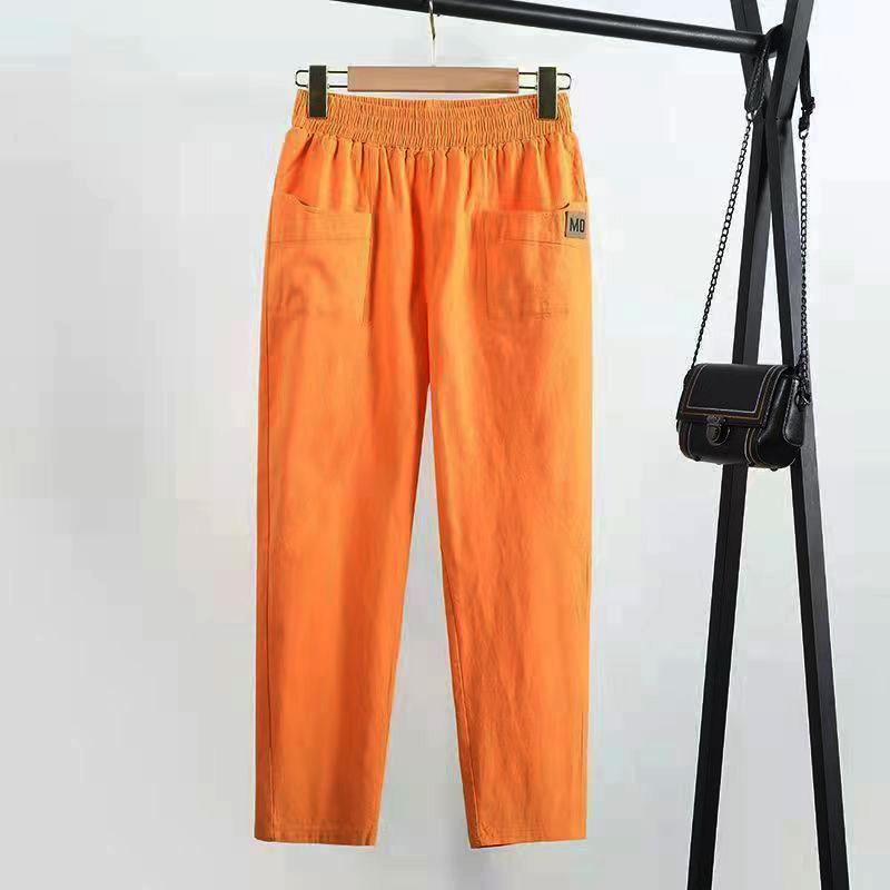 Primavera y Otoño talla grande Suelto niña gordita Temperamento Ocio Estilo Occidental Reductor de Edad Adelgazante de Cintura Color Sólido Pantalones Casuales Venta al por Mayor