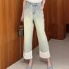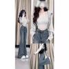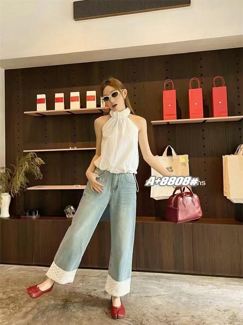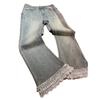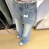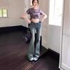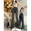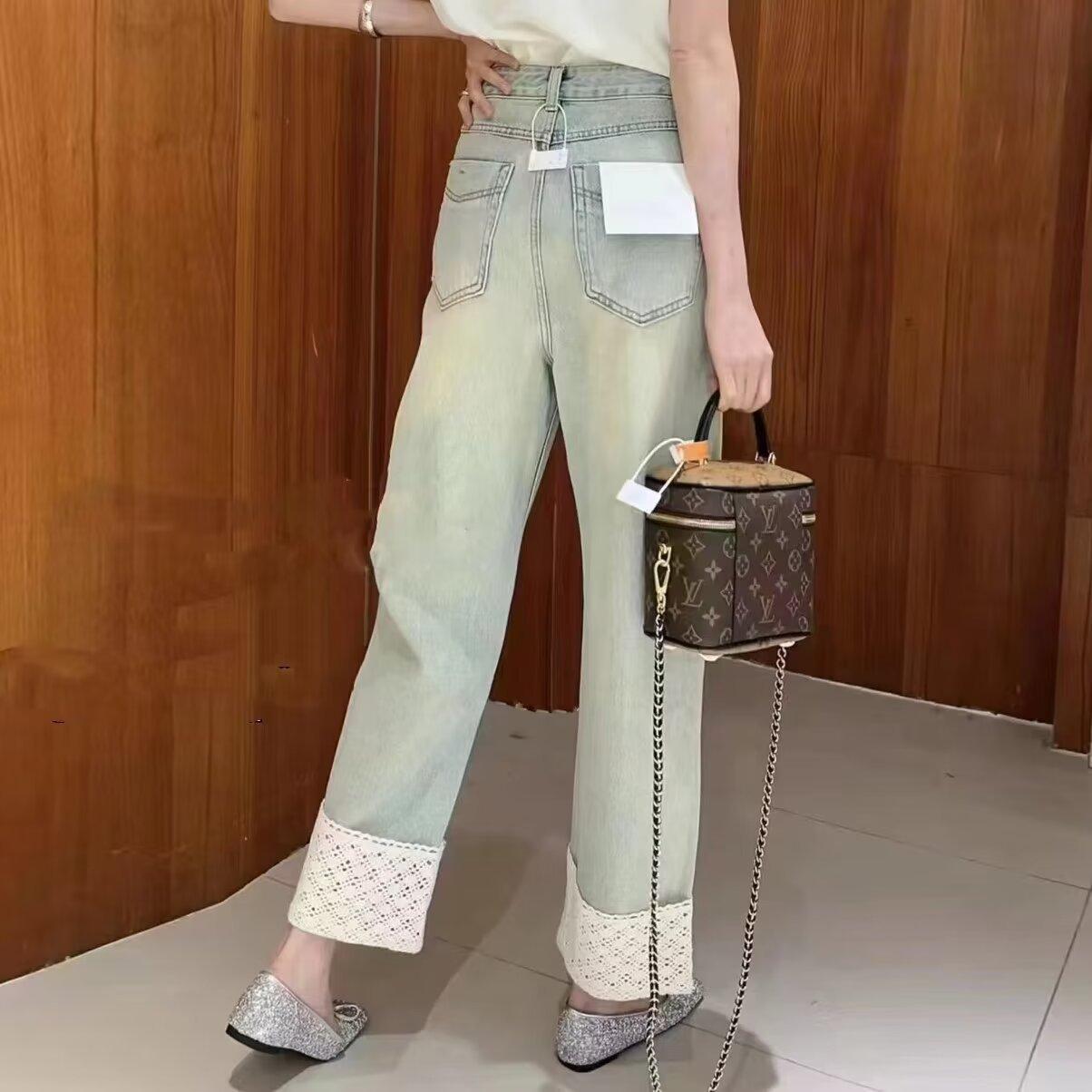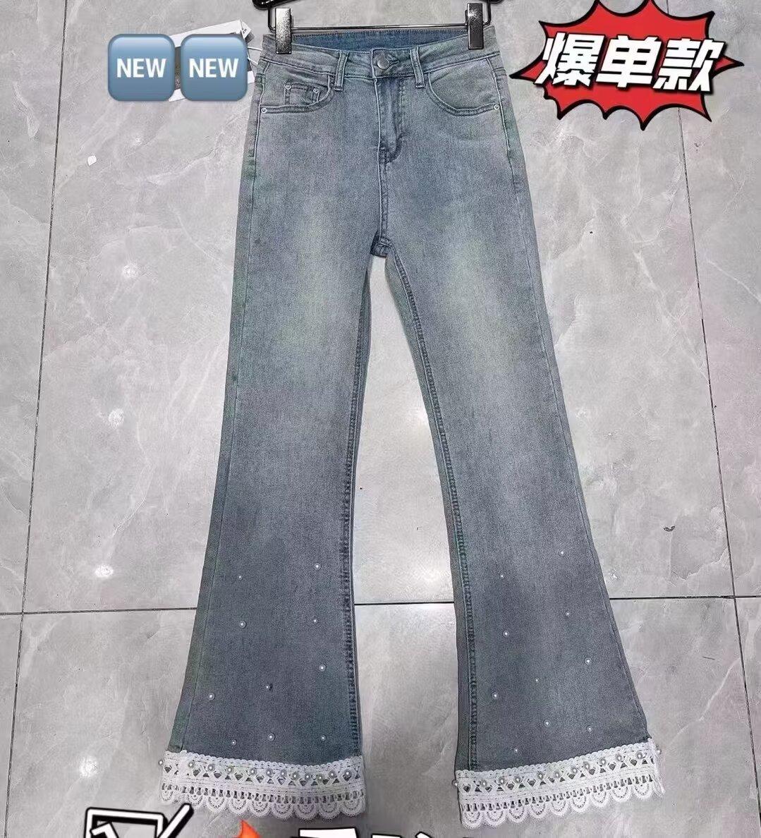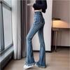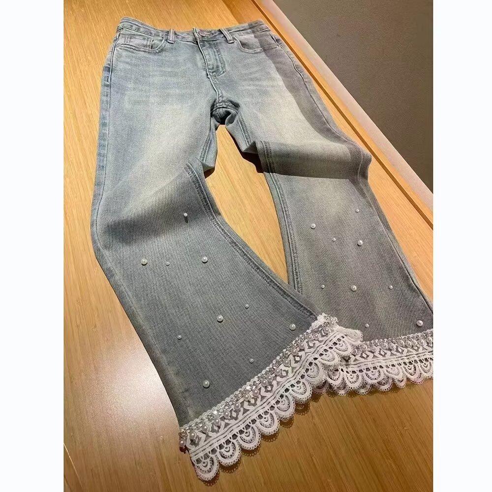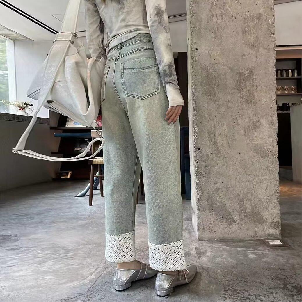 Pantalones vaqueros vintage Micro-Lam para mujer, de verano, de cintura alta, con diseño adelgazante, costuras de encaje, corte trompeta de nueve puntos, informales y modernos.