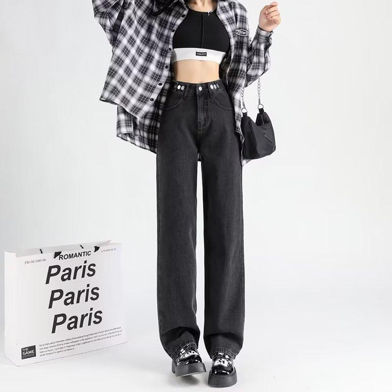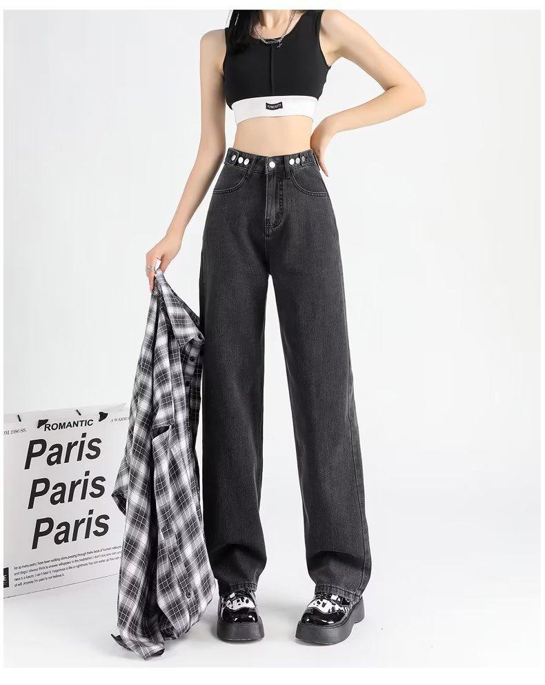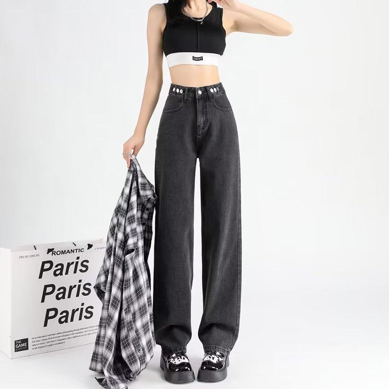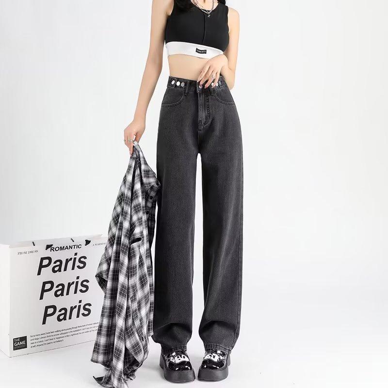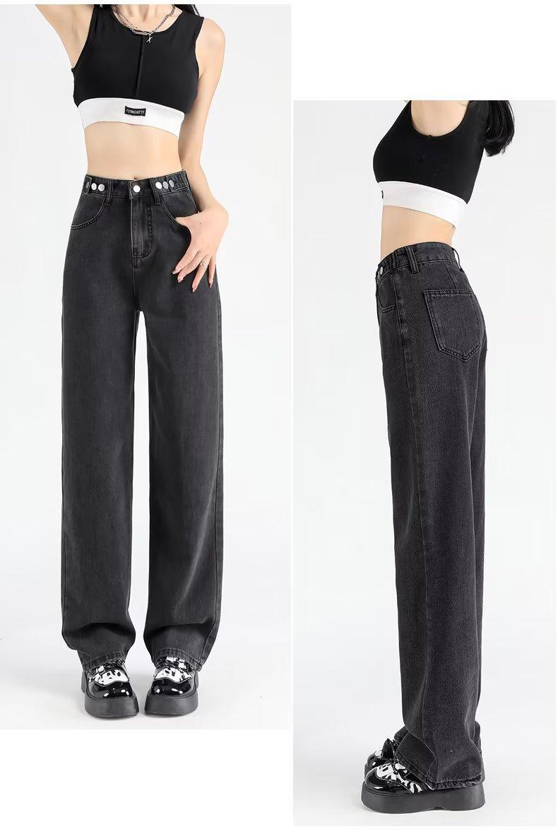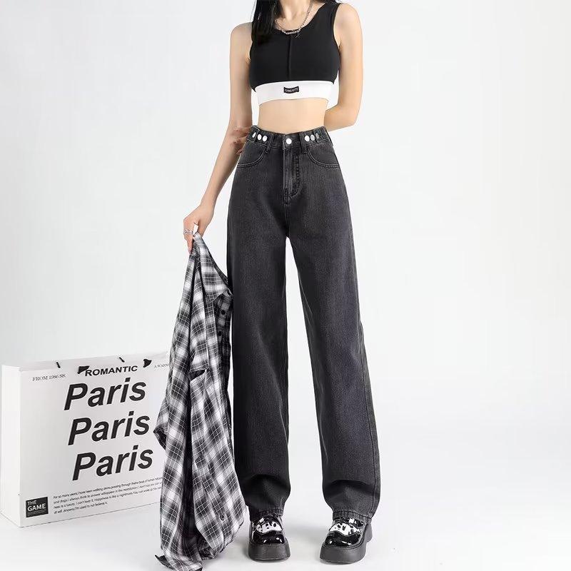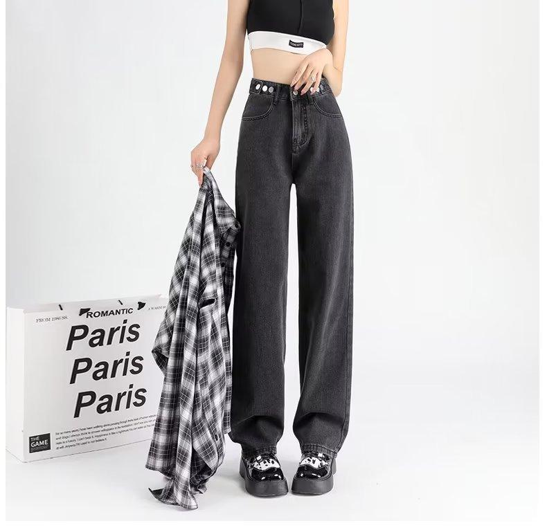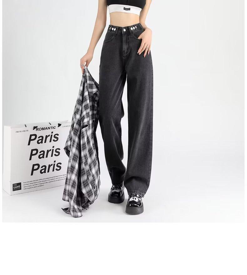 Vaqueros de pierna ancha y estrecha para mujer, otoño 2024, nuevos, cintura alta, cintura ajustable, pantalones cortos, rectos y sueltos.