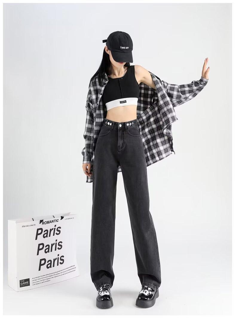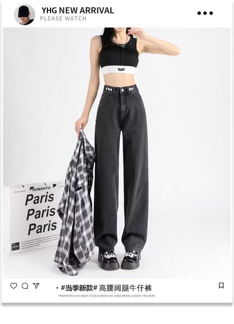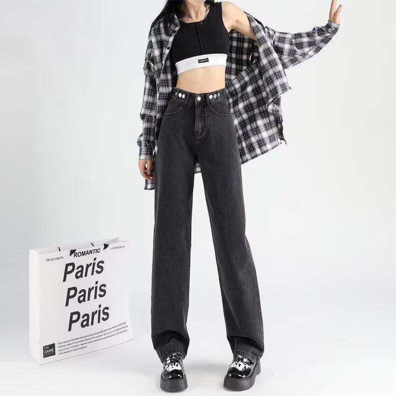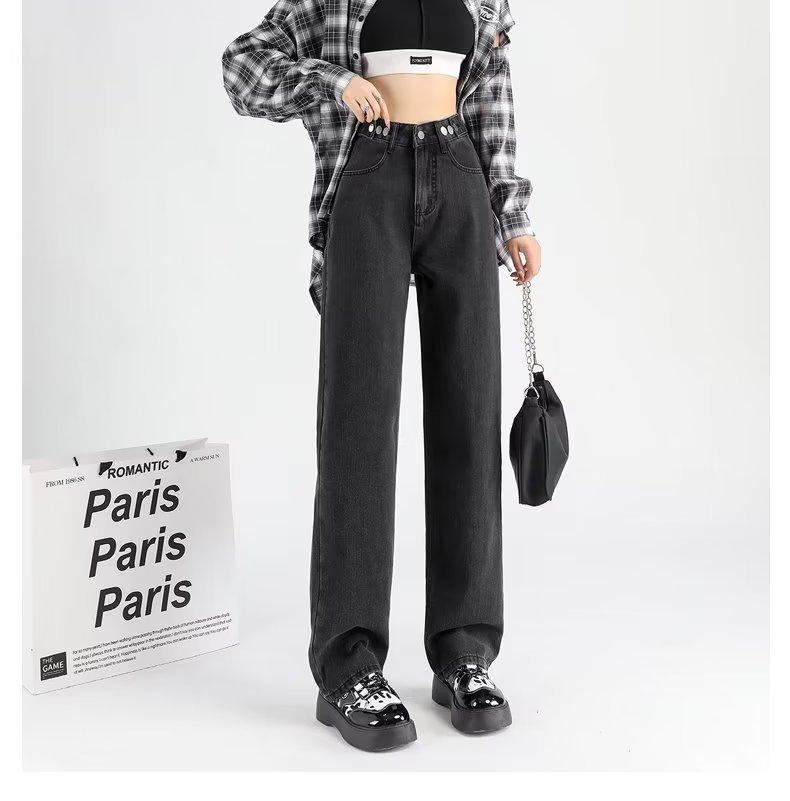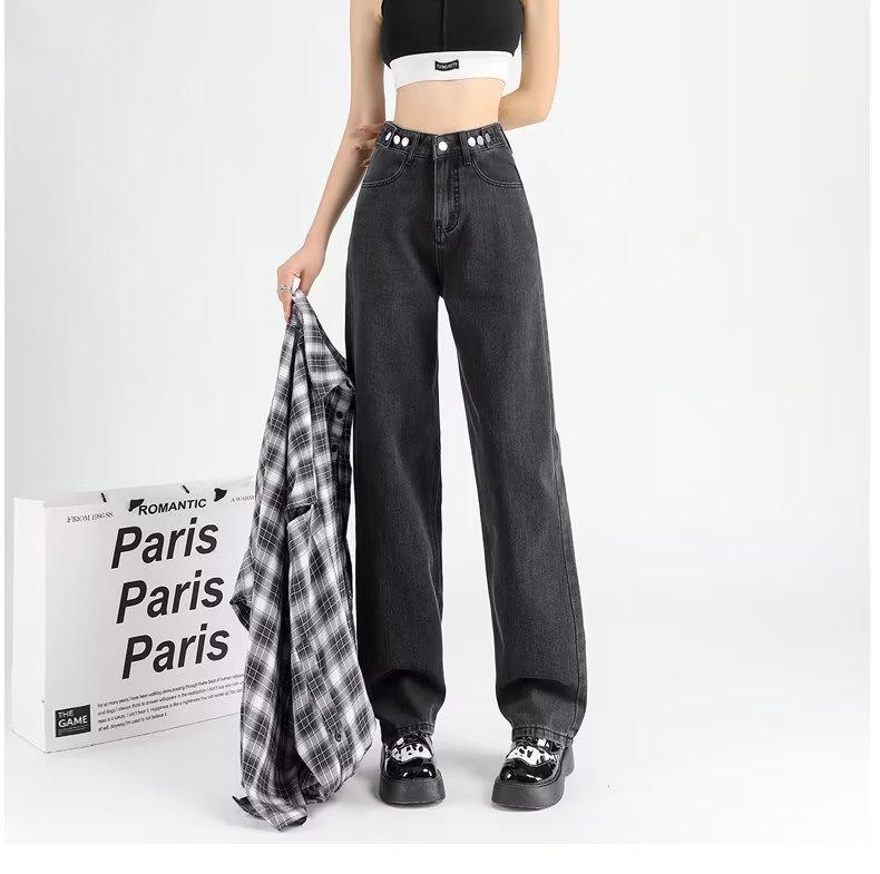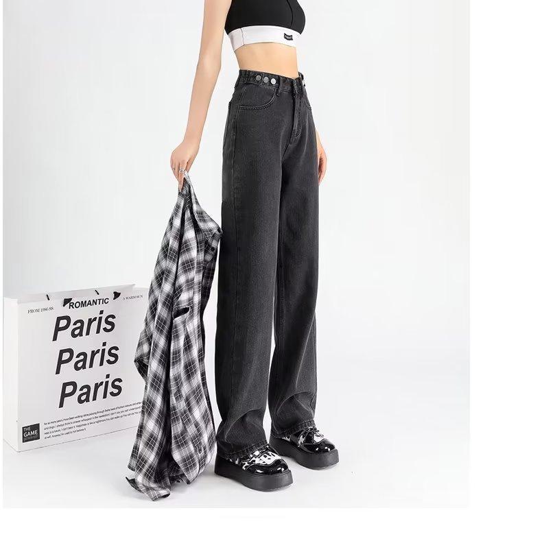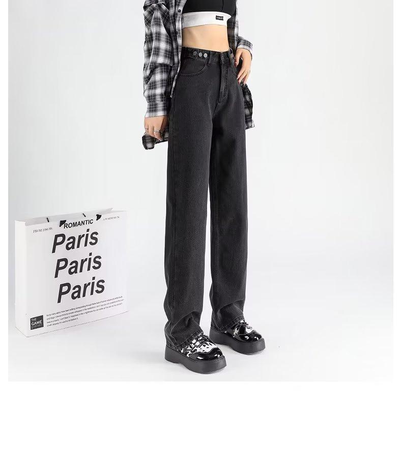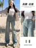 Vaqueros de pierna ancha y estrecha para mujer, otoño 2024, nuevos, cintura alta, cintura ajustable, pantalones cortos, rectos y sueltos.